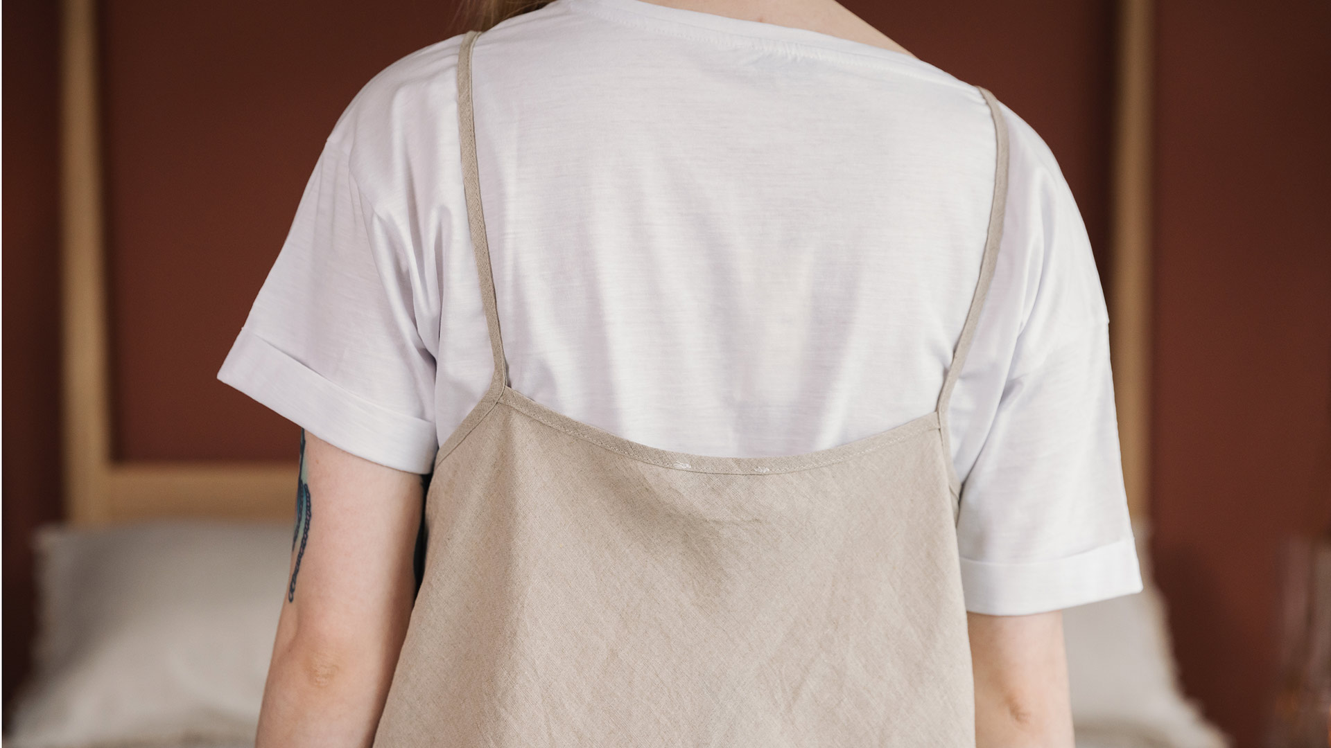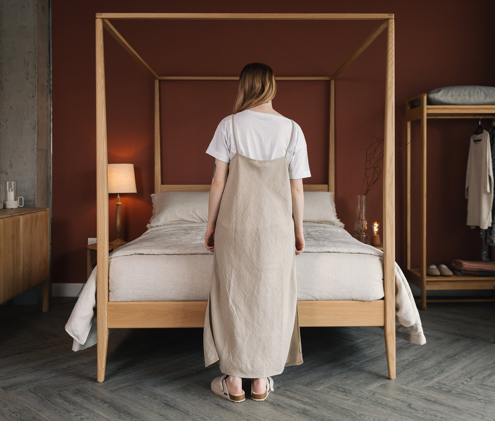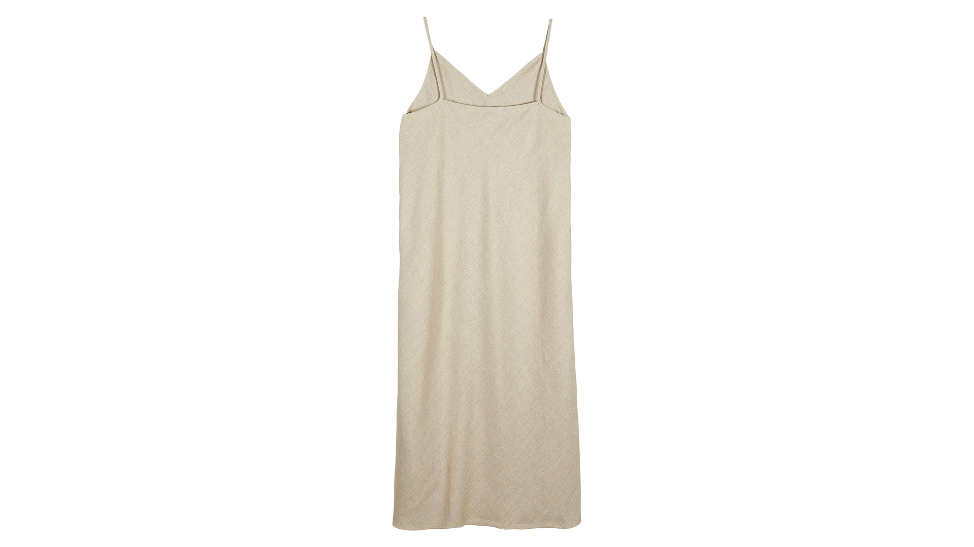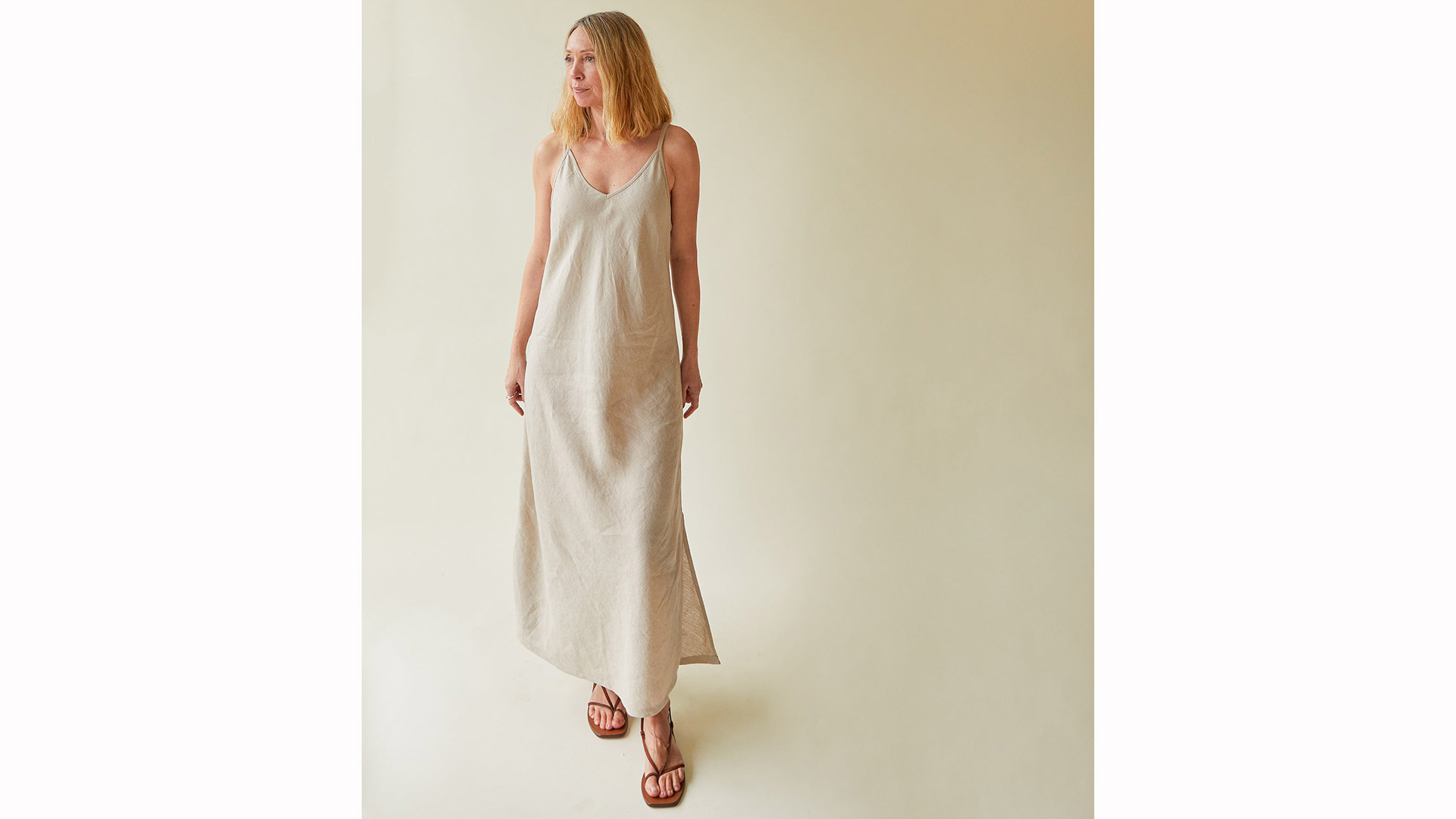 Part of our relaxed, luxury lounge-wear collection – a relaxed, soft linen slip dress. Comfy enough to wear in bed, stylish enough for a night out. Available in stone colour.