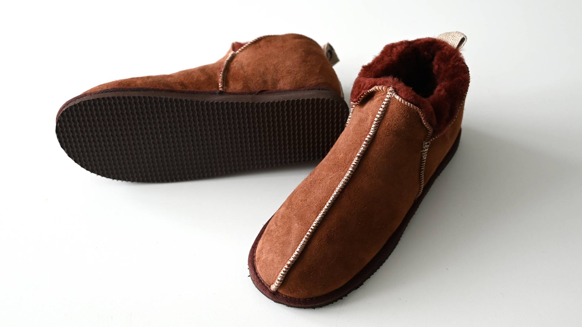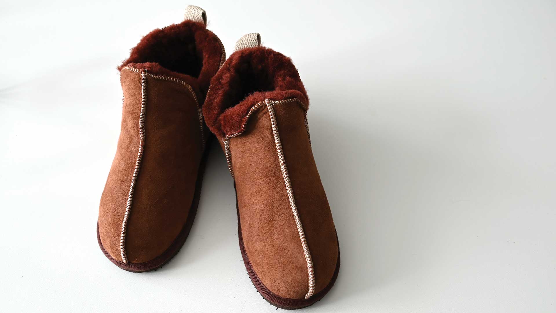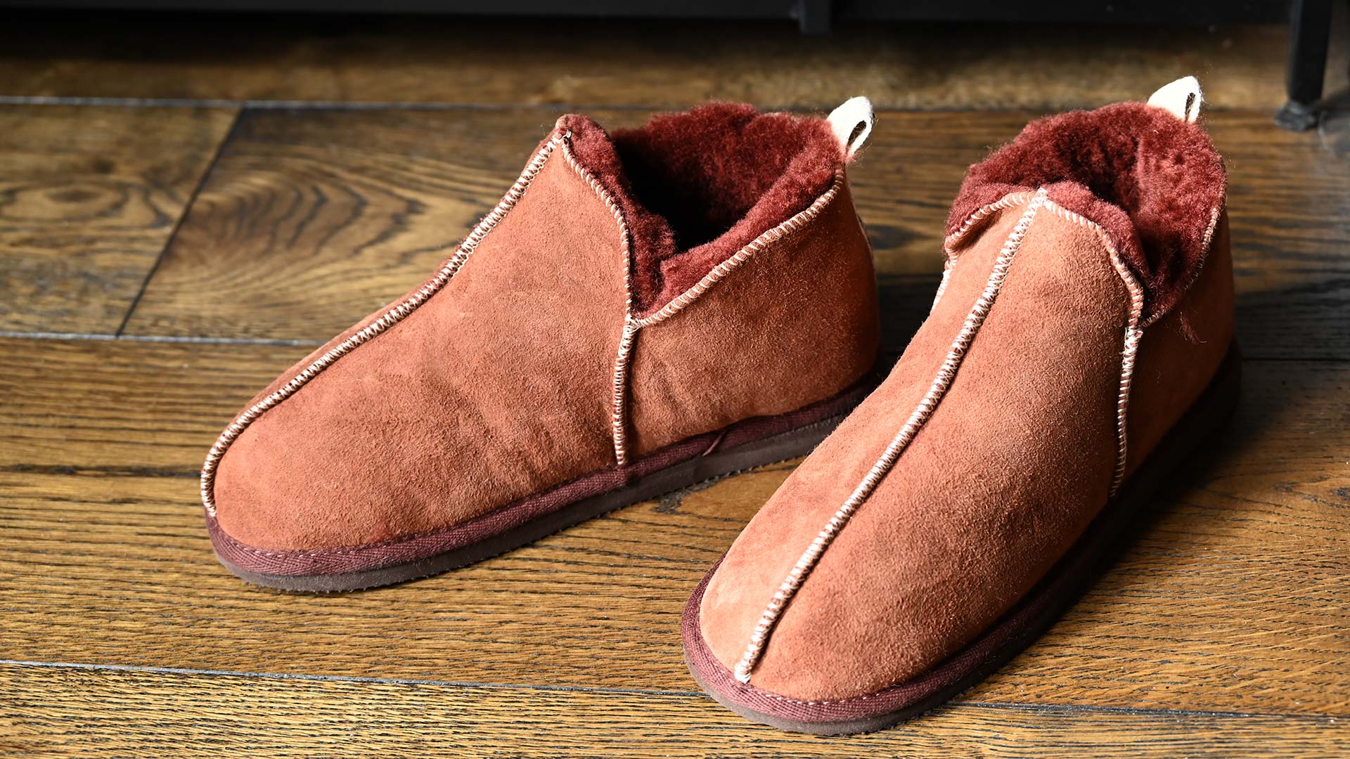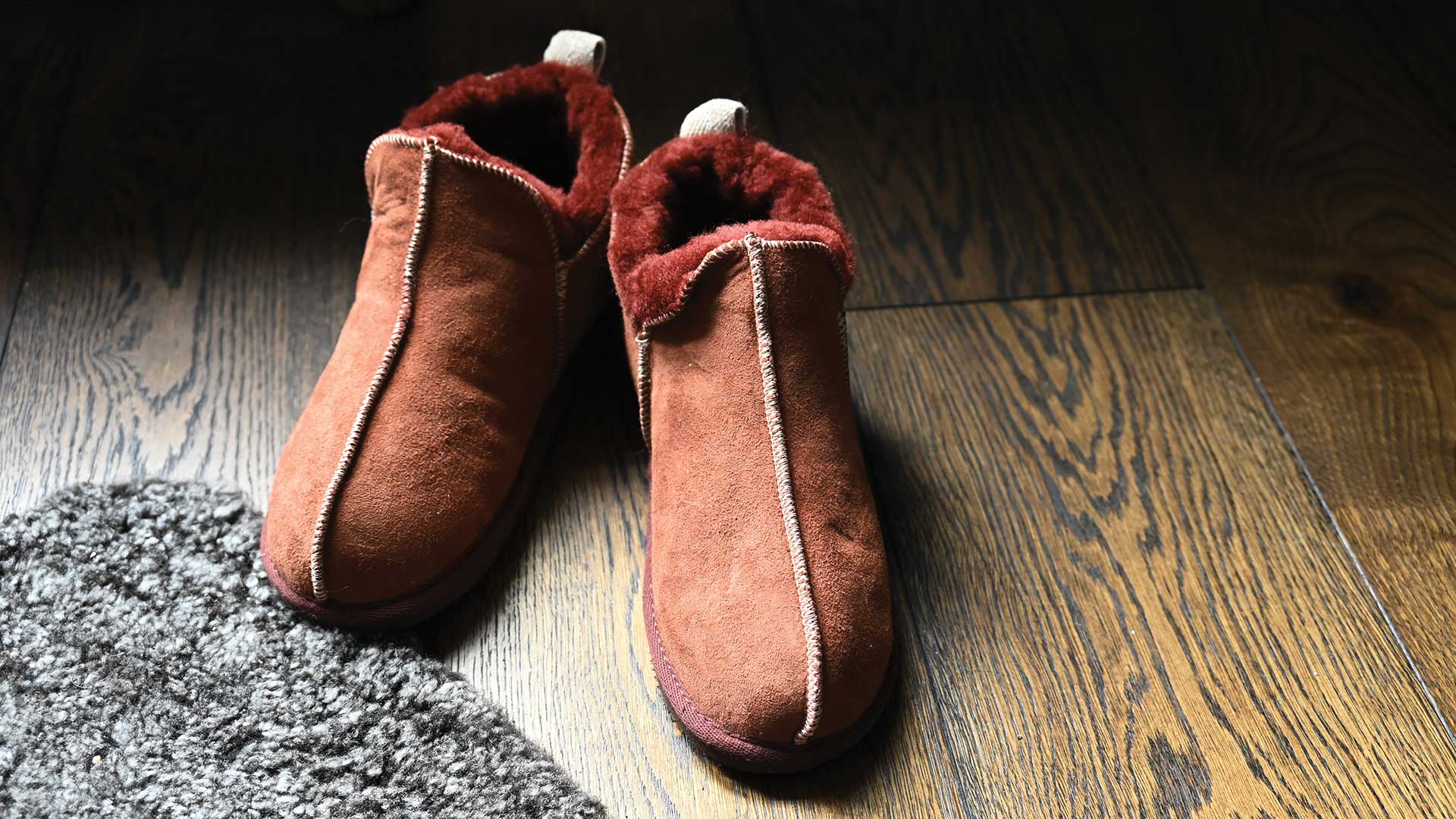 Snug and cosy, these fleecy sheepskin slippers combine comfort with style. The outer sheepskin is a light red-brown, with a complimentary darker red-brown fluffy sheepskin inner. These toasty sheepskin slippers are in classic pull-on design in a low boot style, the fleecy sheepskin inner is incredibly soft and cosy. The brown EVA sole is hard wearing and allows you to pop outside in them when needed.