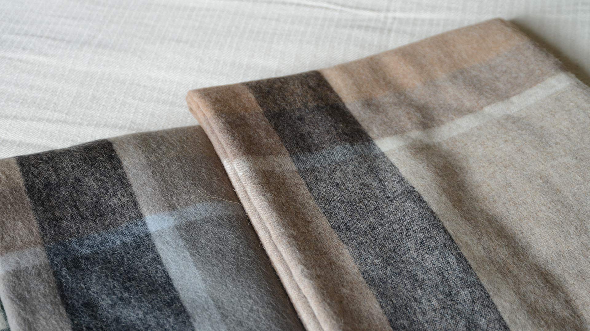 50% alpaca wool, 40% sheep wool & 10% microfiber Alpaca fibres are soft, durable and offer more warmth than other natural fibres. Pilling is at an absolute minimum and the throw will maintain a fresh and new look for a long time. The throw is made of 100% sustainable fibres.