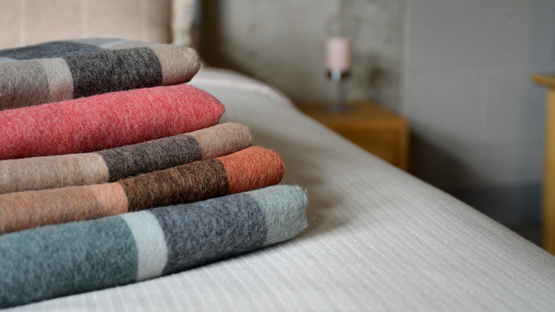 Luxuriously soft throws. Made using luxurious, recycled fibres: including 40% recycled sheep wool and 50% recycled alpaca wool. Available in five contemporary colour options. Choose your favourite before adding to the basket.