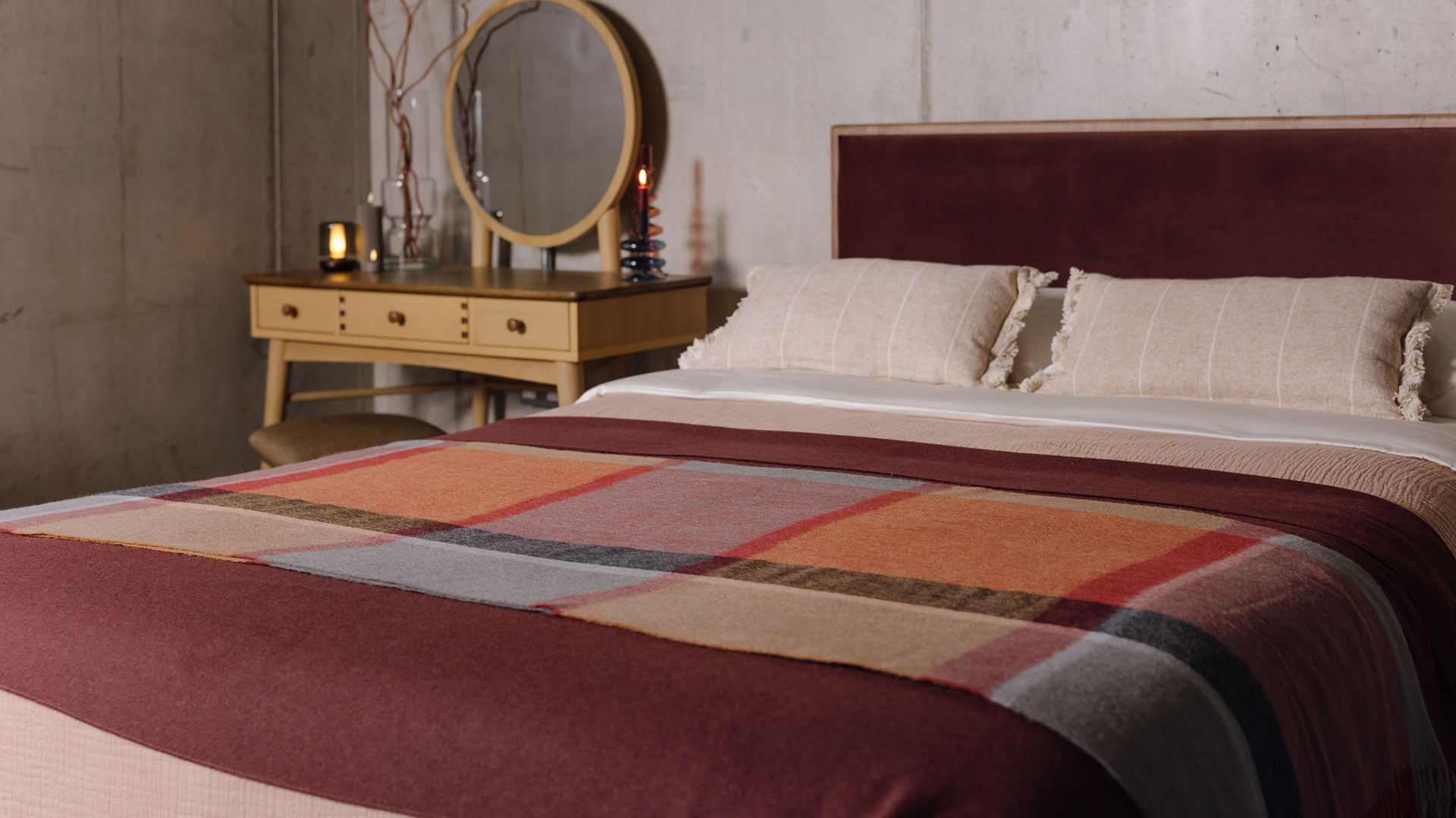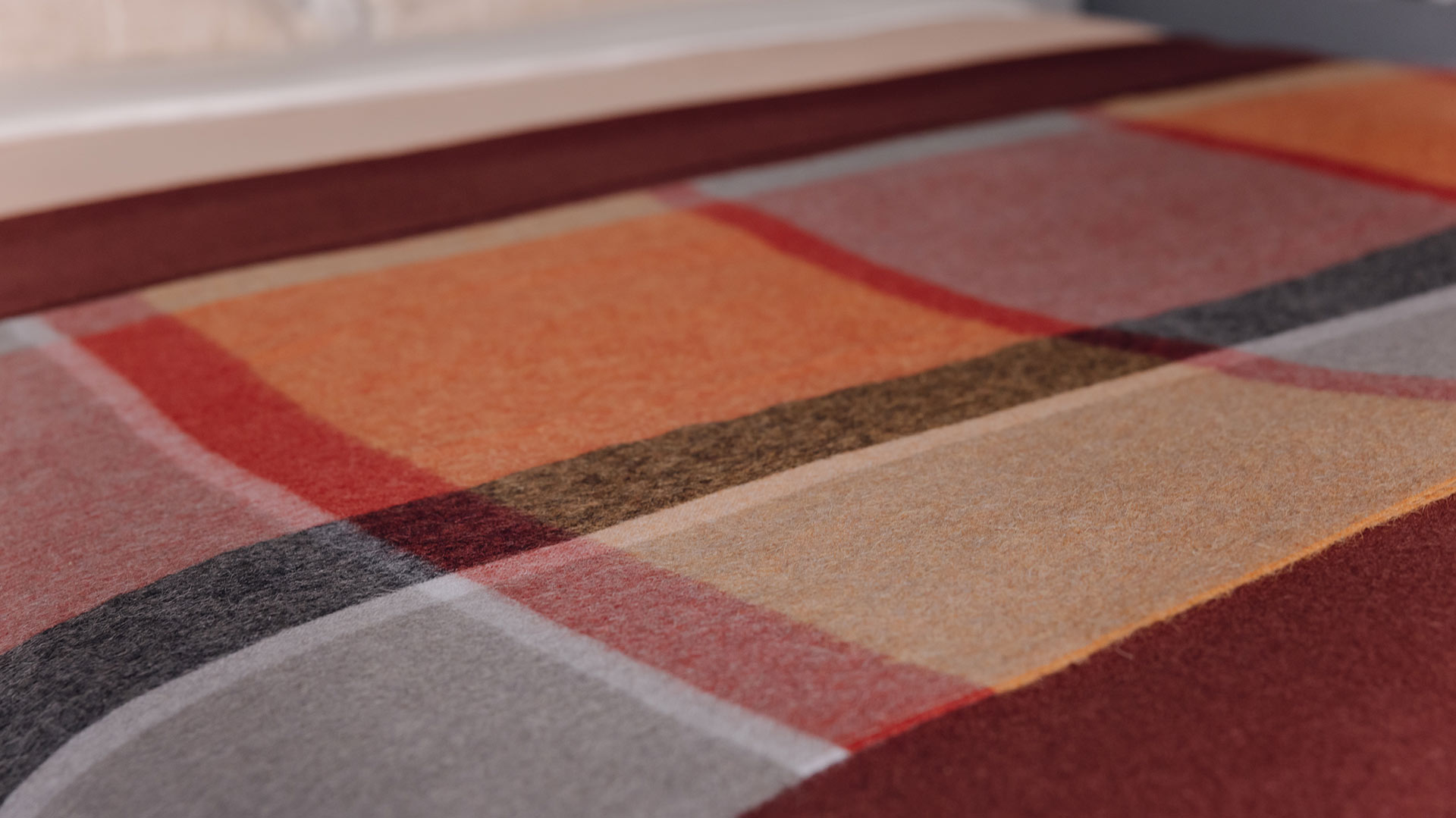 Luxuriously soft, these Alpaca wool-rich throws are luxuriously soft. They boast a contemporary checkered pattern; incorporating a range of complementary tones gently fading from light to dark. These recycled Alpaca wool-rich throws bring a cosy and natural feel to a room.