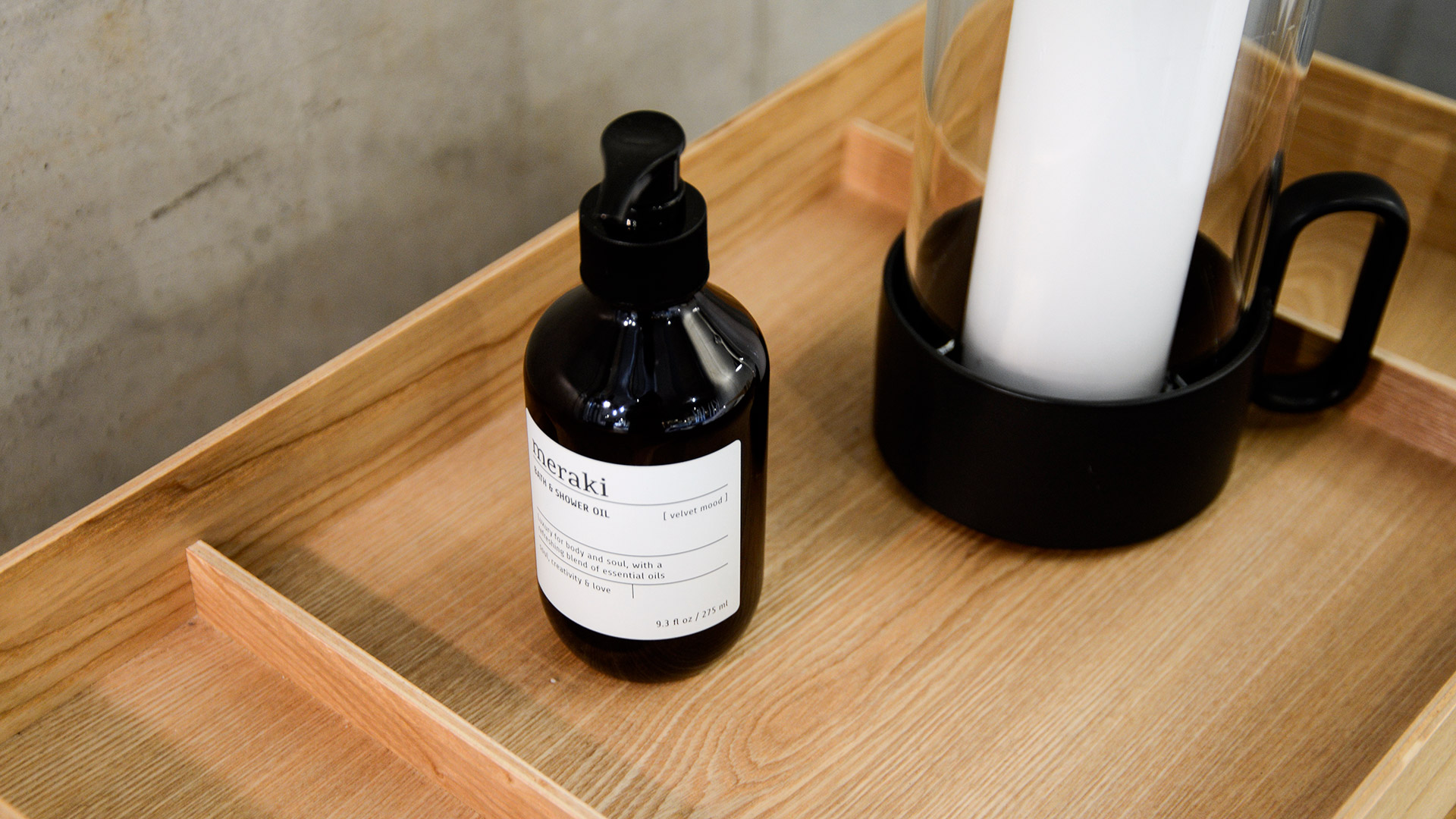 An emulsifying bath and shower oil from Meraki which leaves your skin silky soft, smooth, and nourished.