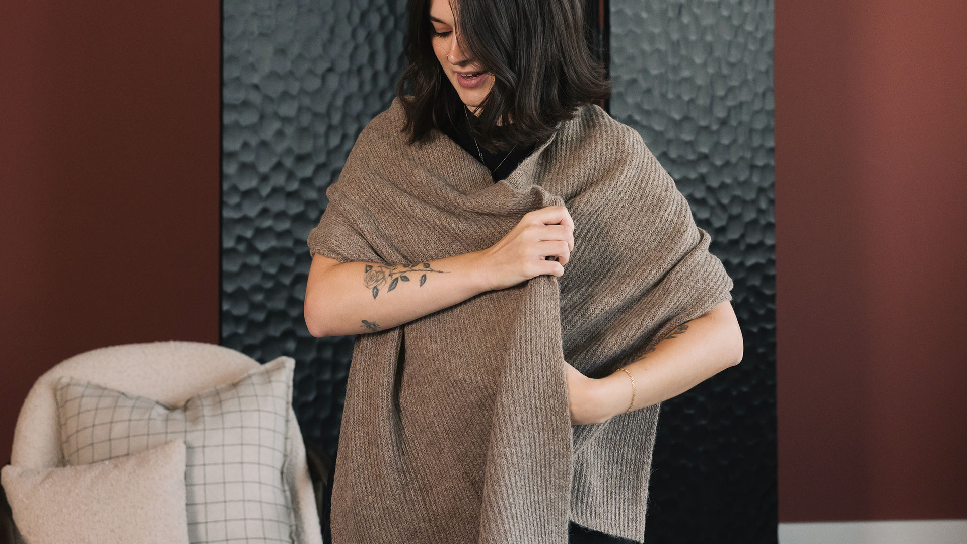 These luxury, modern baby Alpaca wool scarves are incredibly soft and warm. Unisex rib-knit scarves in a two subtle colour-ways, woven in luxurious baby alpaca wool. Available in either brown or grey, they are an easy, quality addition to your winter wardrobe.