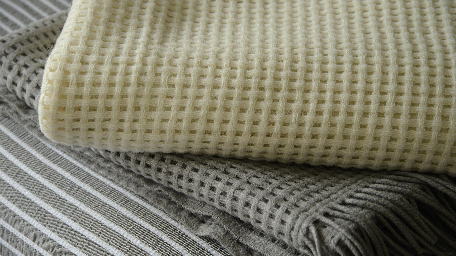 Super soft, basket-weave inspired, recycled wool blend throws. Made using recycled fibres, including 70% sheep and alpaca wool. Available in Ivory or Light Grey.