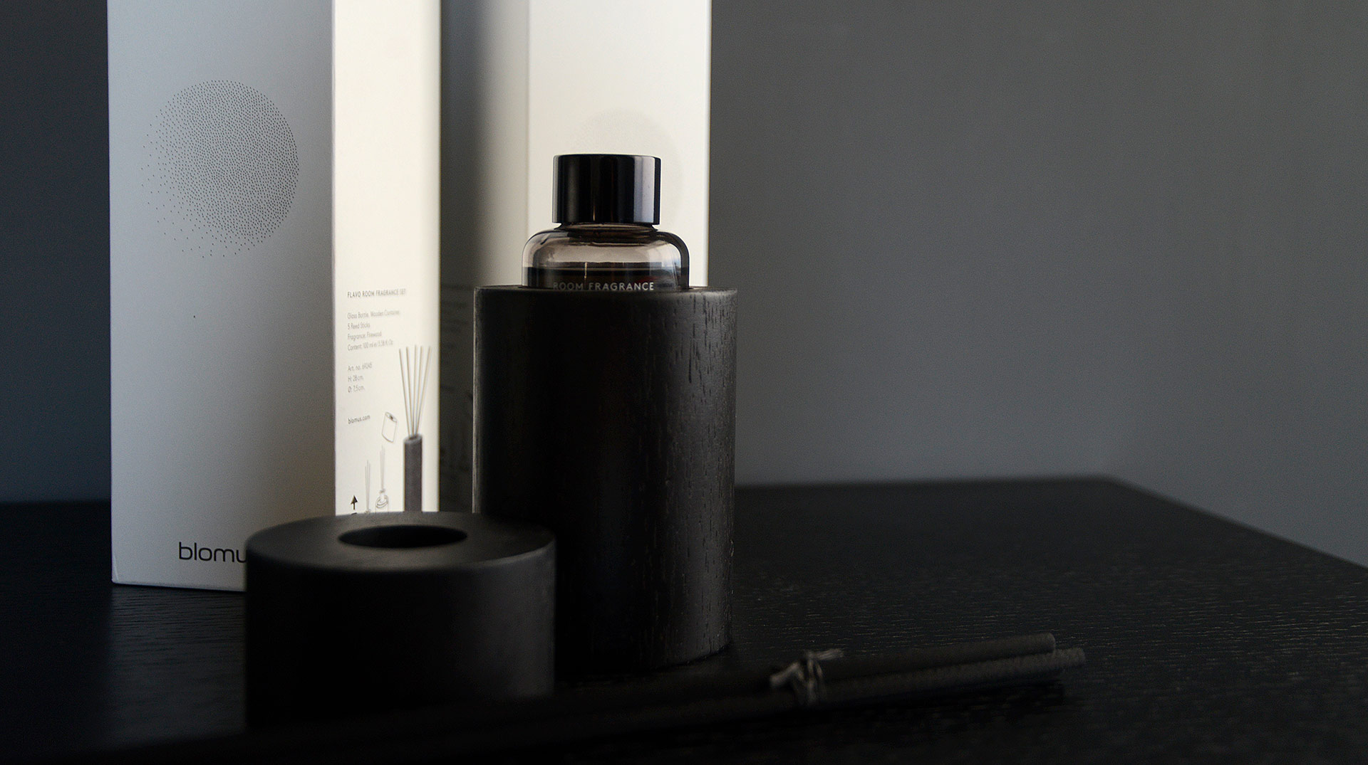 Set Includes: Fragrance in a glass bottle – 100ml Wooden Container with a dark finish Set of 5 reeds