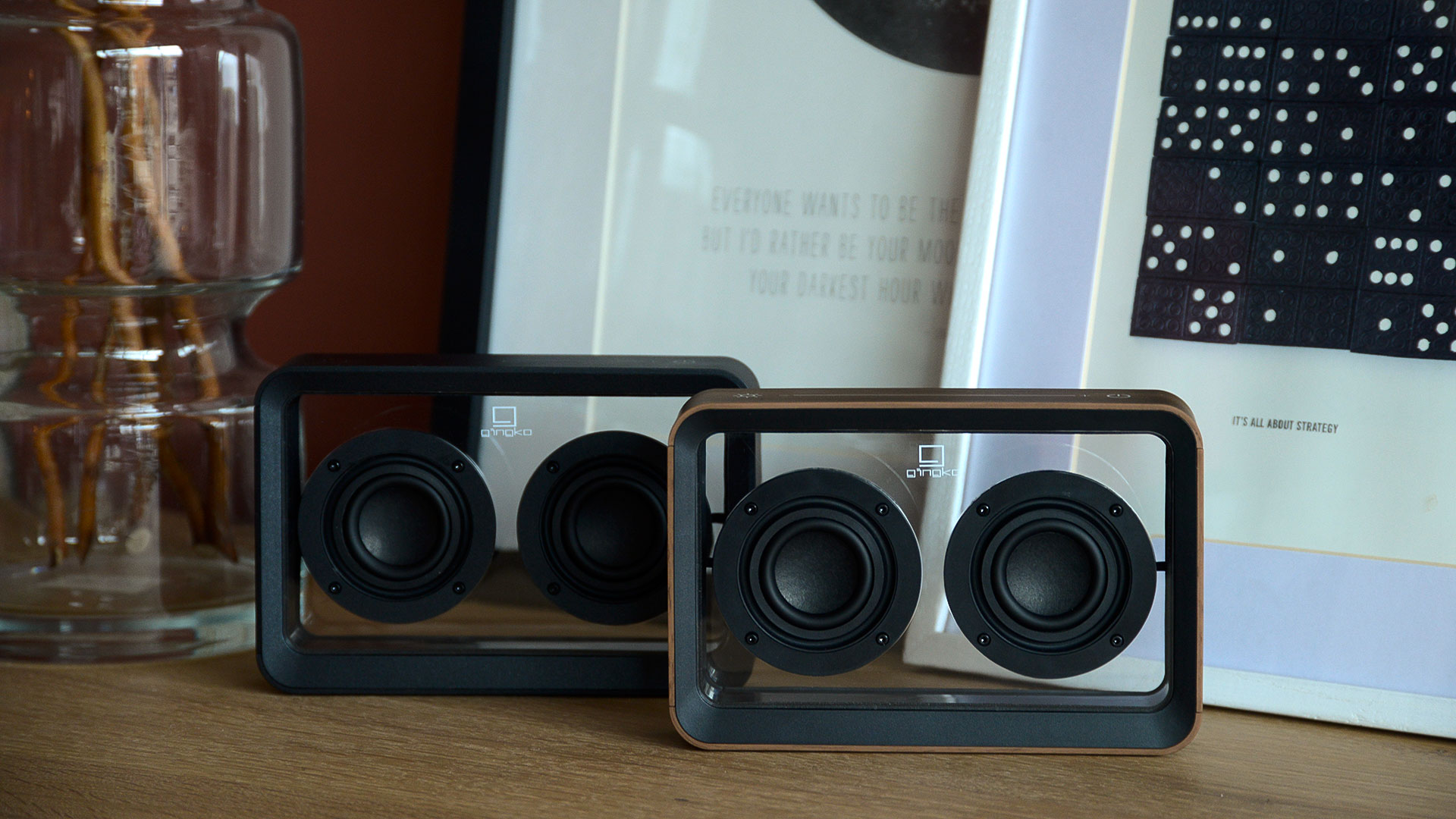 Sleek & modern bluetooth speakers, perfect for use at home or on the go. A compact, versatile size, but large enough to deliver on sound quality. Touch function activated, with built-in light setting. Available in either matte black or walnut. Further details can be found below.