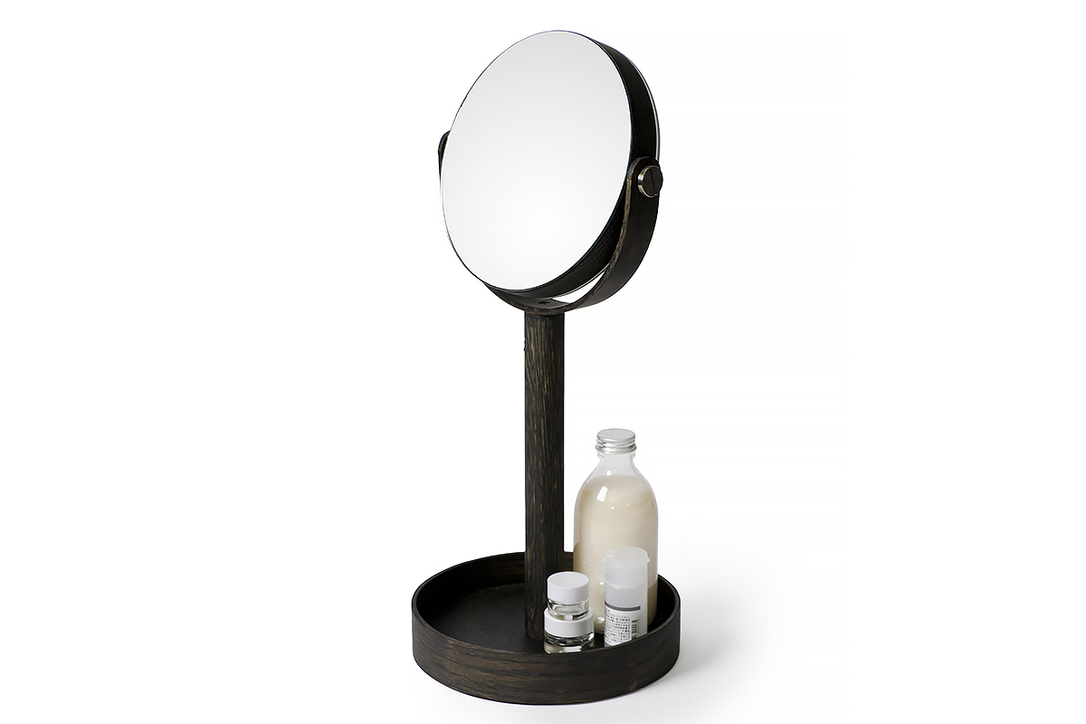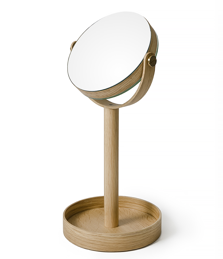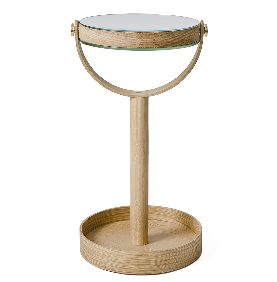With it’s slim profile and refined form, the Magnify Mirror is a stylish addition to any bathroom or bedside table. Portable and well proportioned, this modern mirror has a magnifying mirror, a standard mirror and a useful storage tray base. All edges are crisp and sharp, but finely hand sanded to make them soft to the touch.