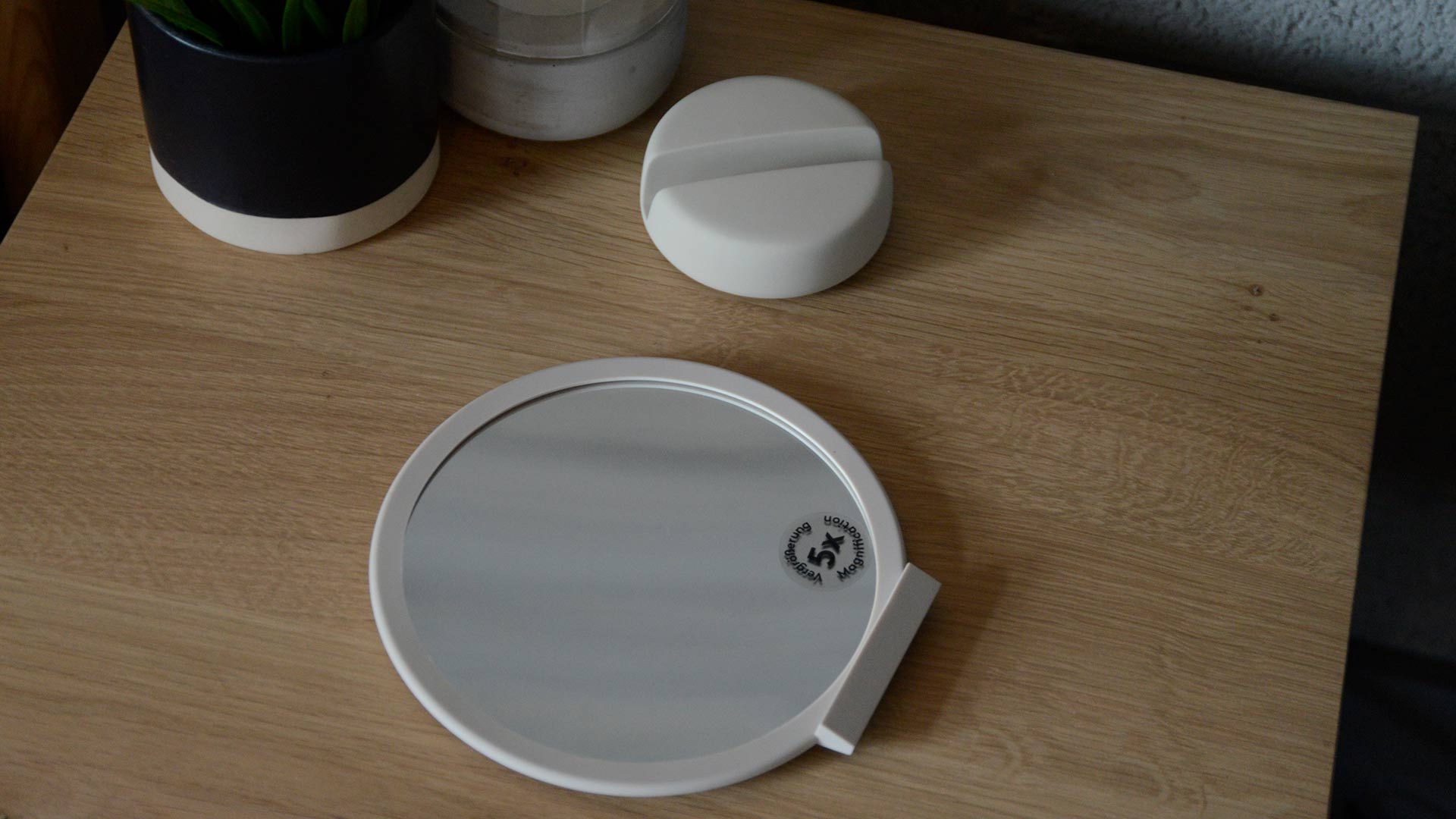 These handy magnifying mirrors are a stylish addition to any bathroom or bedside table. Portable and well proportioned, this modern mirror boasts 5x magnification and a sturdy base. The design also allows the mirror to be used as a hand-mirror or compact table top mirror. These subtly stylish magnifying mirrors are ideal as a treat for yourself, or a gift for a friend.
