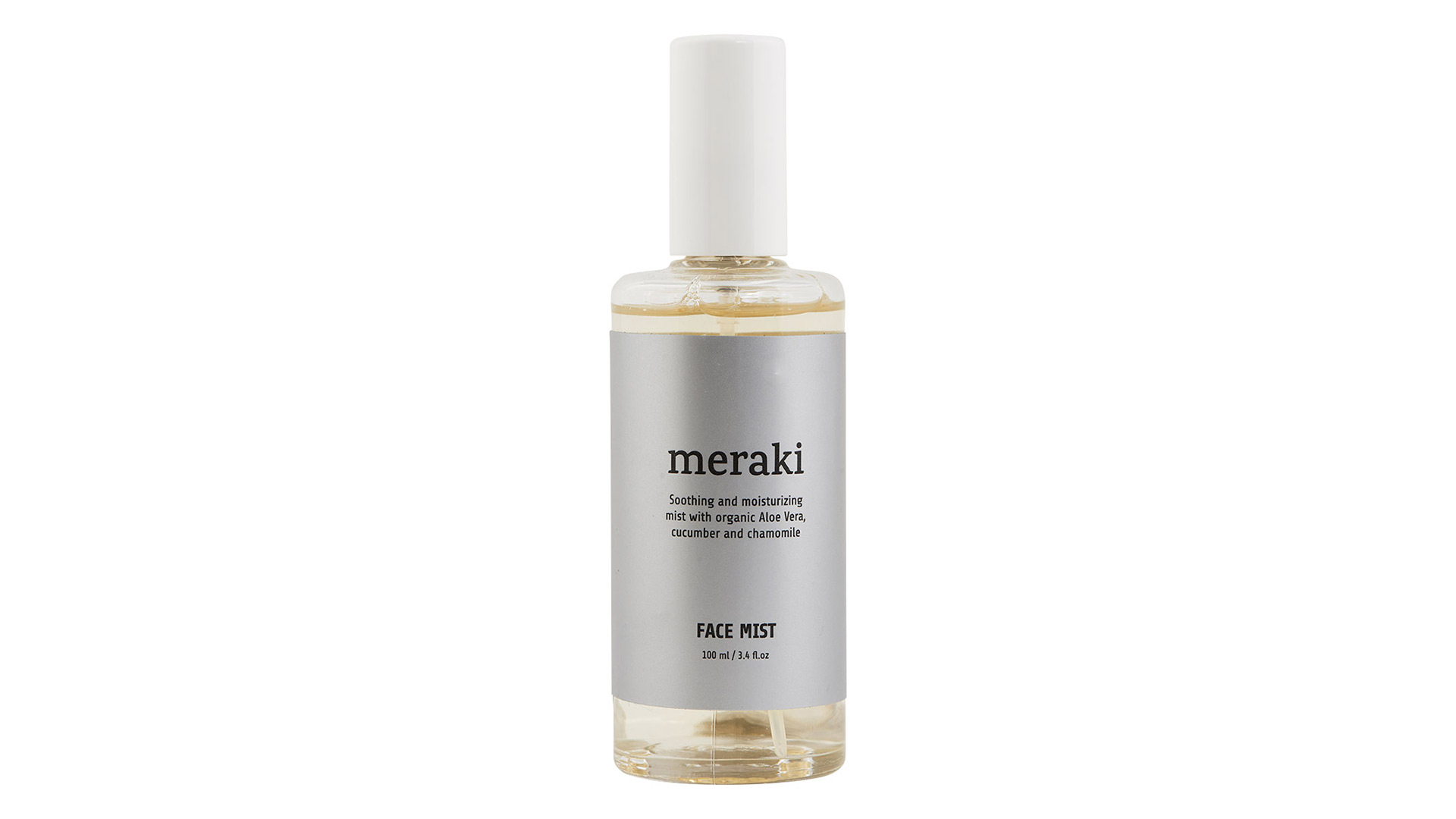 A nourishing, moisture-giving facial mist. Made with organic aloe vera, cucumber and camomile extract. This luxurious face mist from Meraki is not only firming, but also calming for your skin. Firstly, close your eyes before spraying a fine layer on the face. Moreover, for best results, we recommend following with Meraki’s Serum A. You can also use the facial mist as a restyling product to add texture to curly hair. Suitable for all skin types.