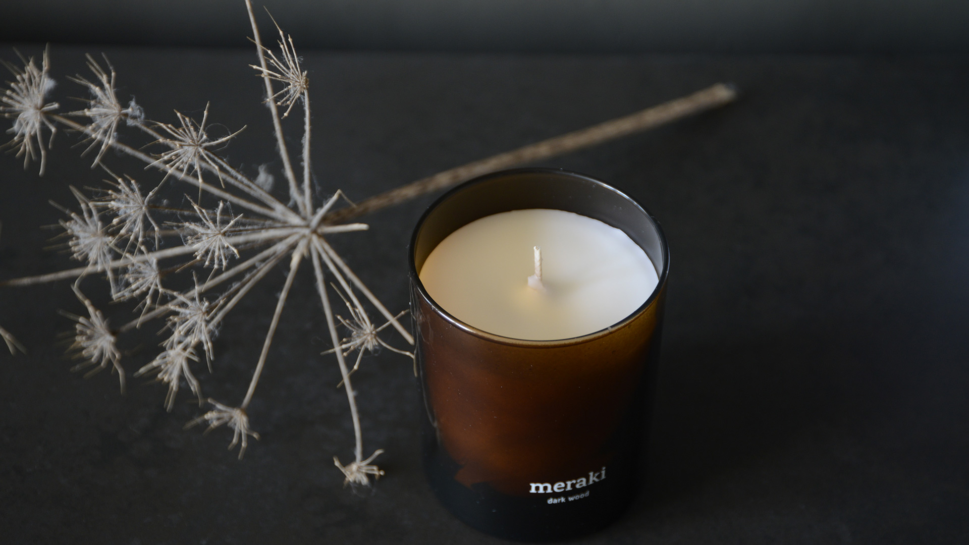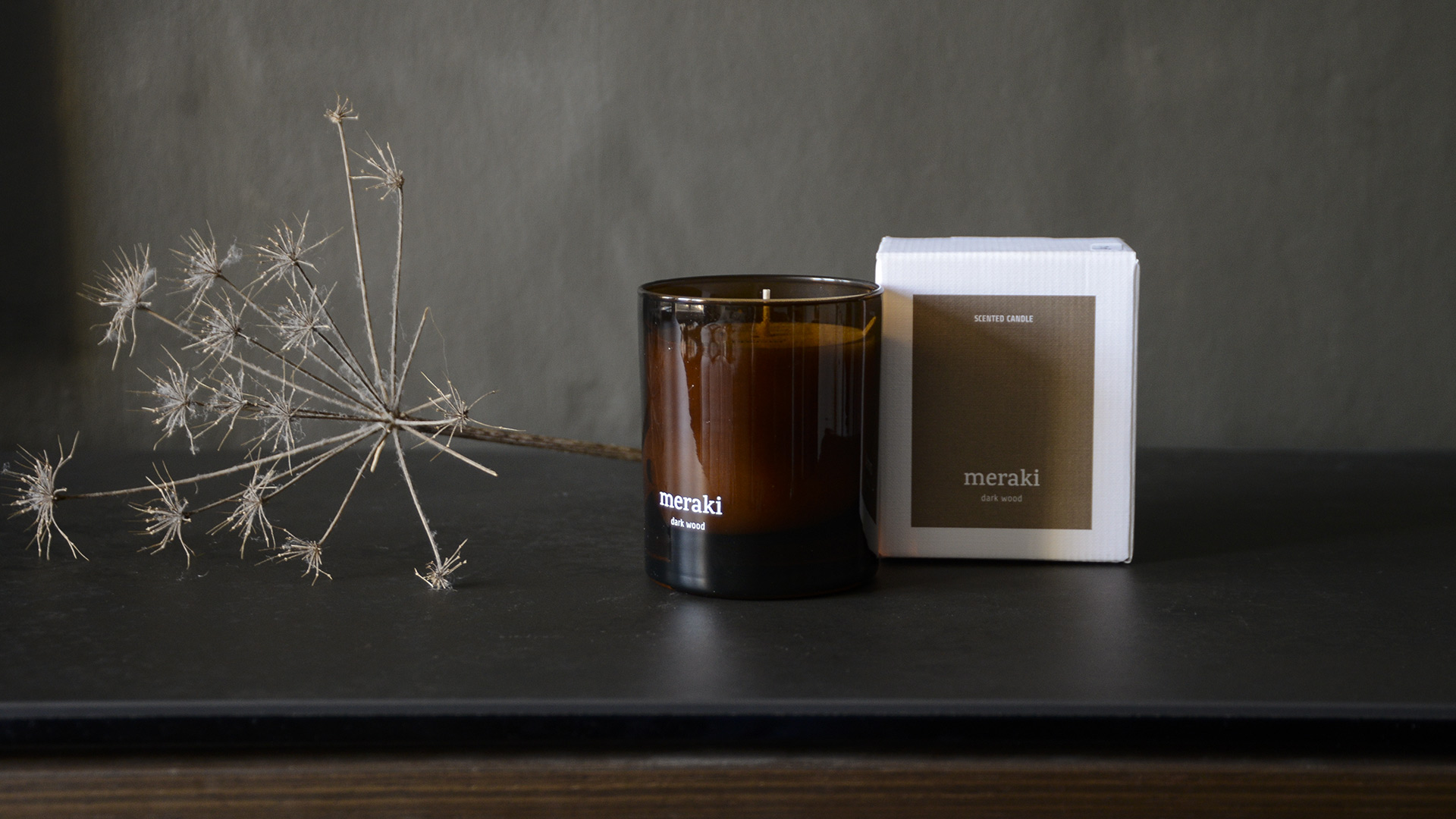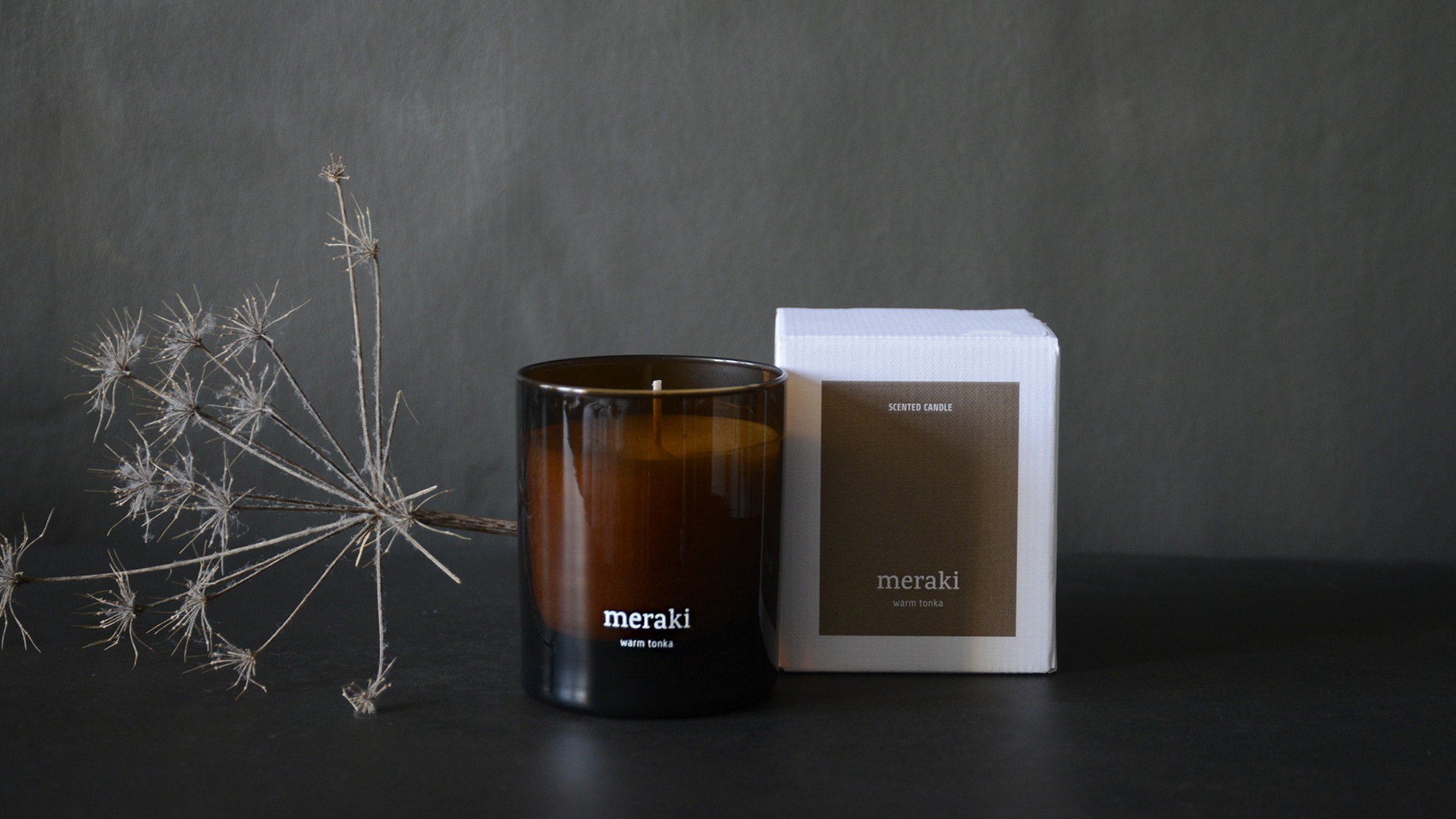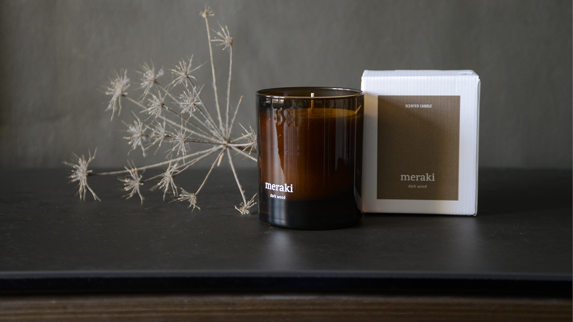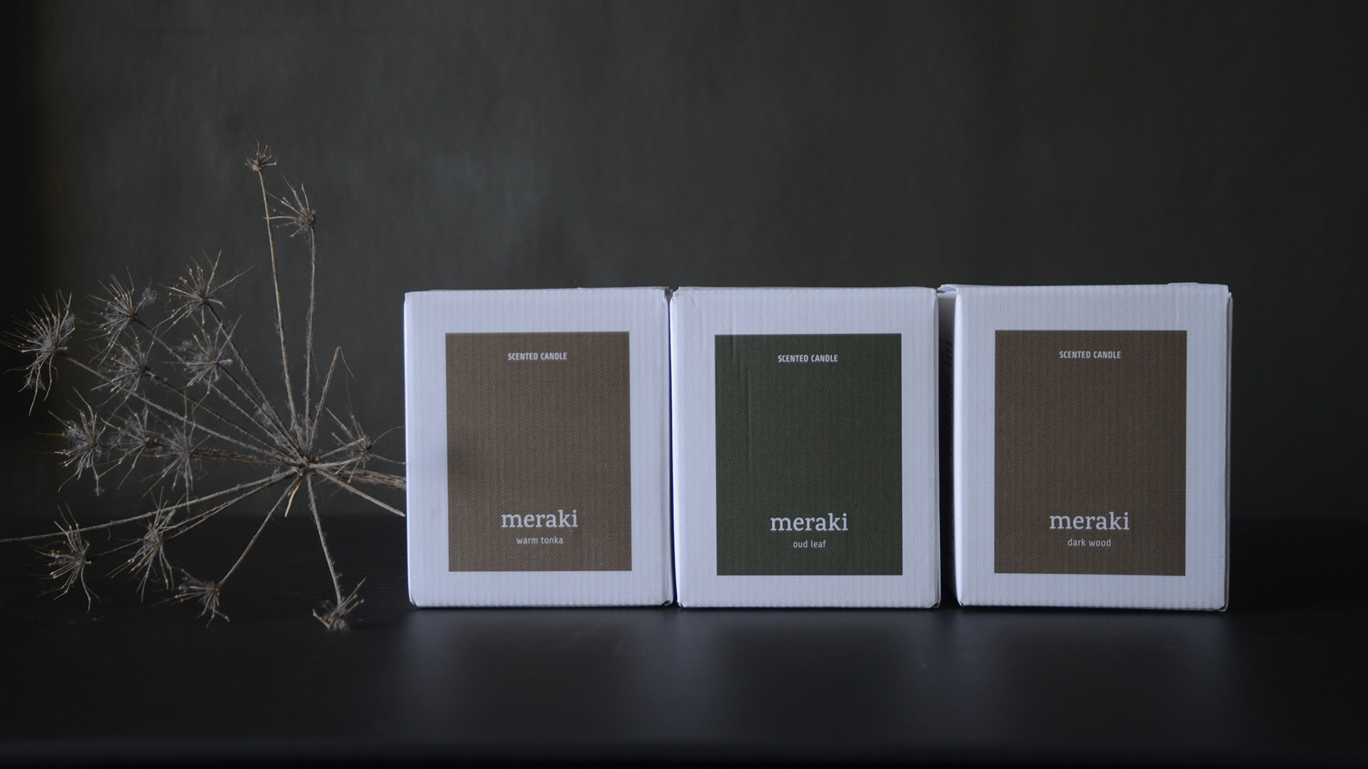 In alluring, sophisticated scents, these Meraki scented candles each come in a coloured glass jar. The Dark Wood and Warm Tonka scents come in deep, amber coloured glass, whereas the Oud Leaf scent comes in an olive green glass jar. Further information can be found below.