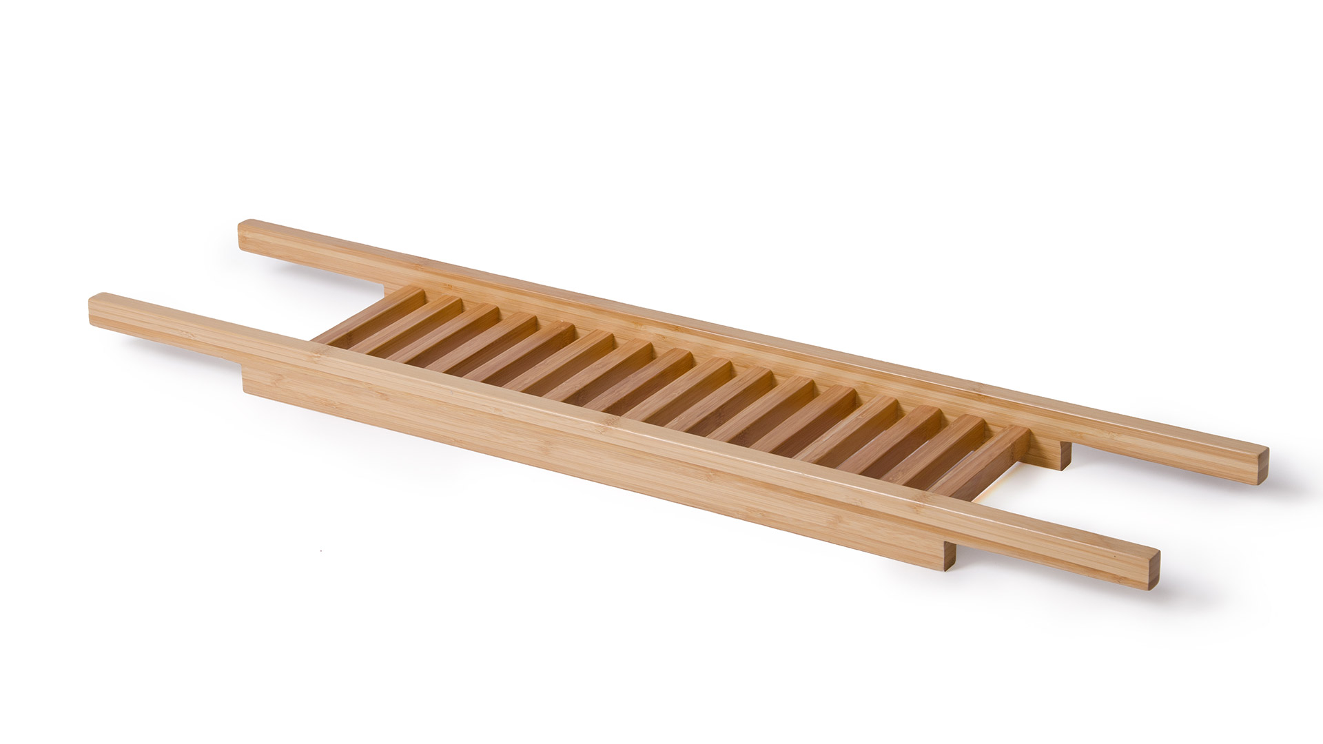 This bath bridge is a modern storage device to sit over the bath, made of bamboo. The bath bridge makes a useful platform for toiletries, a book or a tumbler of wine. The Bath Bridge is part of our collection of well designed, contemporary bathroom accessories including the storage caddies and mirrors.