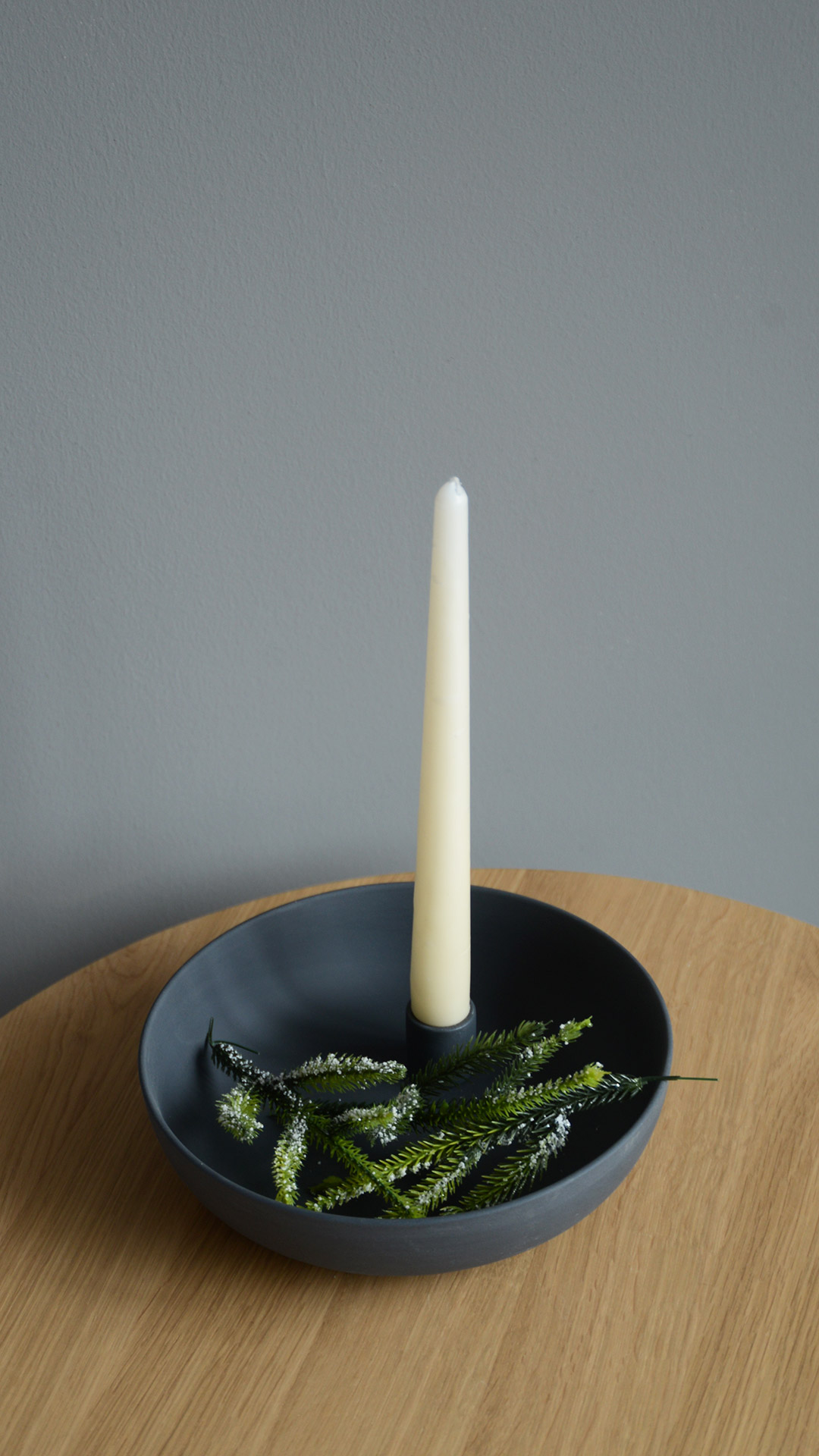 Modern candle holders, in matt coloured porcelain. Available in dark grey, light grey or ivory. Sized to hold a single dinner candle (not included), it also has a deep dish base – perfect for extra decoration (small plants, pine cones and holly etc.) or as useful storage (keys, jewellery etc.) These matt, modern candle holders are a lovely treat for yourself, or a gift for a friend.