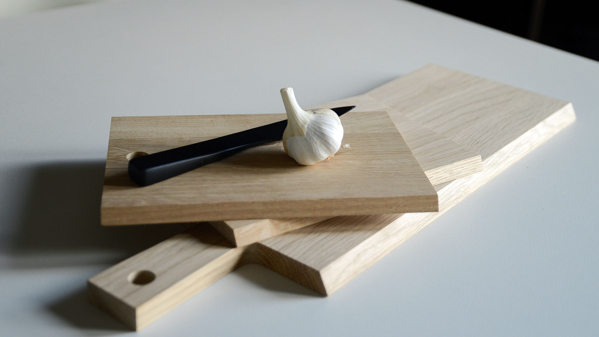 Modern, solid oak serving boards available in two sizes. Choose from a large chopping/serving board or a set of 2 small ‘breakfast boards’. Perfect for breakfast in bed or keeping on hand in the kitchen.