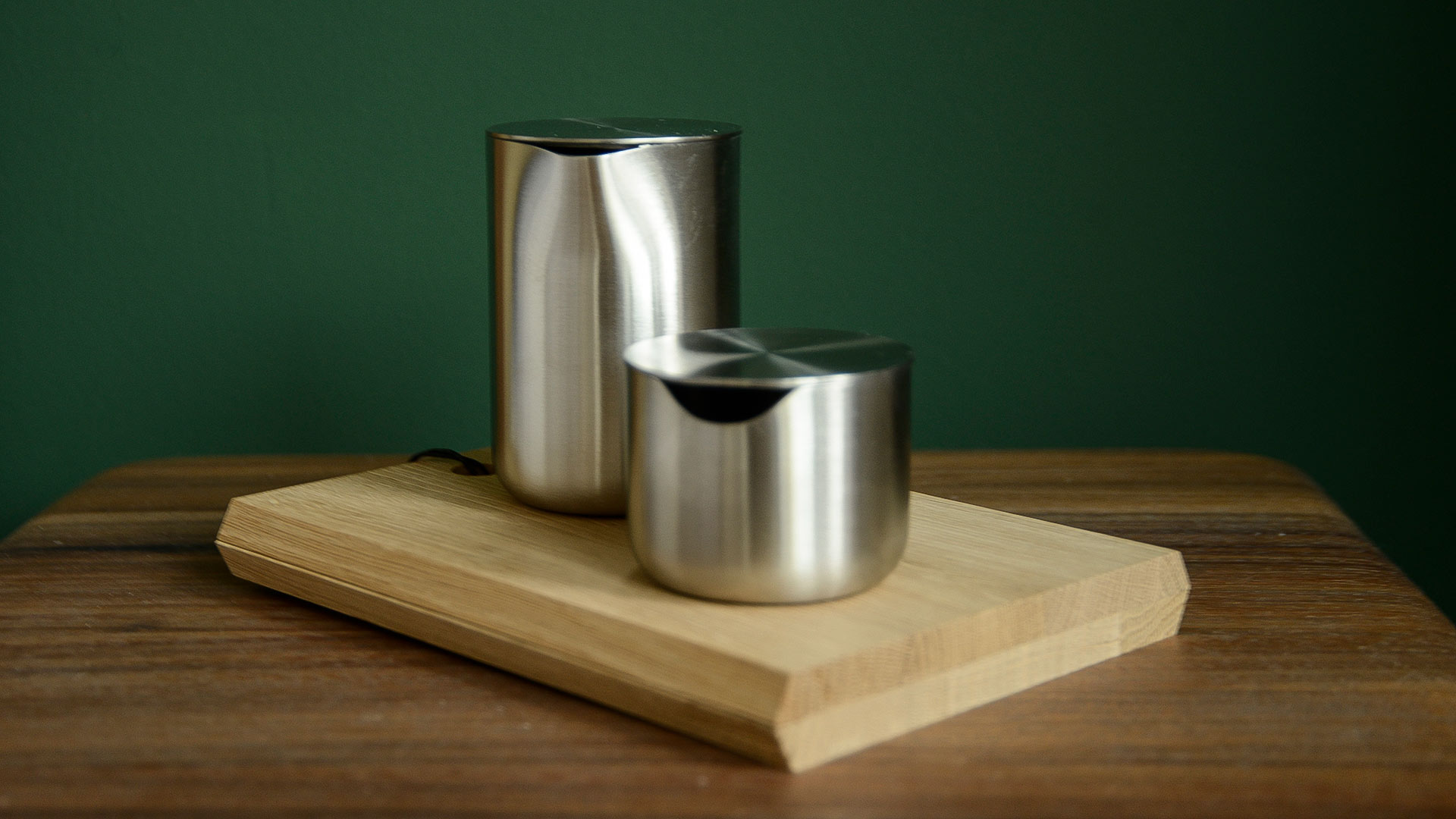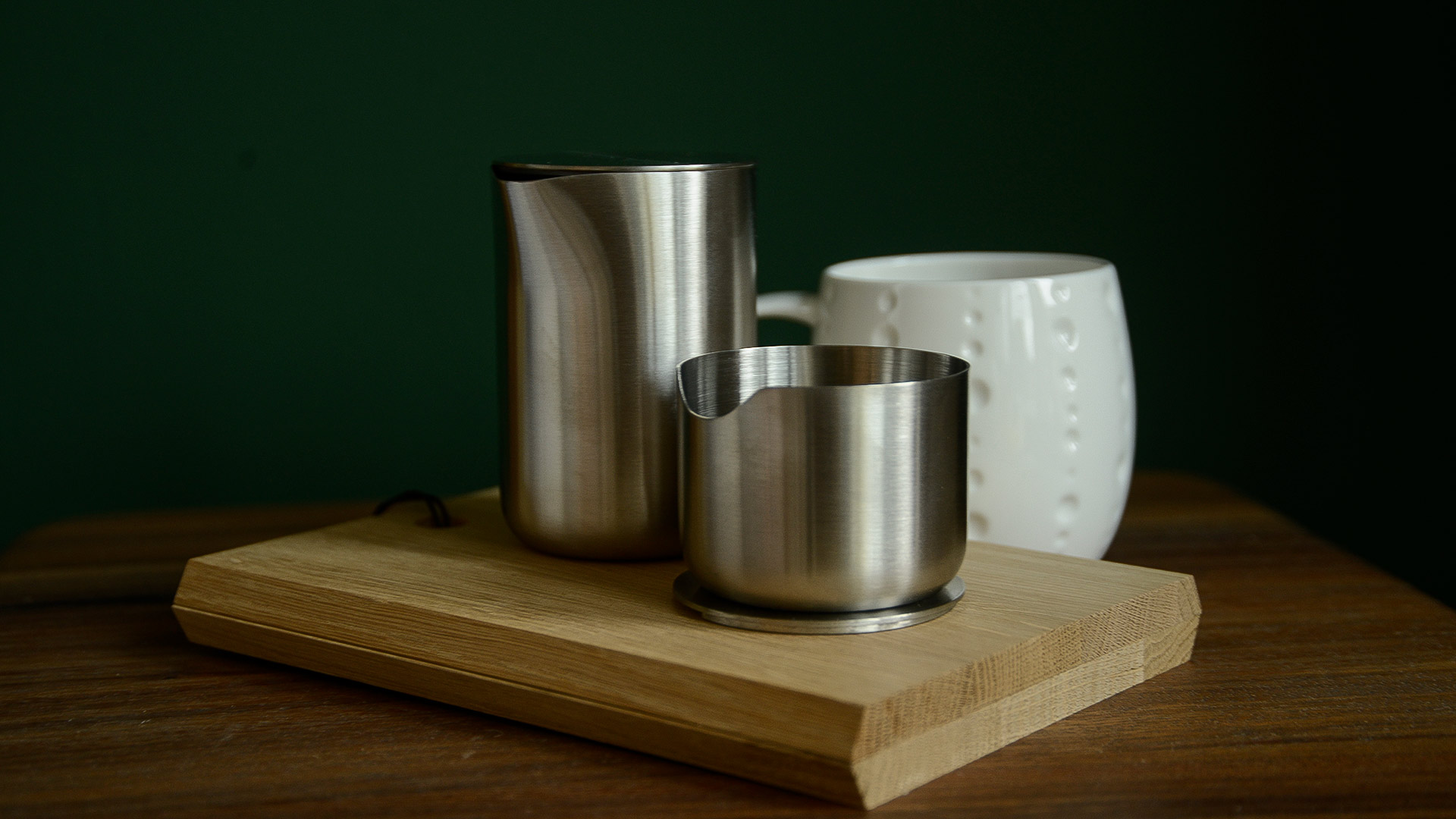 Modern tableware – these stunning stainless steel sugar bowls and creamers are practical and elegant.