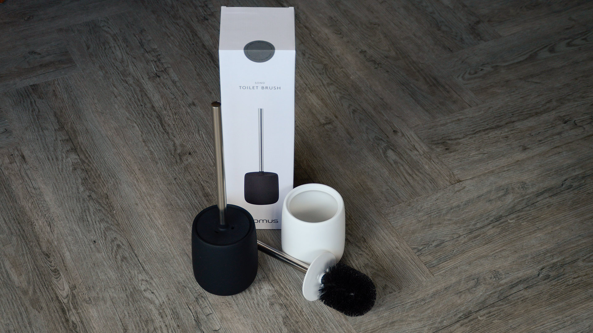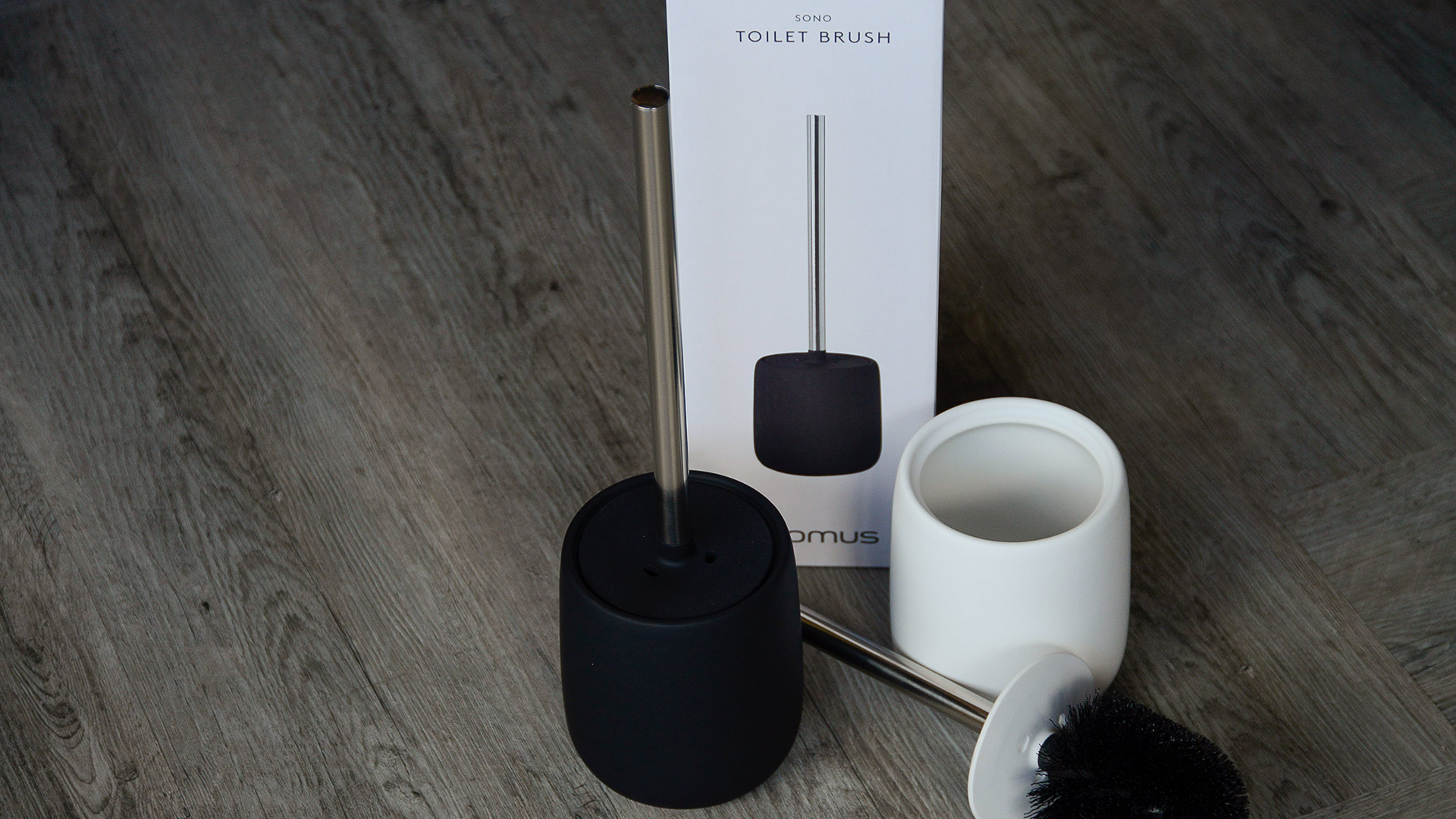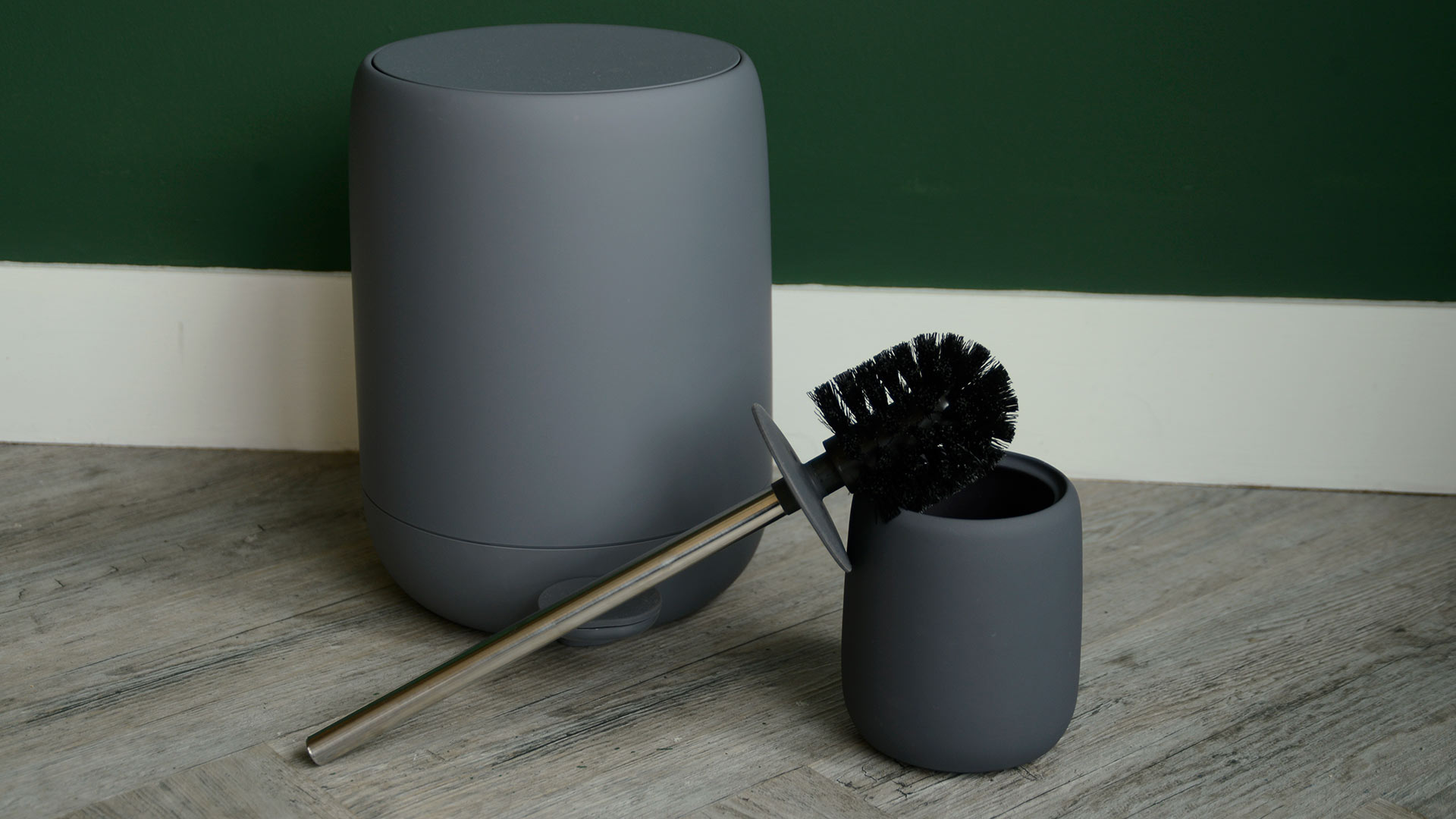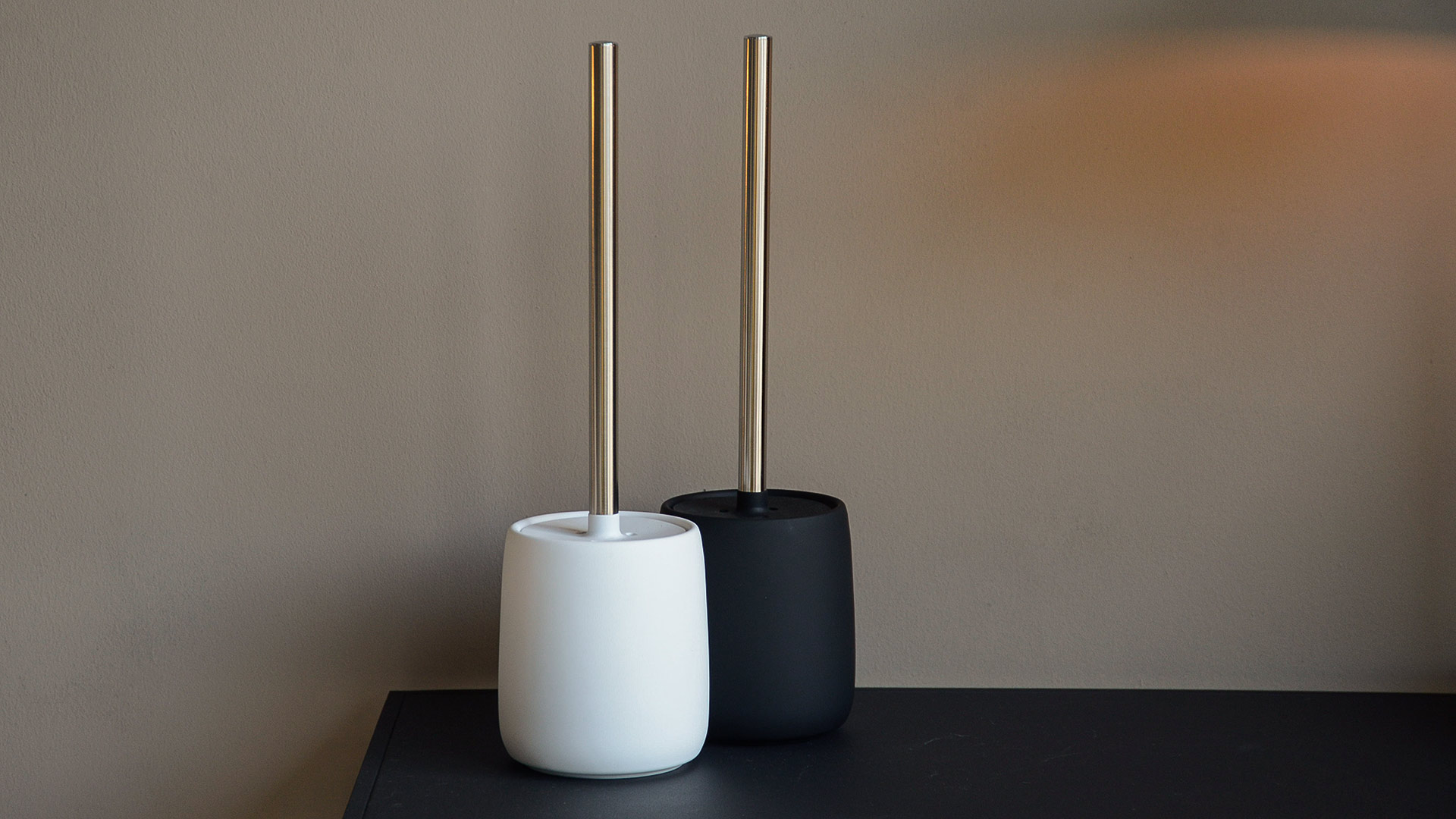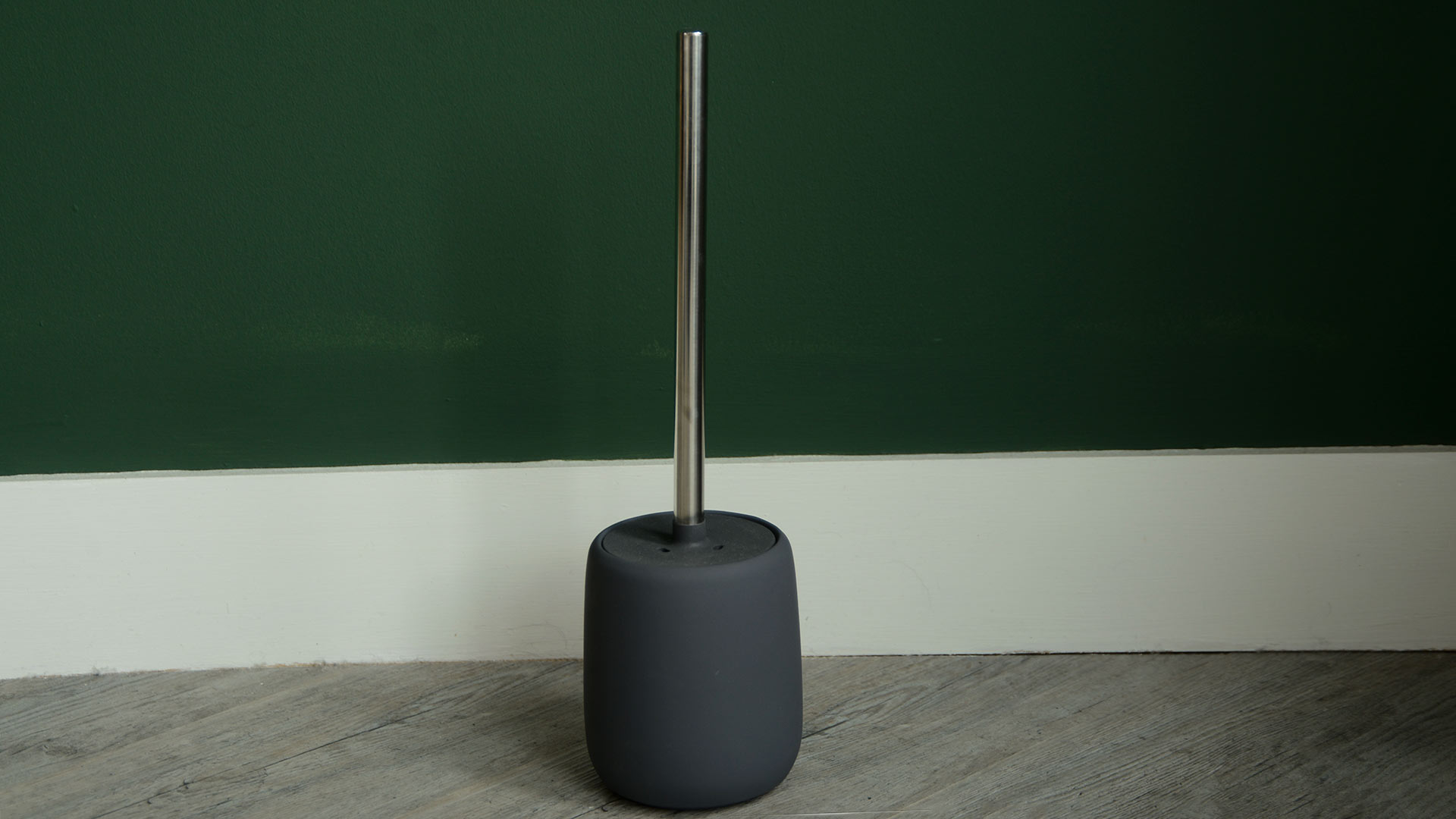 Minimal and stylish toilet brush in matt black, dark grey or white, perfect for a contemporary bathroom.
