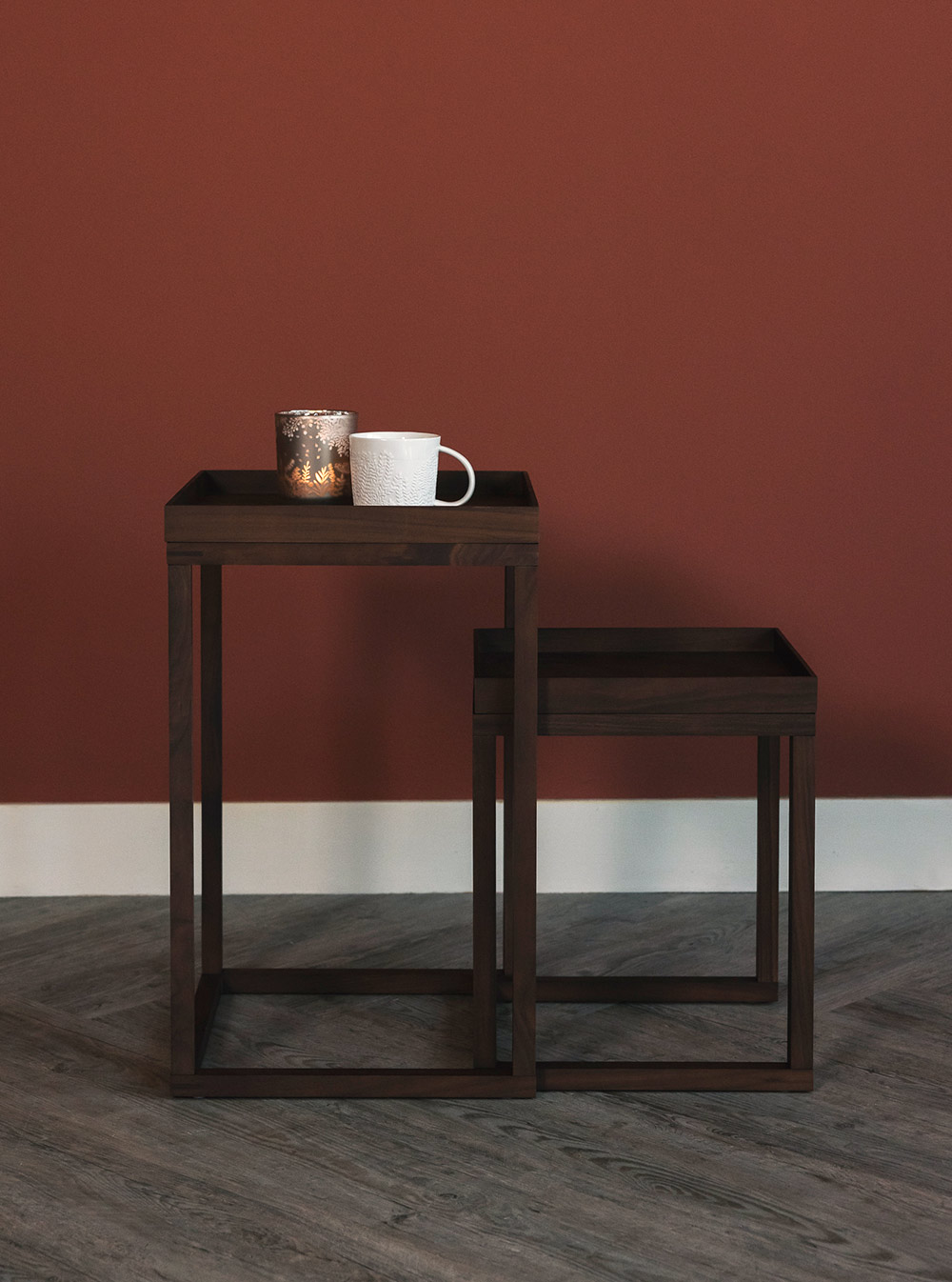 Please note: this modern walnut nest of tables is made from solid walnut, meaning you can expect to find natural variances in tone and grain from piece to piece.