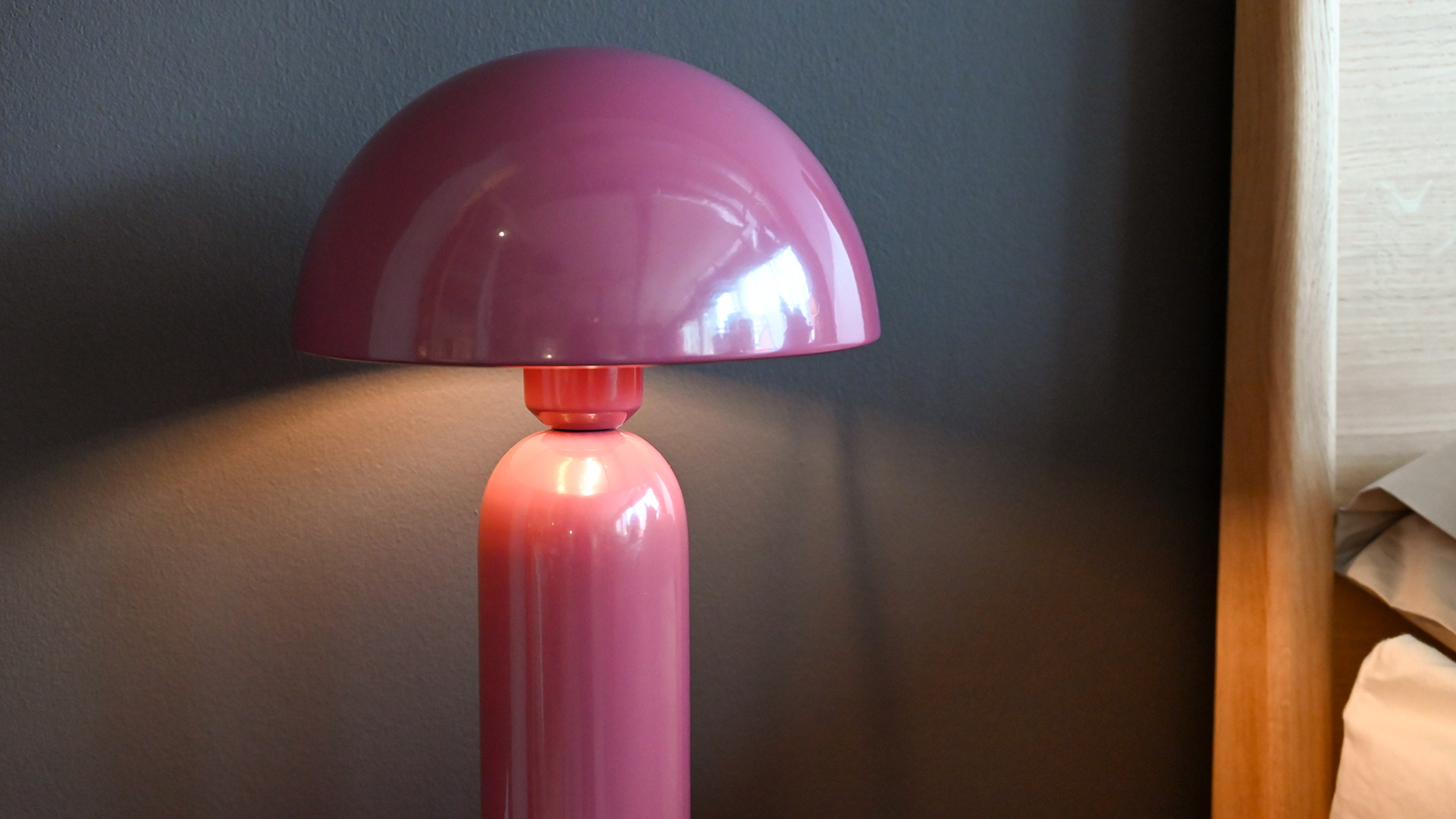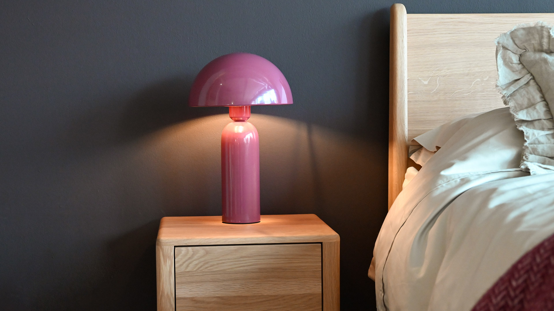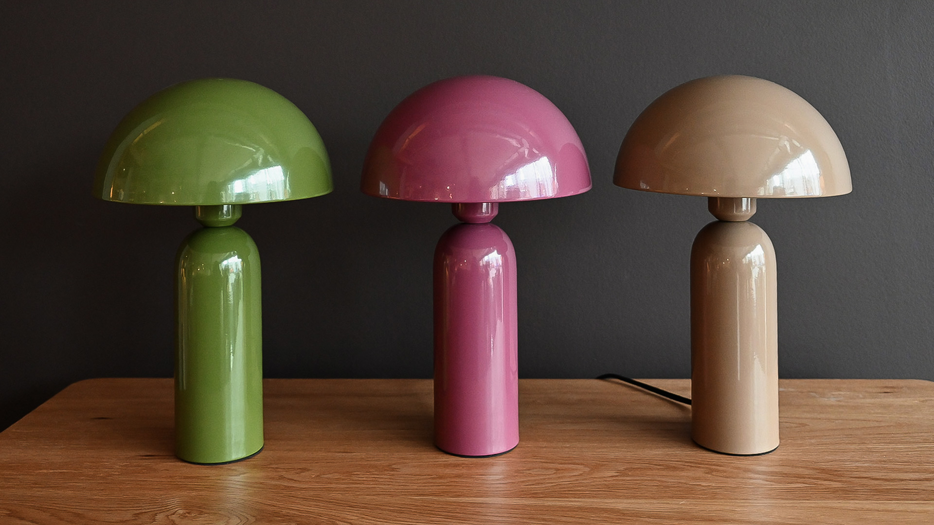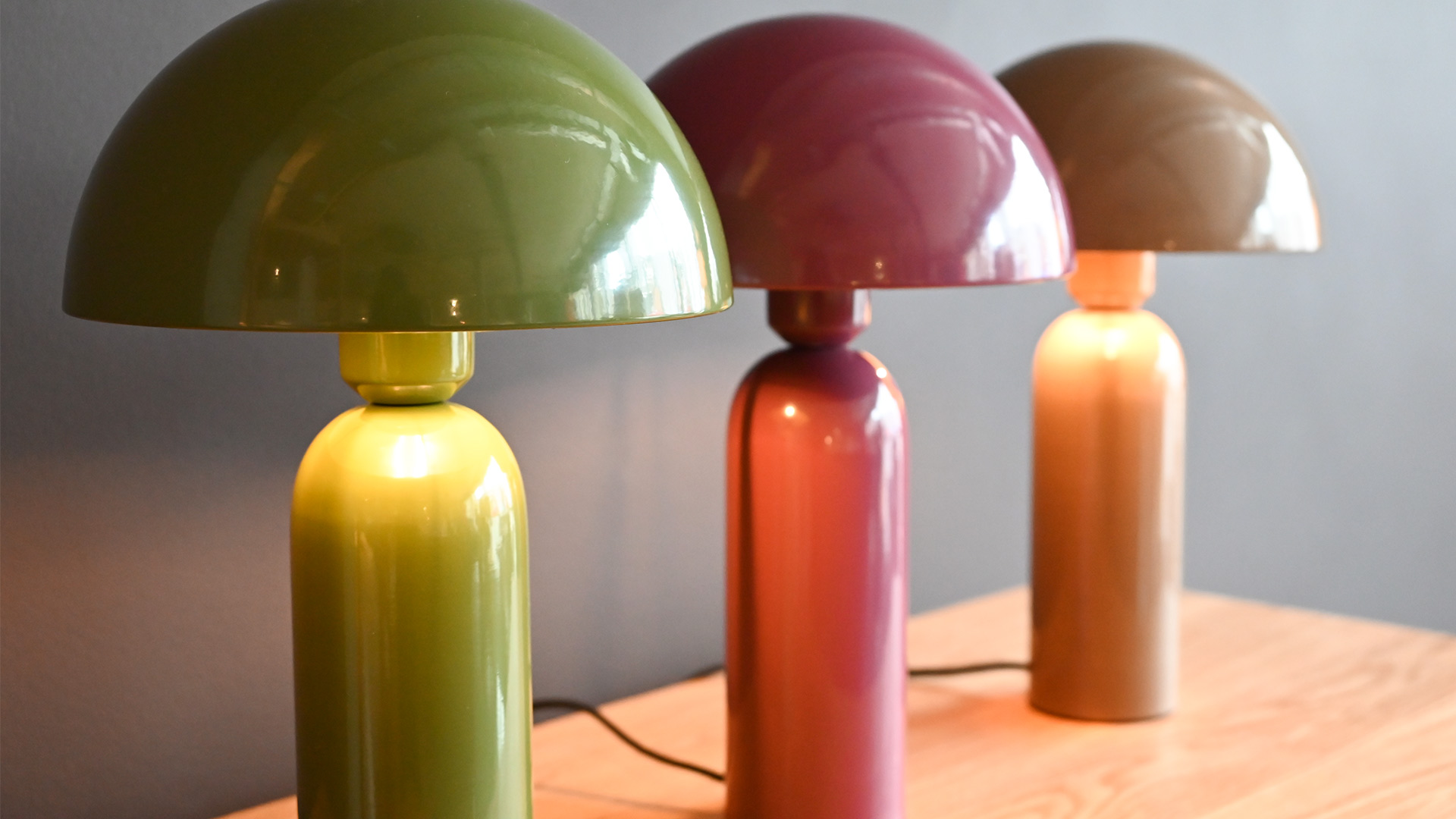 These modernist dome lamps are the perfect accent piece to the bedside, bookshelf or sideboard. Featuring a slim base and a striking semi-circular top, they are available in three stylish colours. Choose from berry, deep green, or mocha to suit your room scheme. Each one gives off a soft glow, creating the perfect mood lighting.