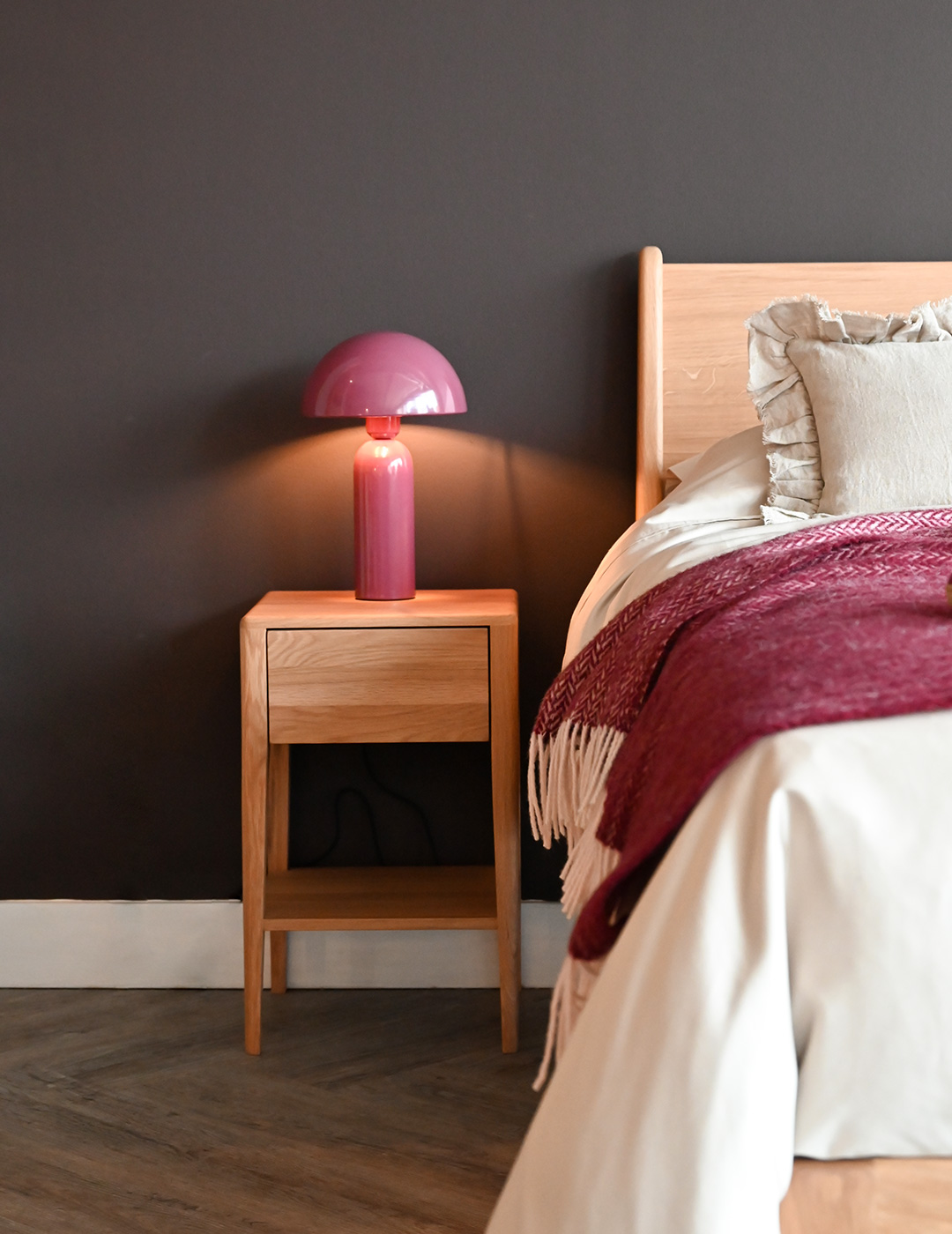 A contemporary lamp with a retro twist, available in three colours; Berry, Deep Green and Mocha. More information can be found below.