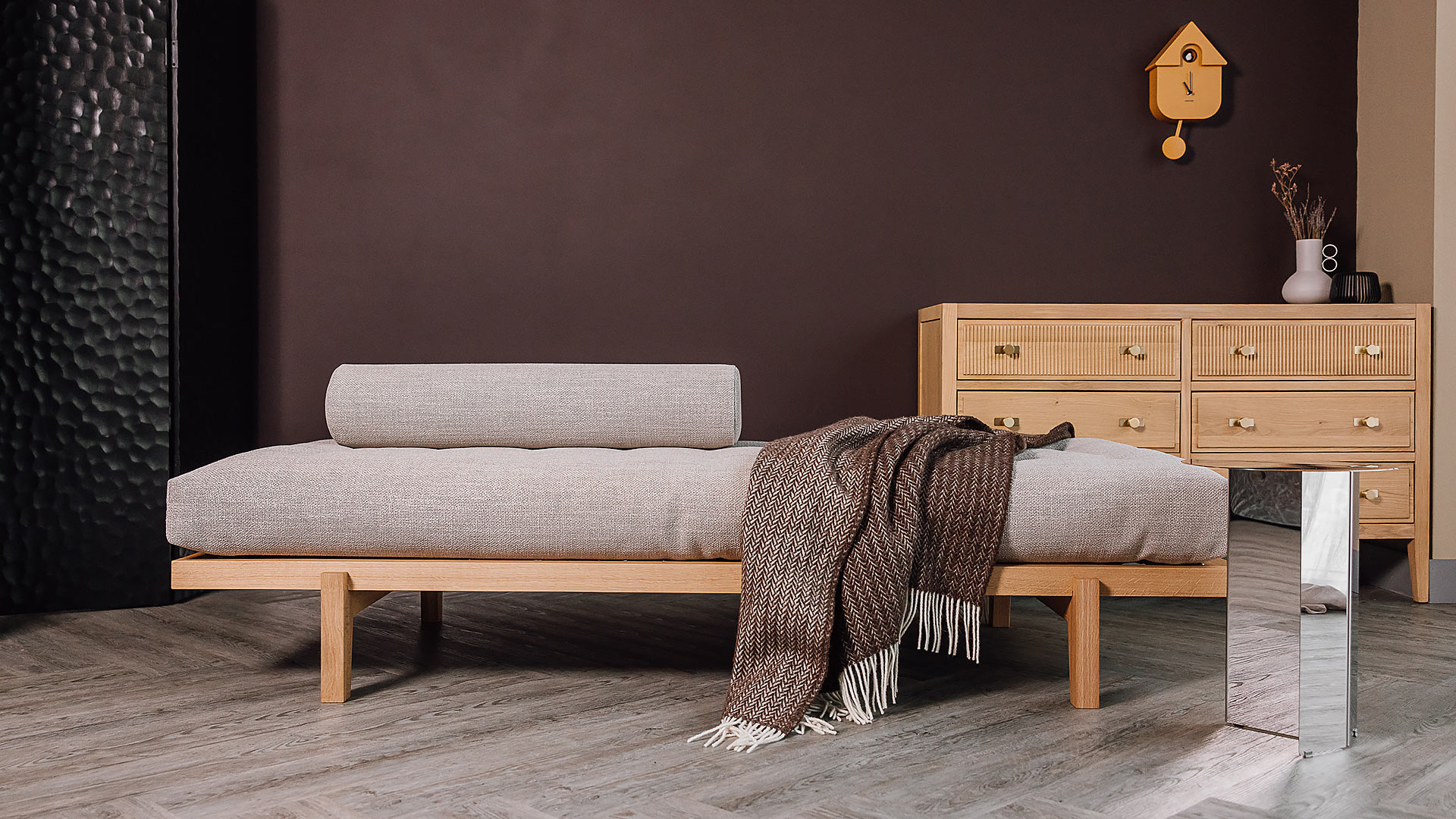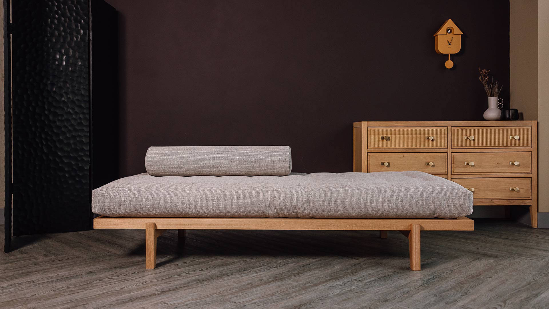 The sister design of our Osaka day bed, the Nara features more angular, straight legs for a more modern look. Drawing on inspiration from minimal Japanese style and mid-century modern ideals. With a slightly larger footprint than that of our Kyoto day bed, the Nara is still a compact frame, but with a more contemporary look. Ideal for spare rooms, large window spaces or even in the lounge.