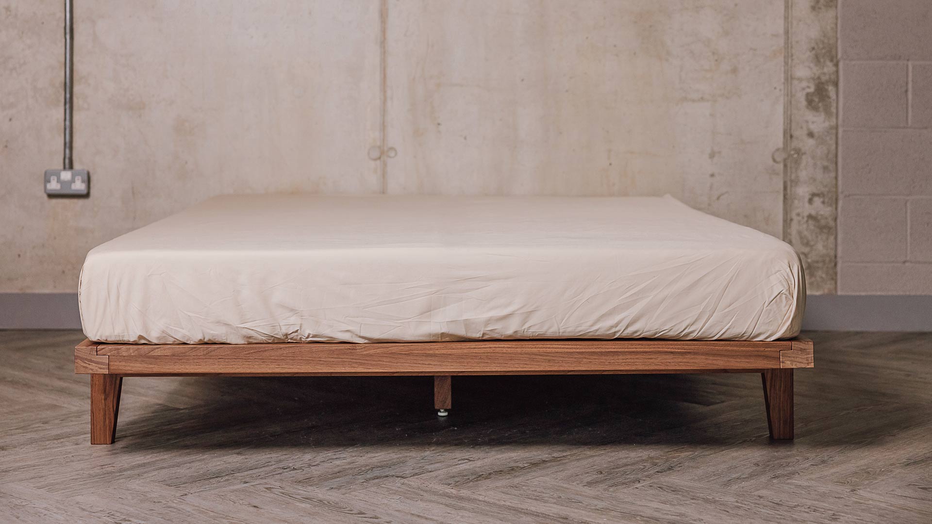The Nara bed base combines Japanese design with contemporary, mid-century modern style. A beautiful, contemporary low bed base with a stylish silhouette; handmade to order in our full range of sustainable hardwoods. The Nara is available on this page without a headboard, but you can also order this bed with a headboard.