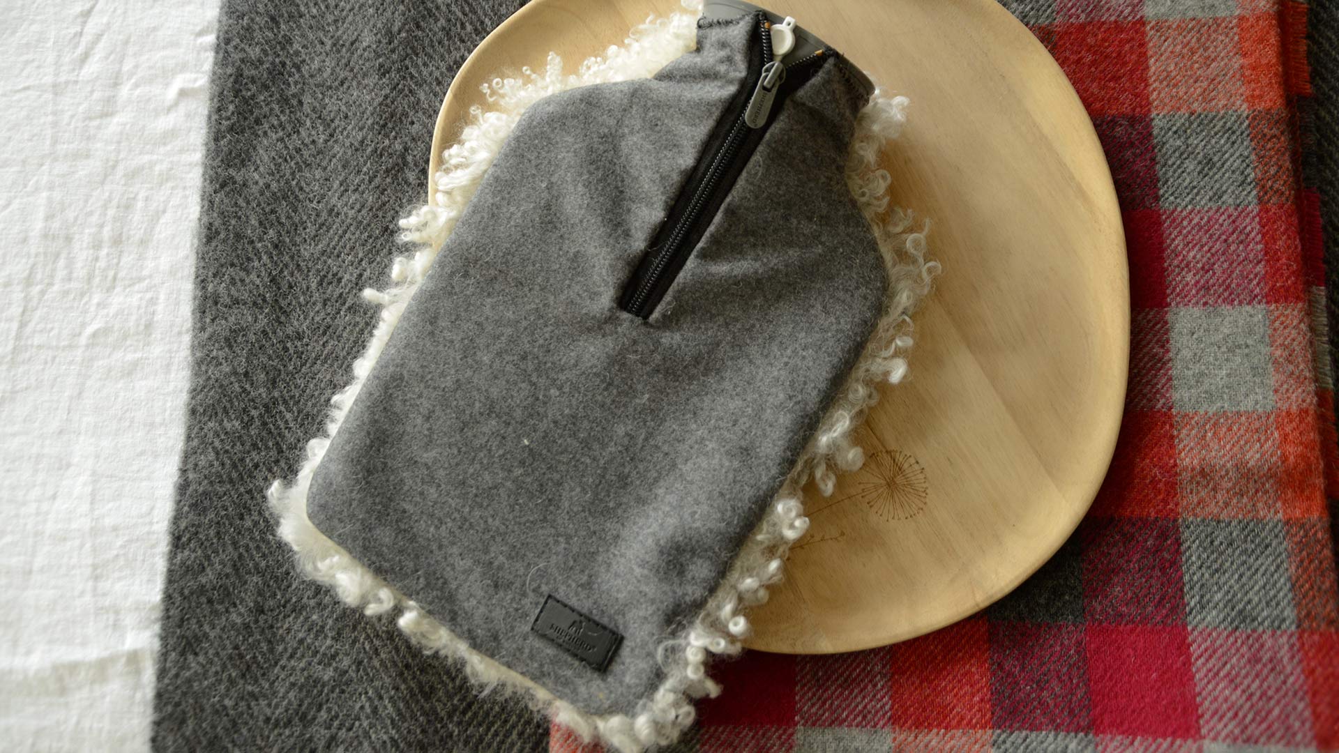 Materials:Â Hot-water bottle: thermoplastic | Covers: natural sheepskin (colours and patterns vary)