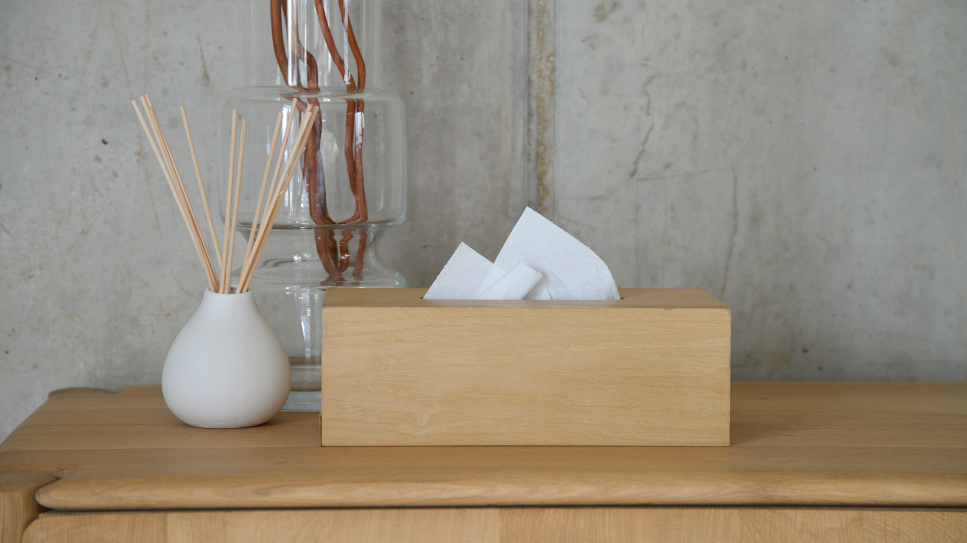 Care instructions: Please note that these oak ply tissue boxes are not suitable for use in a bathroom, as prolonged exposure to moisture may result in the warping of the wood.