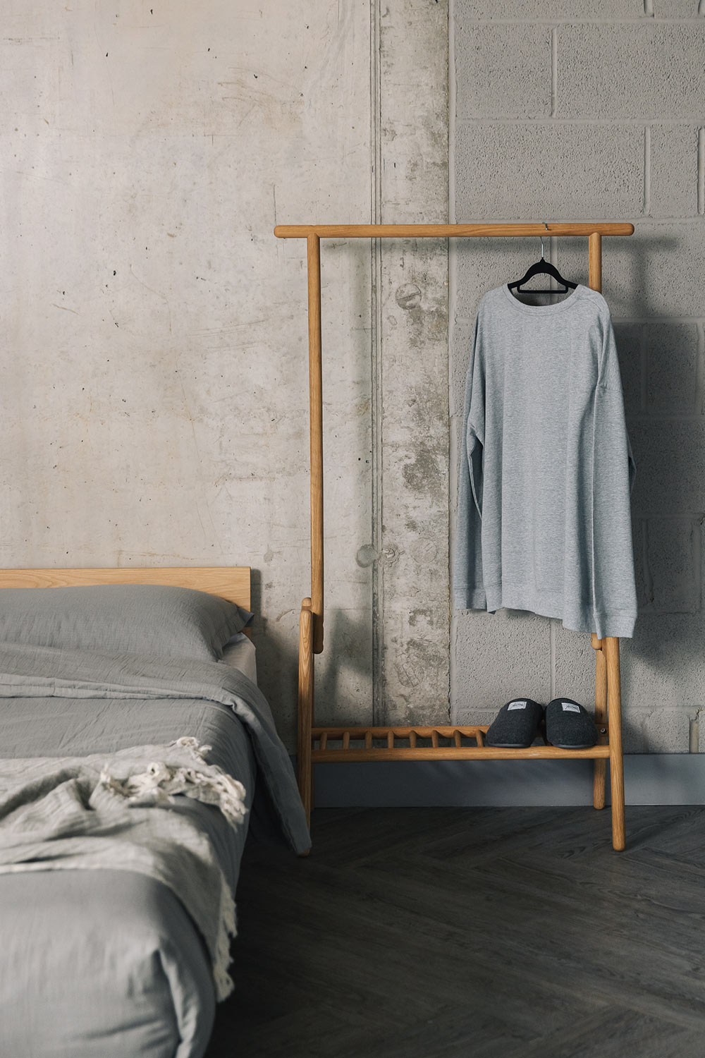 A modern and functional clothing rail with a mid-century twist. Made from solid American white oak, its light, minimal design lends itself well for use all around the home, and can easily be manoeuvred from place to place.