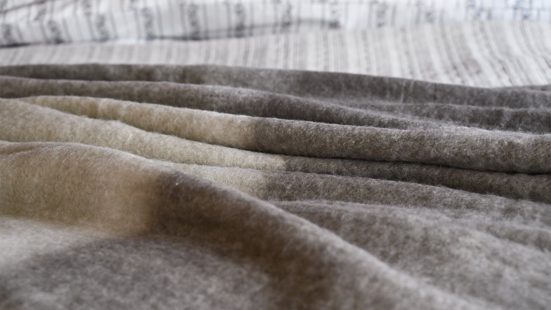 Super soft and cosy, this chunky wool blend throw brings a homely feel to any space. Featuring varying shades of mid-grey, pale warm grey and deeper greys across both sides of the throw. These colours feature a unique tone, pulling slightly purple in certain lights. These wool blend chunky throws are ideal as a throw over the sofa or chair, the perfect size for snuggling under on cooler evenings.