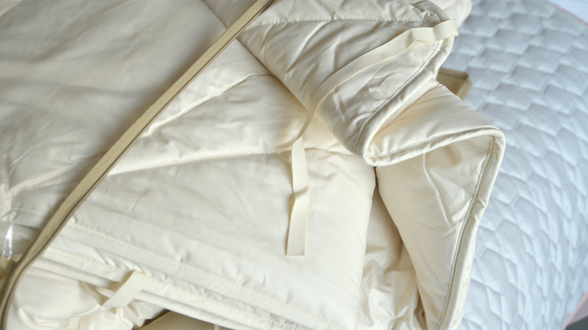 At approx. 8-9 tog, it is suitable for year-round use and features a ‘mummy’ style quilting pattern. Wider at the top and narrowing towards the feet, this quilting gives the duvet more drape and means it can better ‘envelop’ the sleeper, reducing draughts. Furthermore, this cotton and kapok filled duvet is equipped with cotton ties to the corners; it can be combined with another for additional warmth if required.