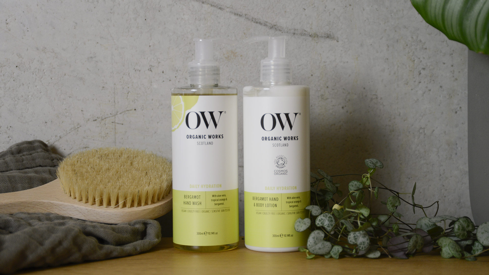 Organic toiletries from the Scottish clean beauty brand, Organic Works. This selection of vegan, cruelty-free skincare is formulated to work with sensitive skin, and each item is made from at least 98% natural ingredients.