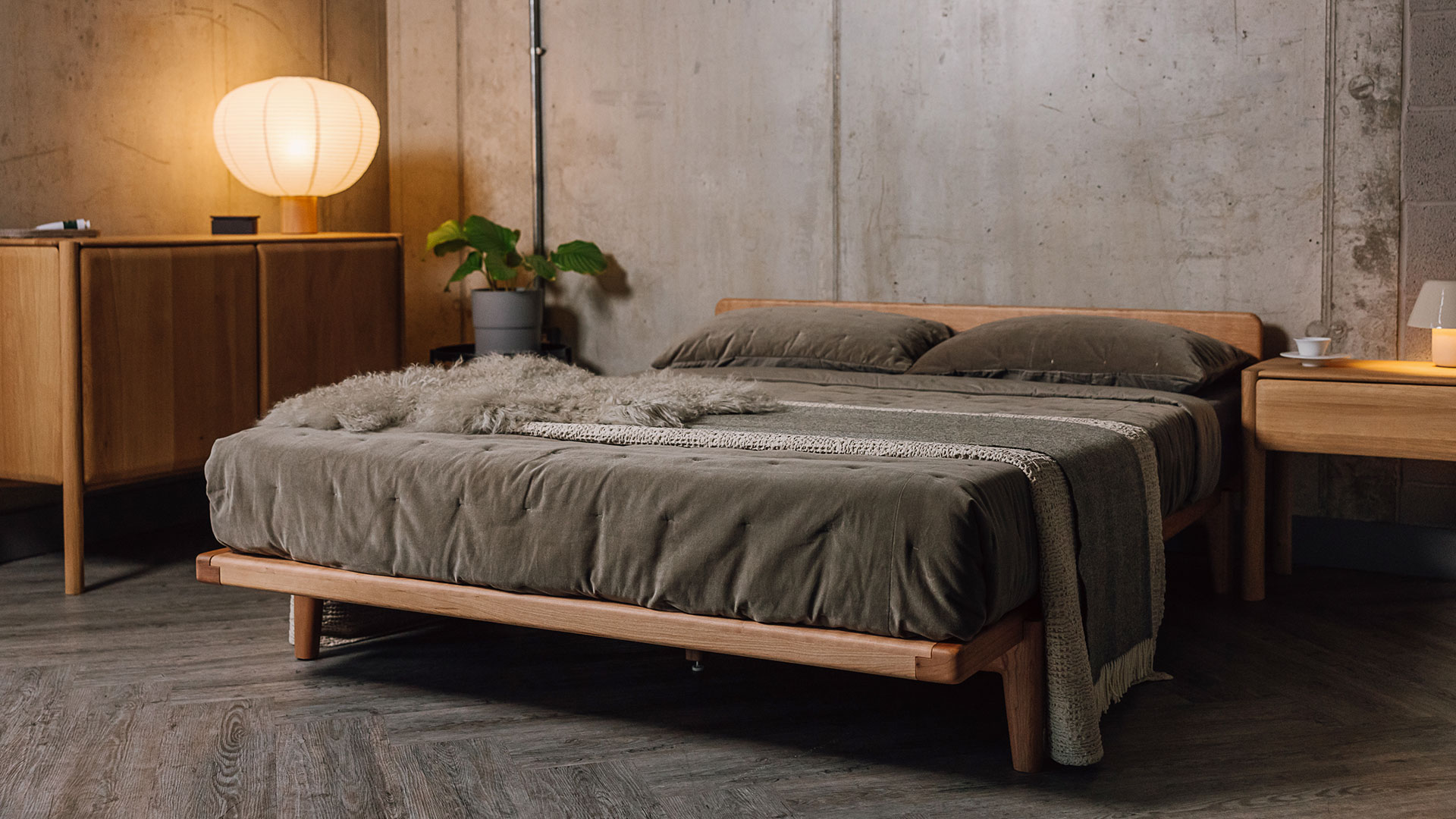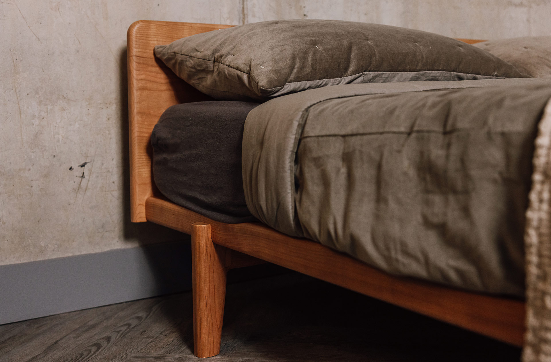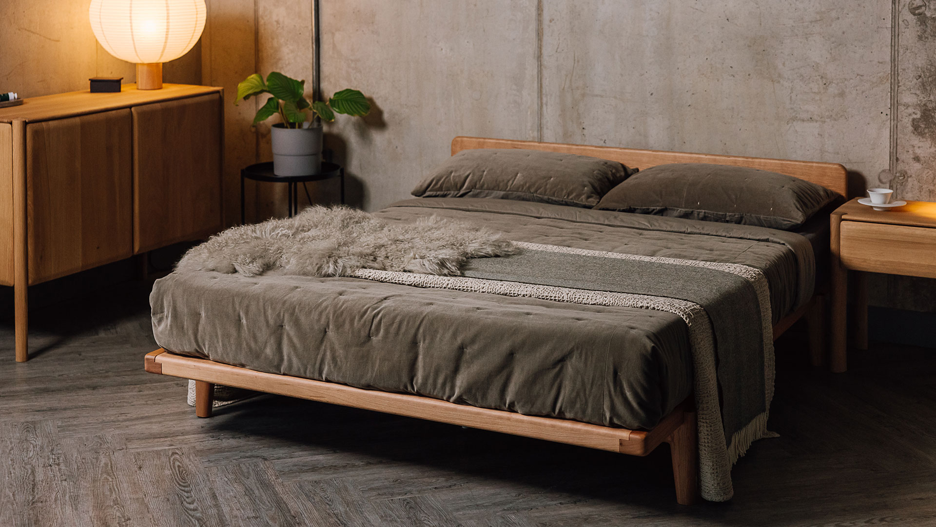 A meeting of worlds, the Osaka handmade bed combines ideals from minimal Japanese style and that classic tranquility of Scandinavian design. With a slightly larger footprint than that of our Kyoto bed, the Osaka is still a compact frame, but with a more modern look. The softly rounded legs and edges also bring a hint of mid-century modernity to the overall look.