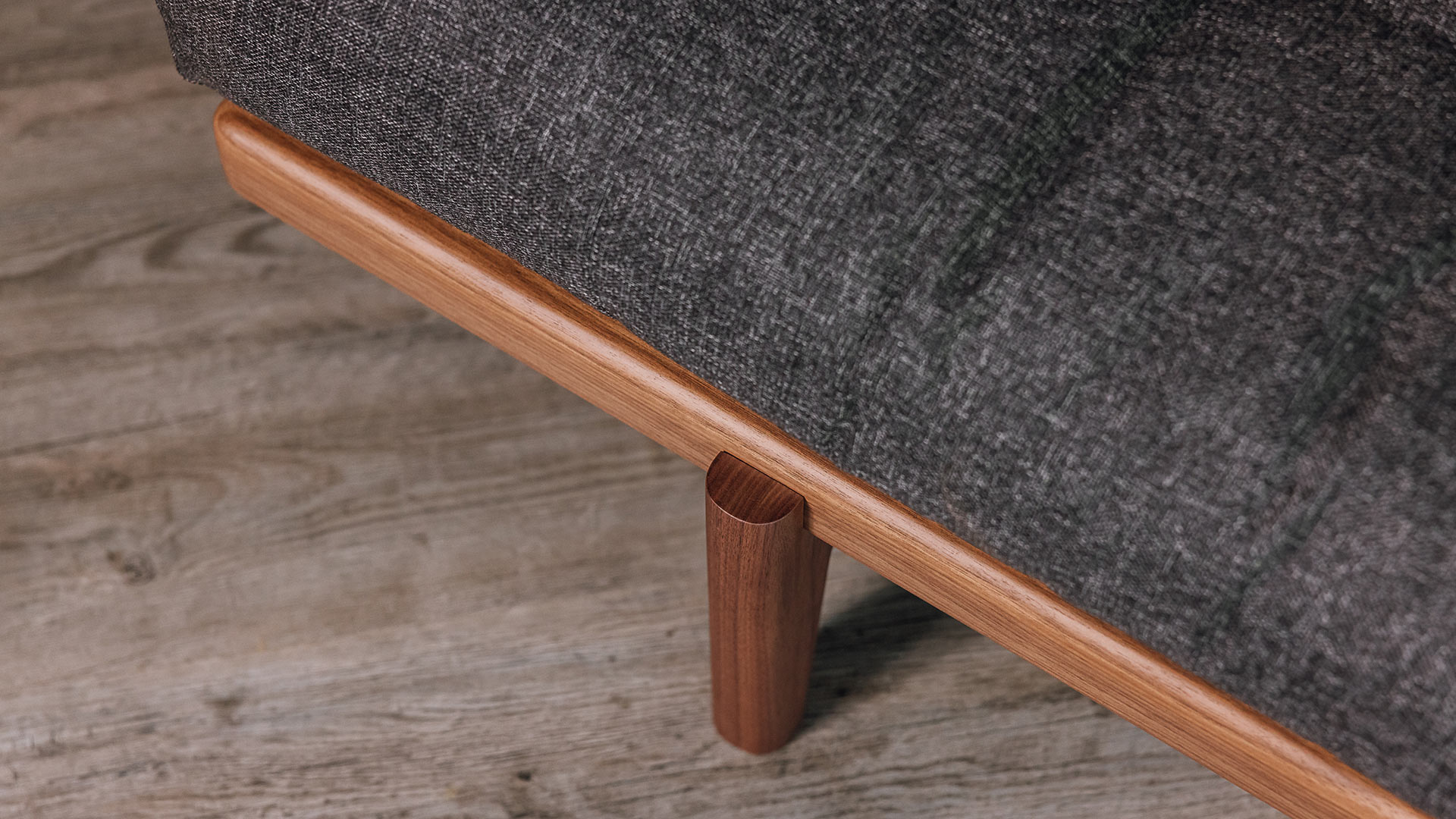 A meeting of worlds, the Osaka handmade day bed combines ideals from minimal Japanese style and that classic tranquility of Scandinavian design. With a slightly larger footprint than that of our Kyoto day bed, the Osaka is still a compact frame, but with a more modern look. The gently rounded legs and edges also bring a hint of softness to this mid-century style day bed. Ideal for spare rooms, large window spaces or even in the lounge.