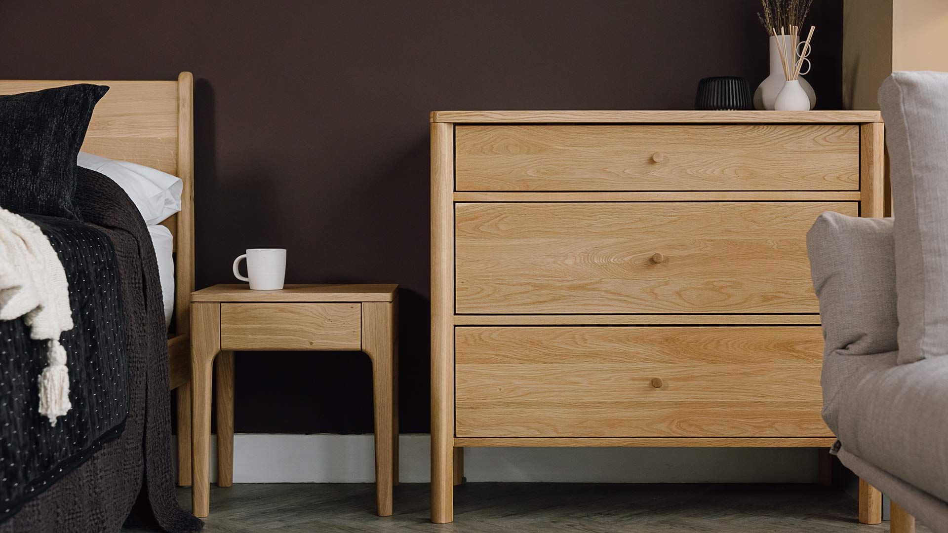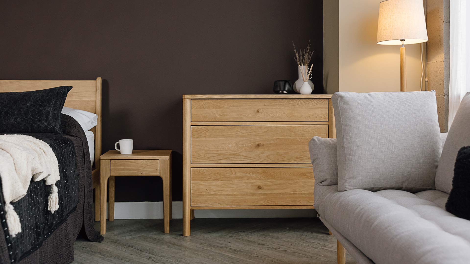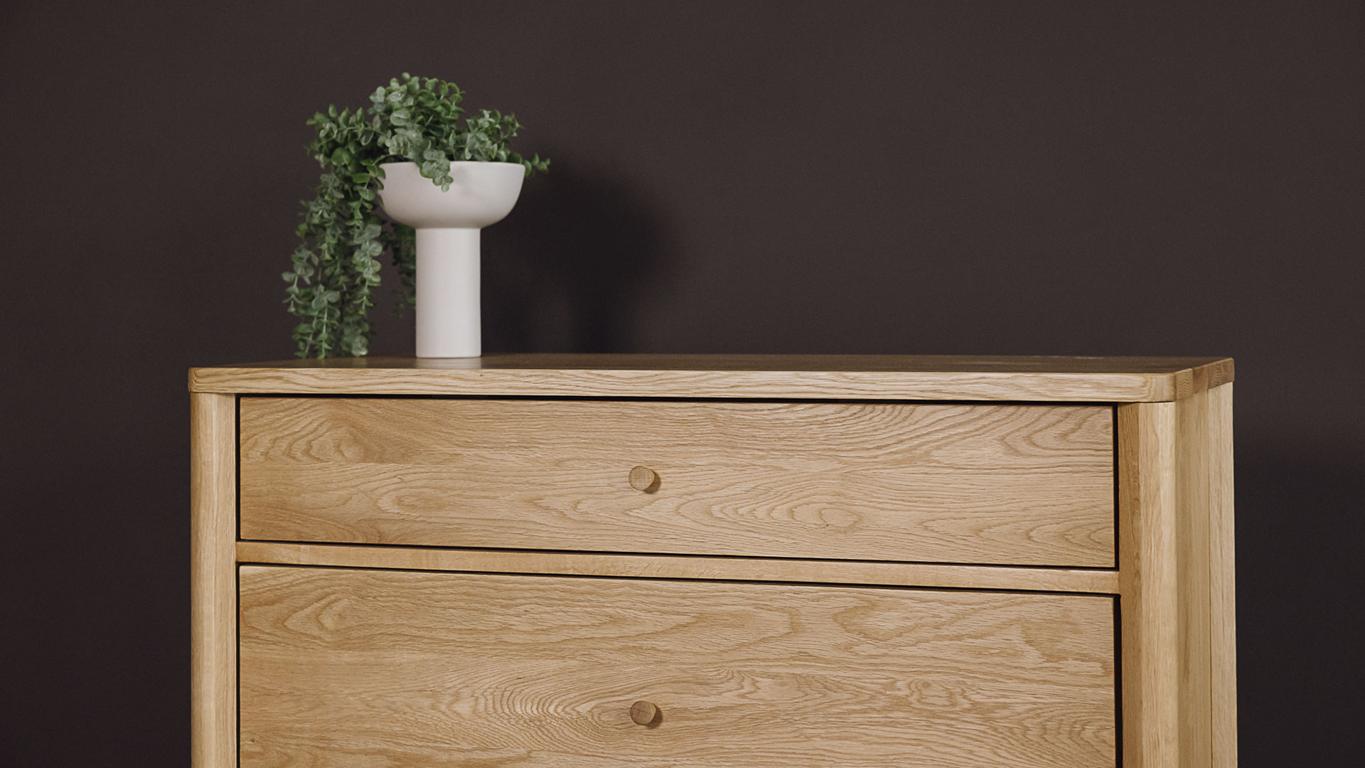 If ordering this Oslo Chest to ‘match’ a Natural Bed Company bed: this furniture is made from American oak, and has a different finish to our own furniture. The oil leaves the oak with a soft-matte finish. It also has a slightly warmer tone when compared to the natural-look lacquer we use on our beds.