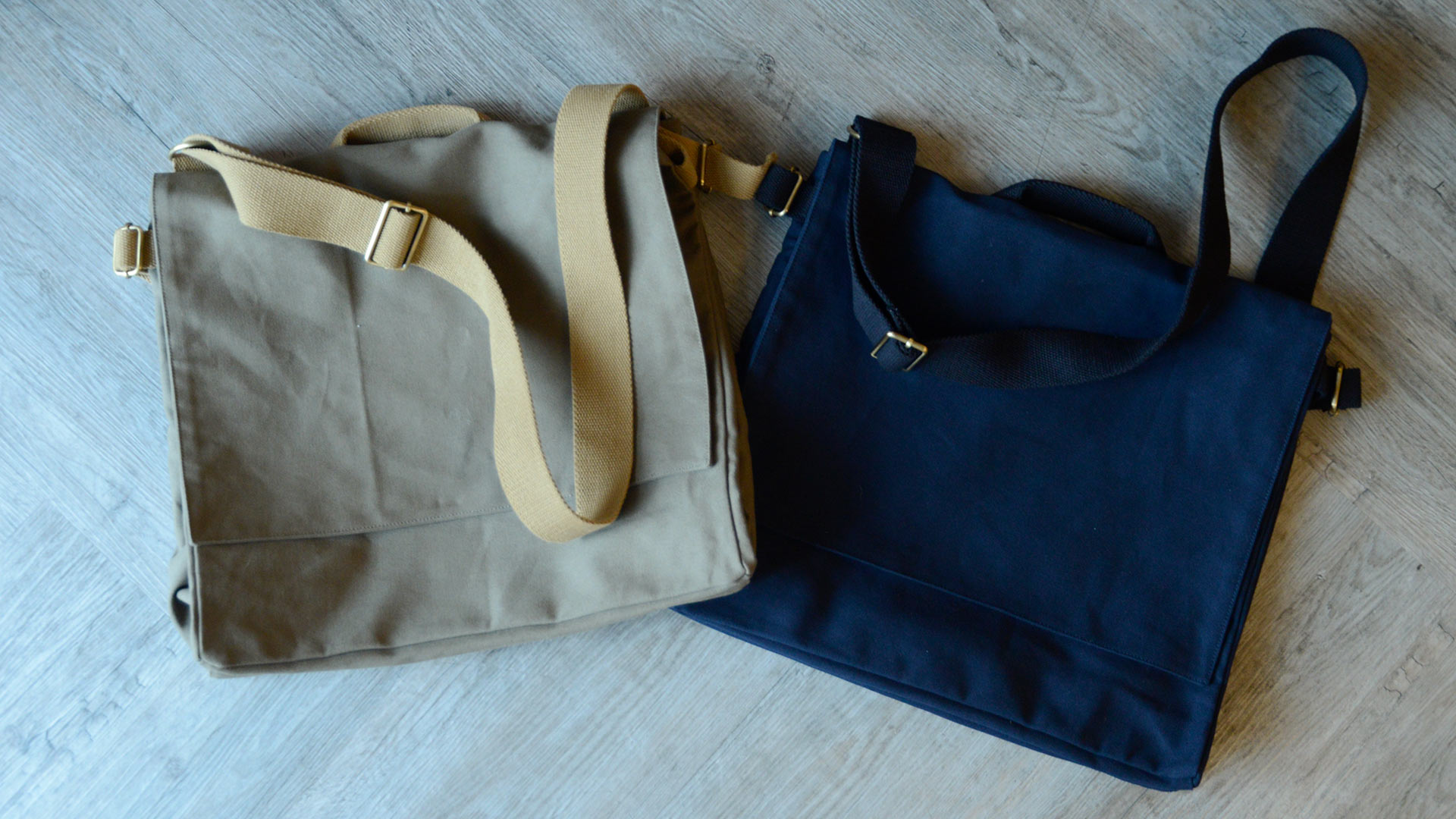 These oversized organic cotton satchel bags even have a specially-made strap to keep water bottles upright inside.