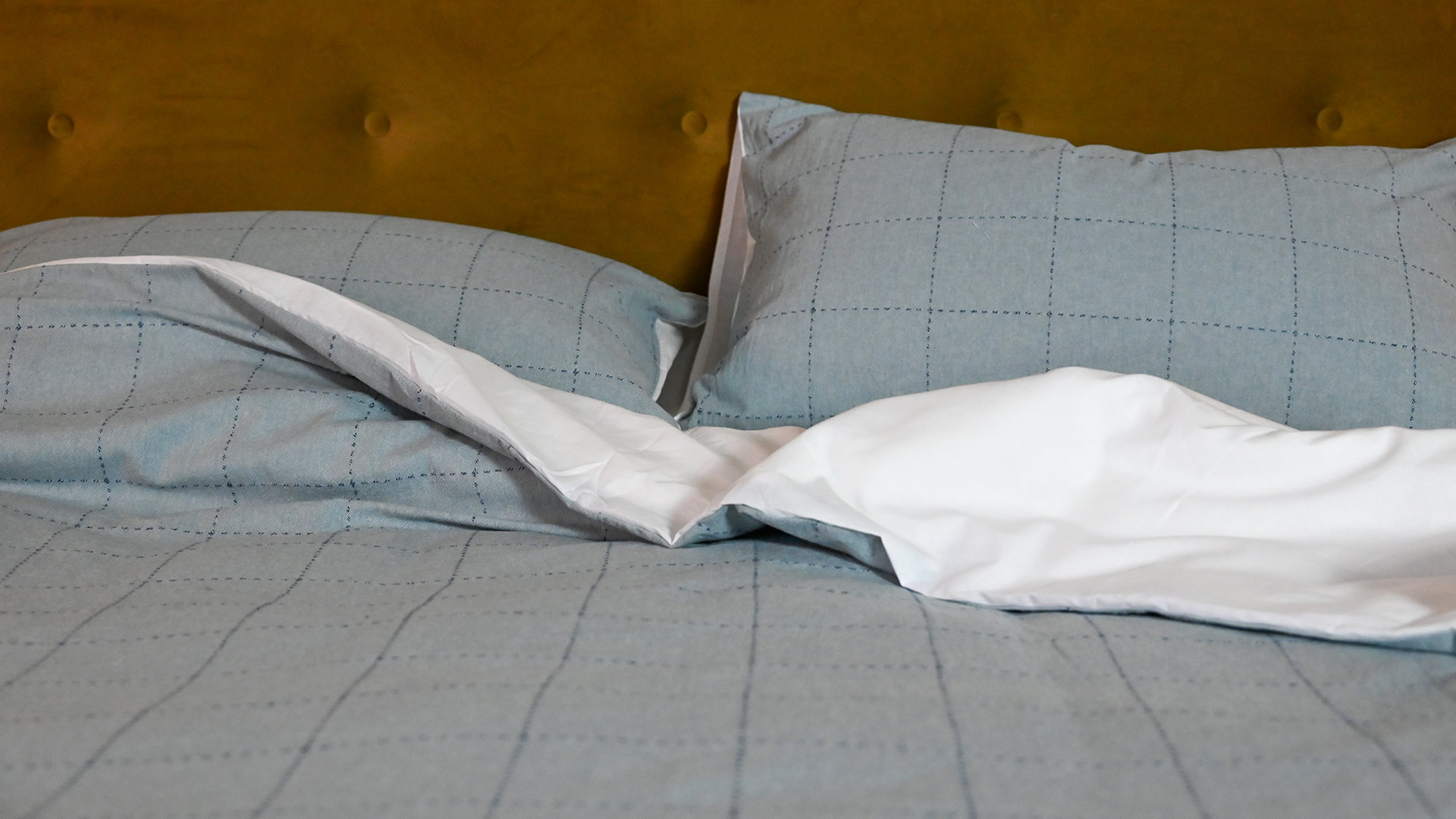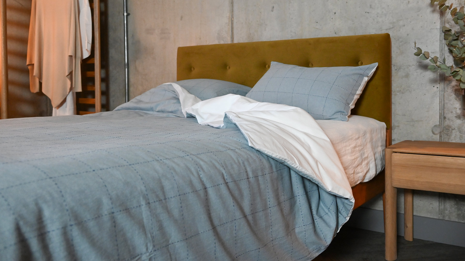 Each pale blue duvet set includes the duvet cover plus two housewife pillowcases, which have an envelope closure. Bringing a relaxed, cosy look to any bedroom.