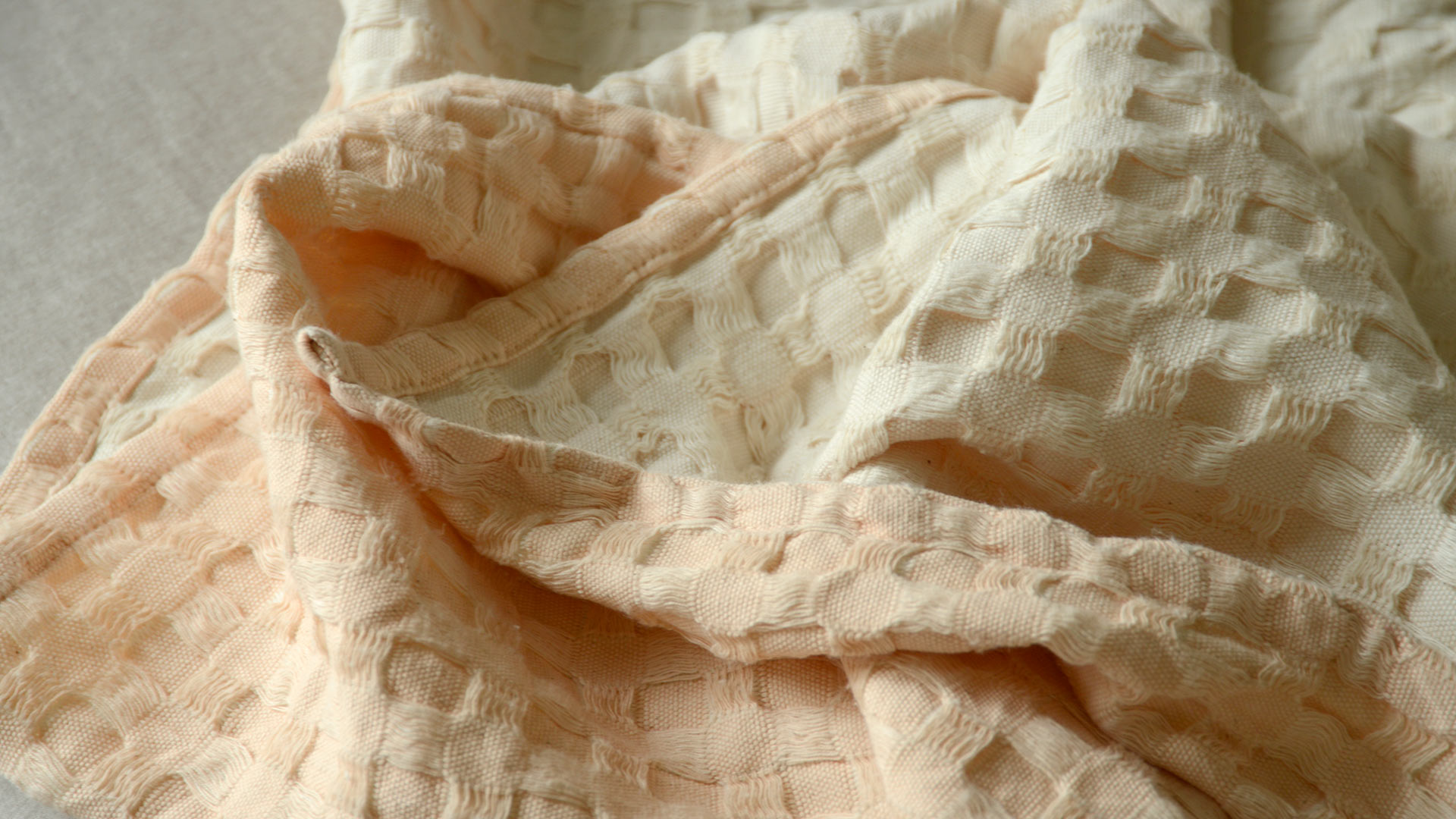 A soft cotton throw with a deep waffle texture – it can be used as a blanket or wrap. It also makes for a stylish addition to any home, and is made of 100% cotton in soft peach and cream.
