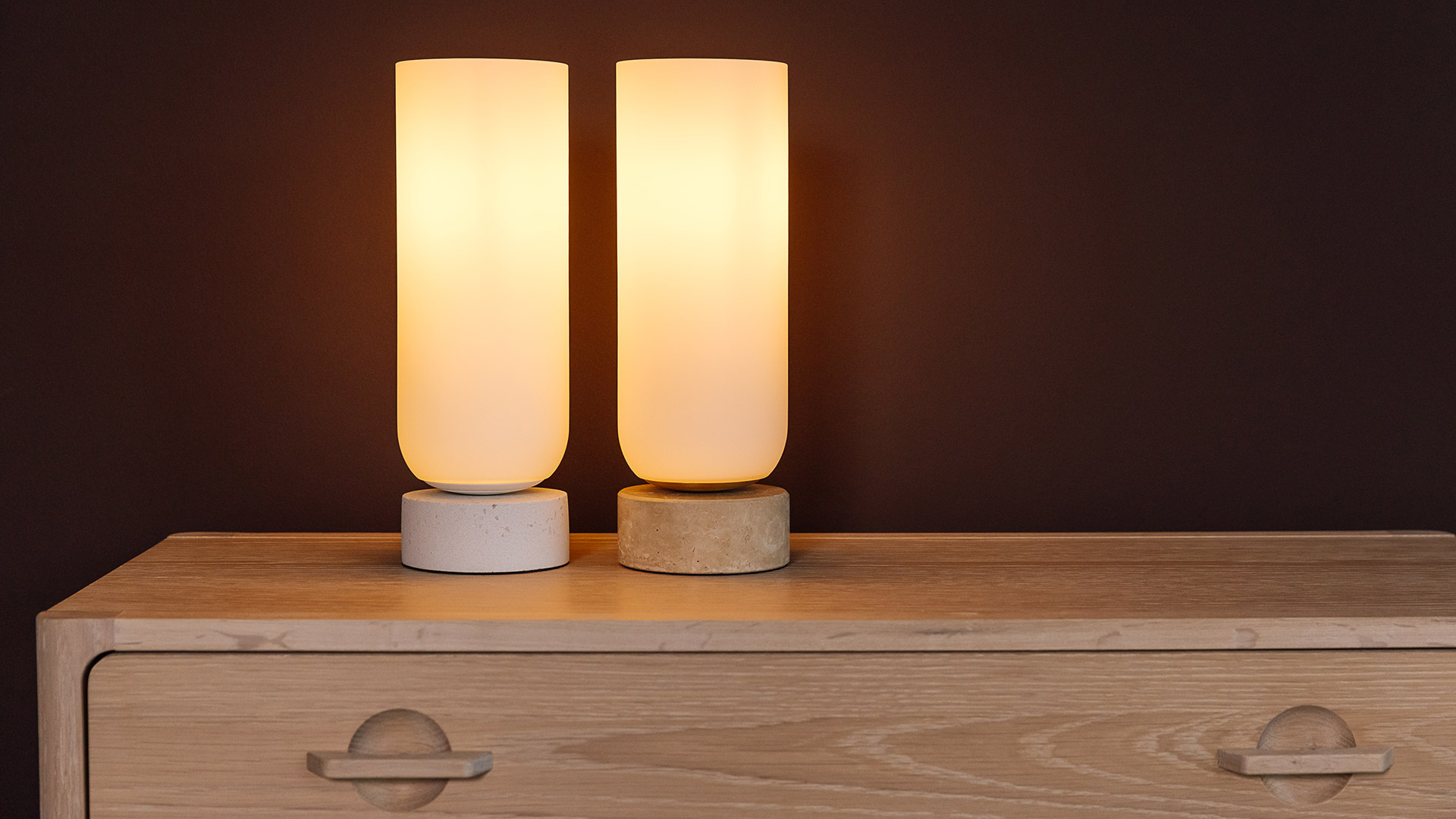 A beautiful lamp with a stone base and tall opal glass shade. Available in two colour options – choose from either a sandy travertine shade, or pale white . Both colours come with the same opal glass shade which provides an even glow. The perfect stone table lamp for a modern room design, or a classic addition to a living room or lounge.