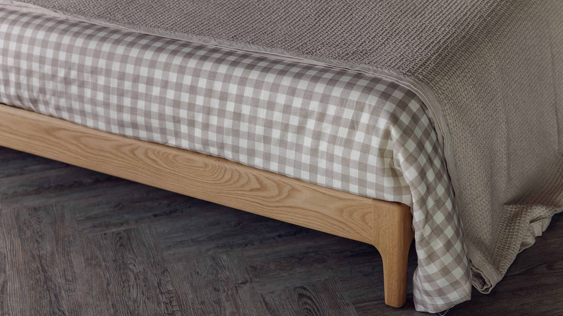 The Pimlico handmade bed is a contemporary take on a classic mid-century style. The Pimlico is a variation on the Camden – a beautiful, handmade, solid wood bed with shaped legs and soft curves to the edges. The Pimlico is lower than the Camden with shorter, slightly less tapered legs and a lower headboard panel, it’s therefore perfect for attic rooms and bedrooms with a lower ceiling. Like the Camden the different directions of the grain on the legs and headboard make for an interesting detail.