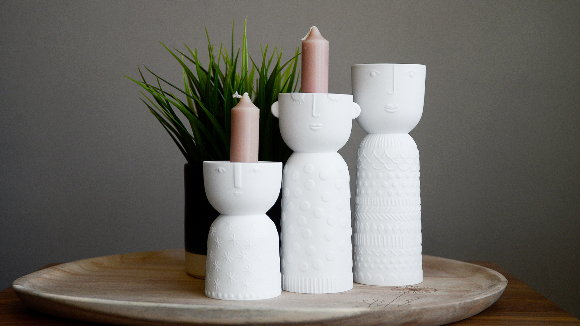 A family of three sisters. A wonderful statement piece on their own, or when displayed as a family, each of these porcelain candleholders feature their own personality. With calm and serene expressions, they’re sure to bring joy and light to your home. Choose your size from the below before adding to the basket.