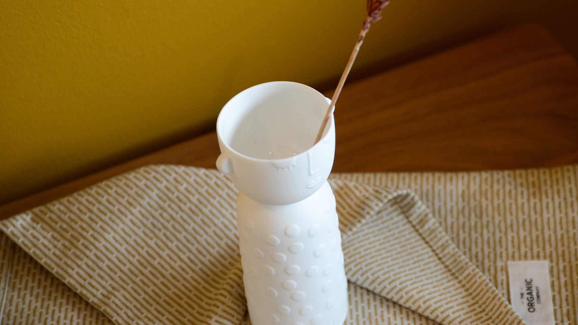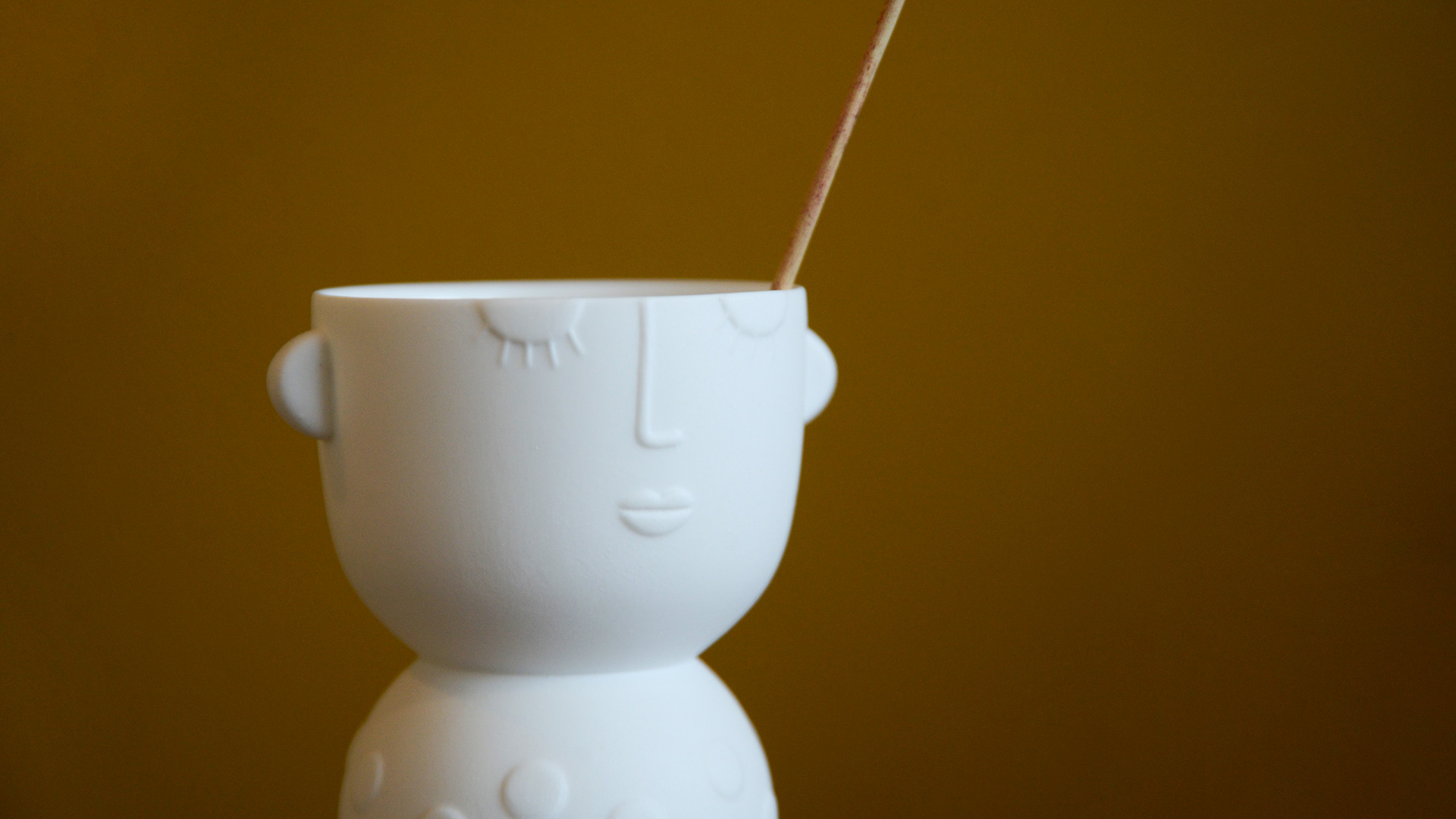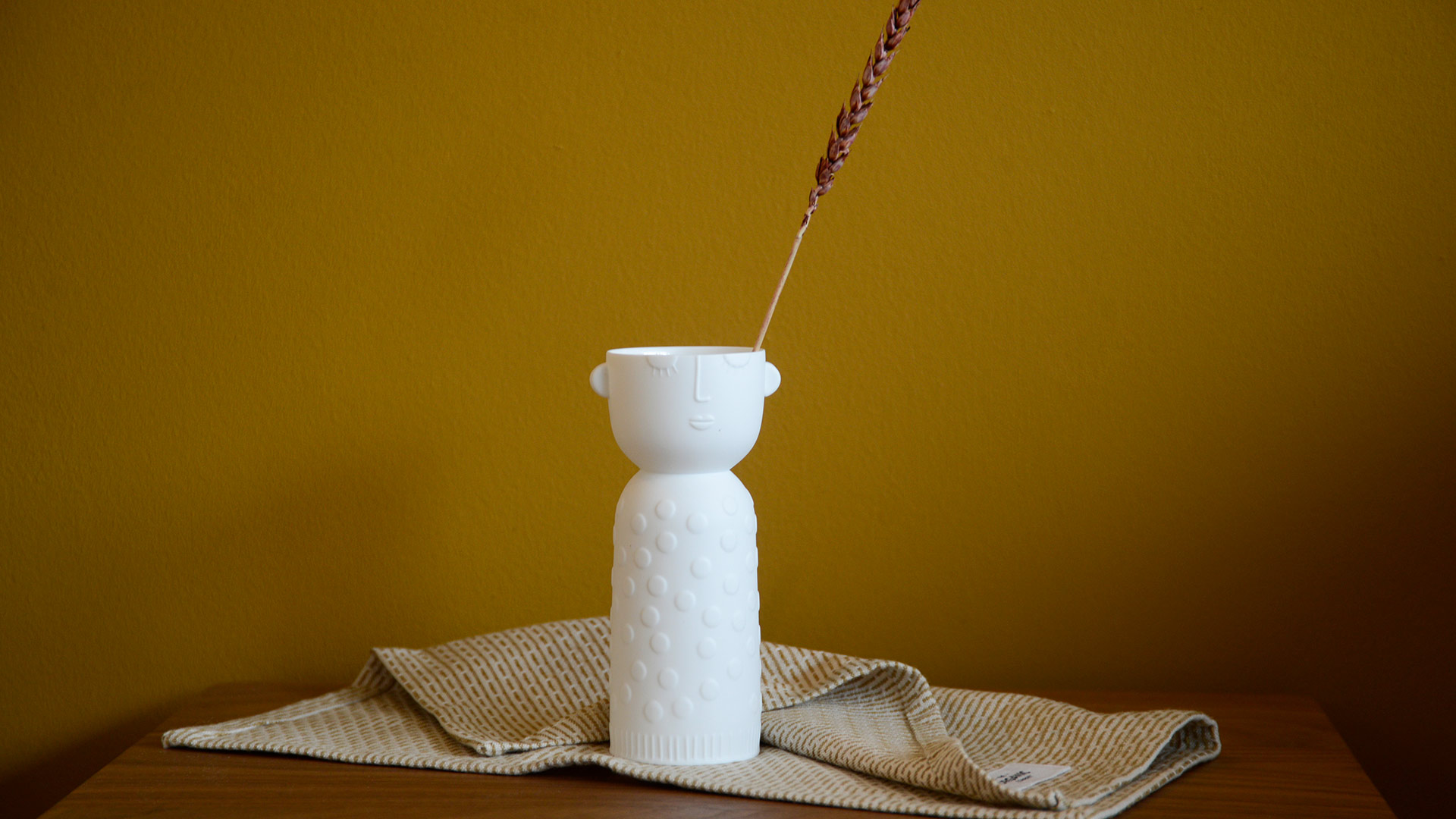 A perfectly formed little vase, ideal for adding a bit of personality to a space. With a calm and serene expressions, she’s sure to bring joy and light to your home. Made from delicate, tactile porcelain – ideal for a miniature bunch of flowers or some dried fronds.