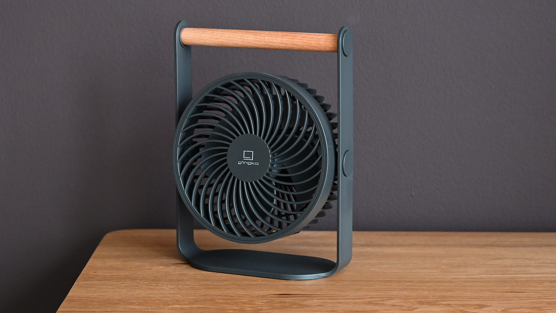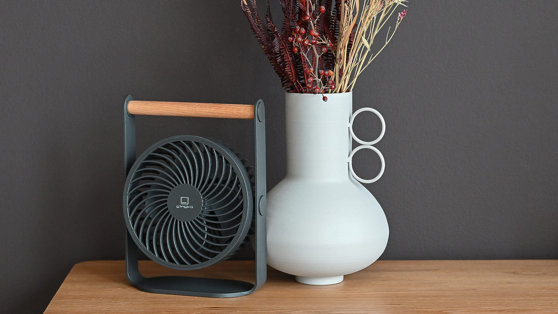 The ideal summer desk accessory, this portable modern desk fan comes complete with base and handle for easy transportation. Rechargeable and portable, you can place the fan wherever you need a cool breeze. Available in a contemporary deep grey shade, this is the perfect partner for your desk space. Boasting a sleek, compact design, this modern desk fan also has a flat, ultra-thin base. With a handle made from sustainable wood for carrying of hanging.
