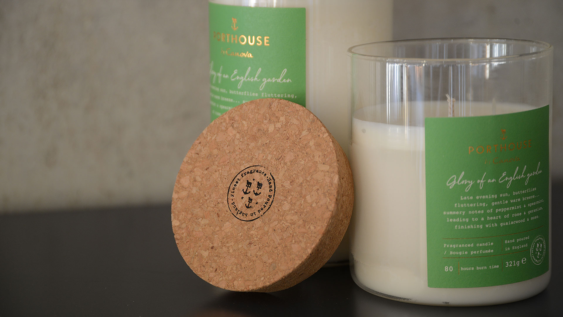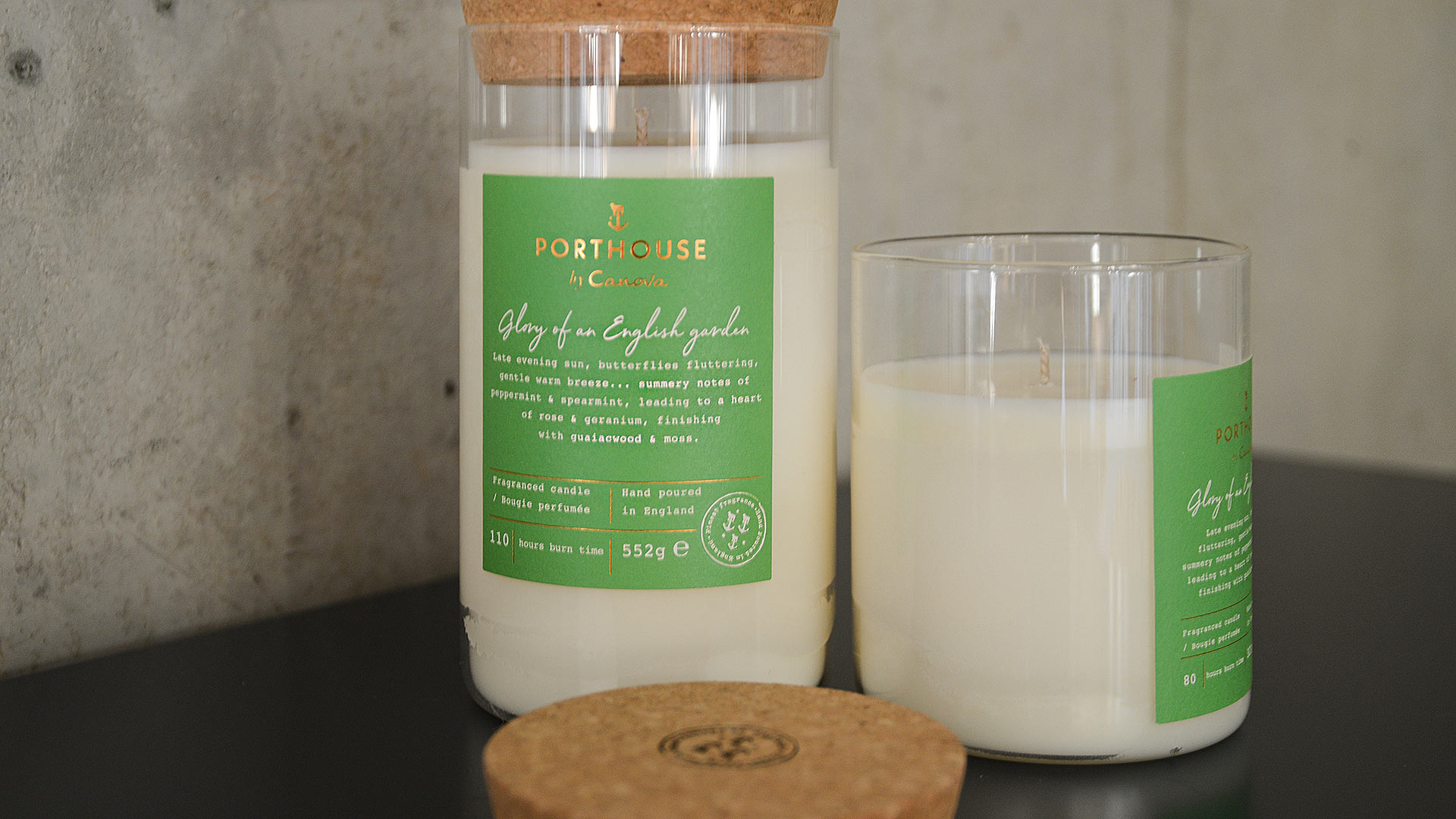 Porthouse scented candles are modern and fresh, available in distinctive and entrancing fragrances. Hand-poured candles in reusable glass jars with cork lids.