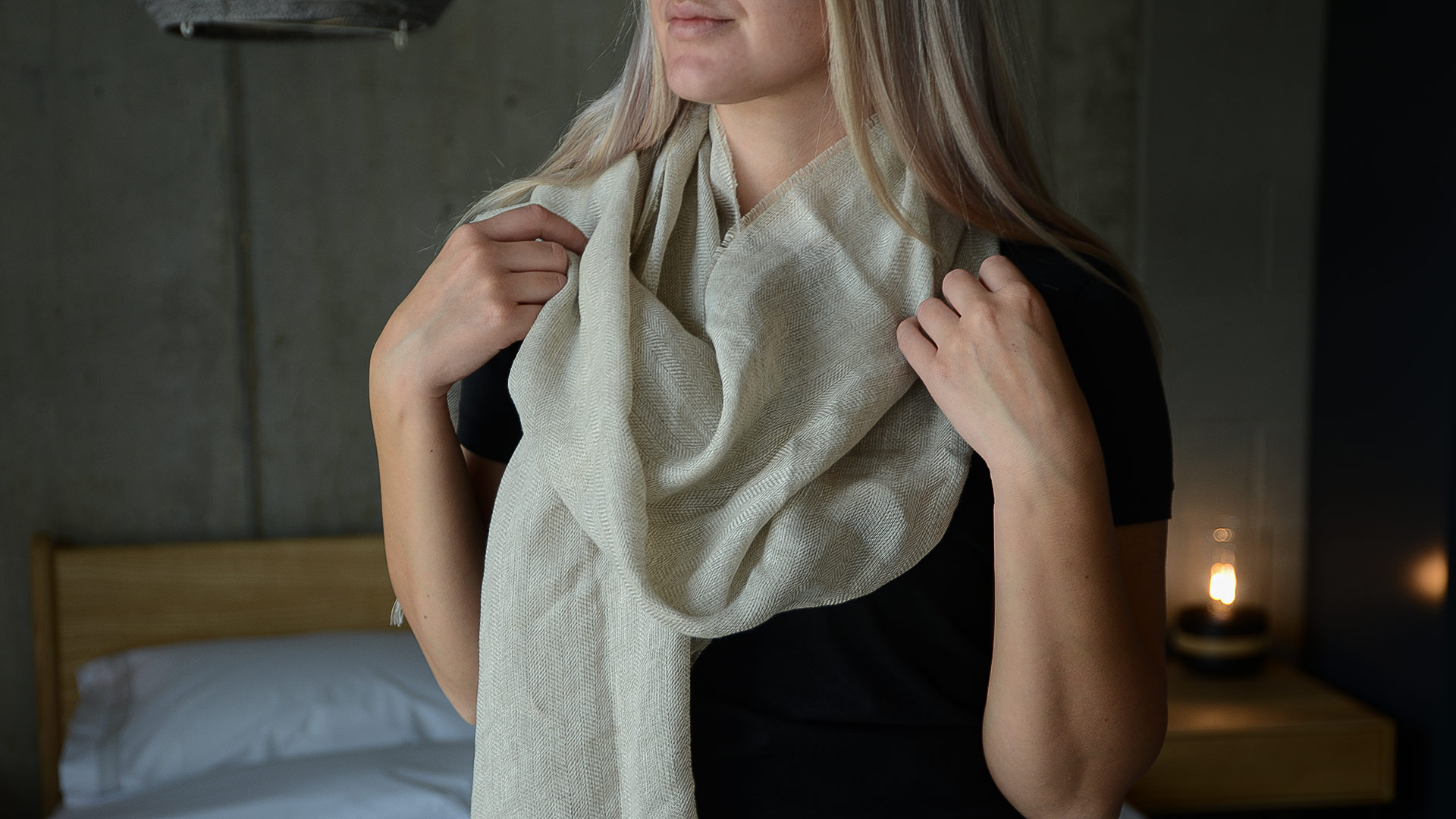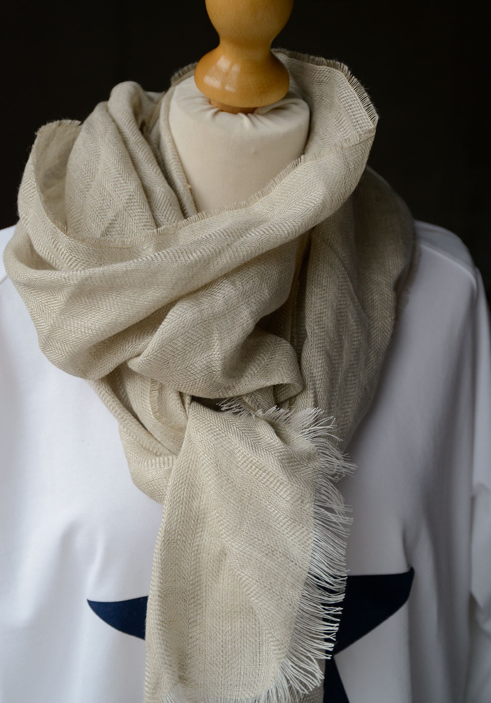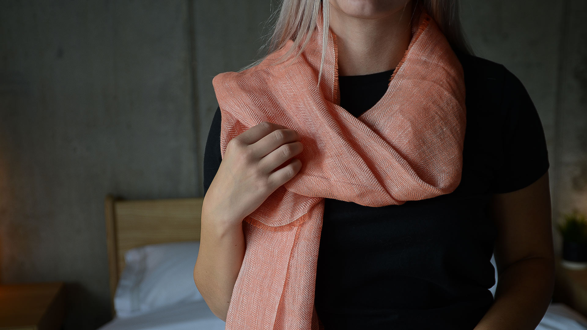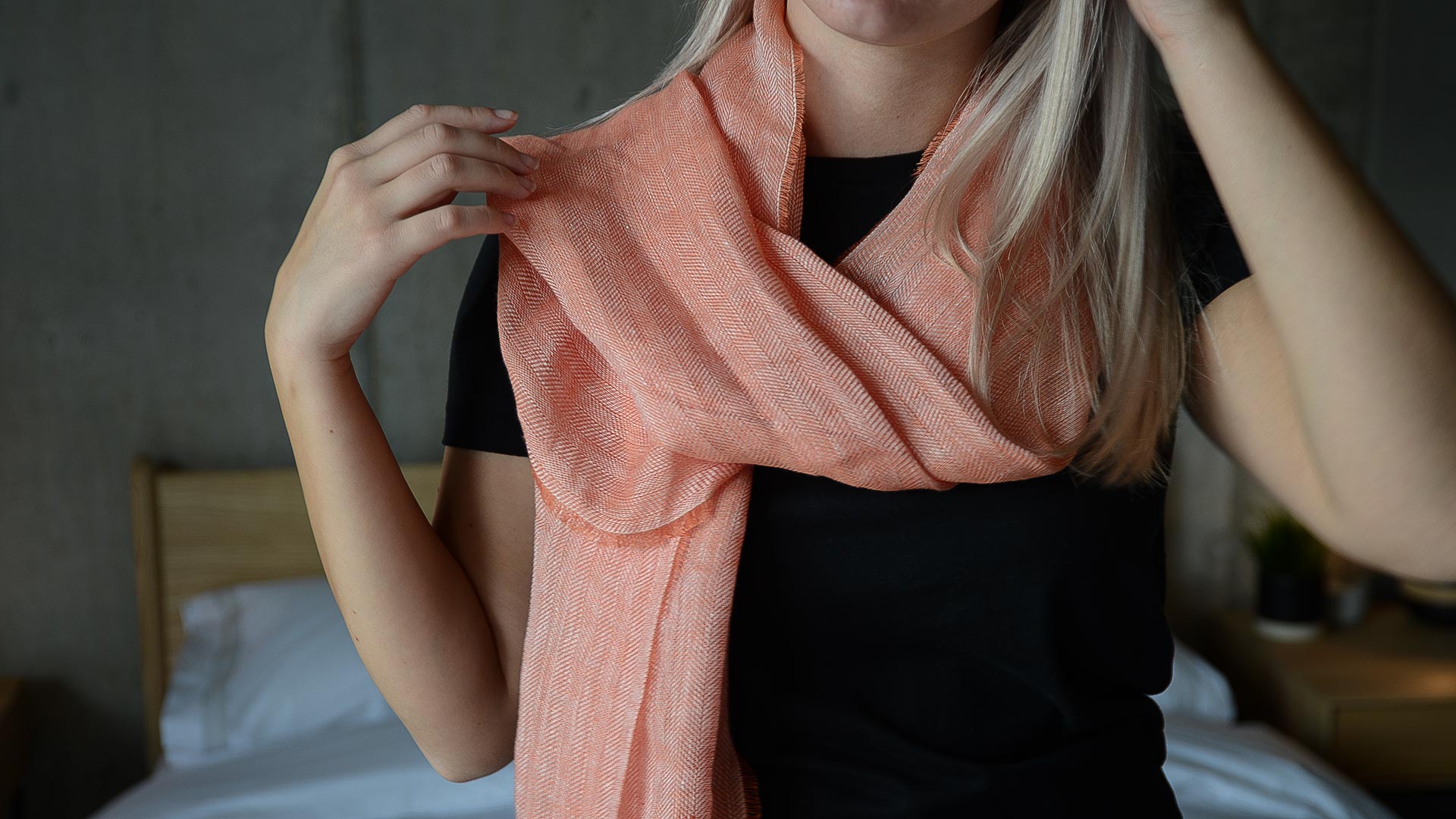 Light and soft, pure linen scarves in two colour options: – Oatmeal – a muted ecru shade – Nectarine – a soft, slightly cooler orange tone