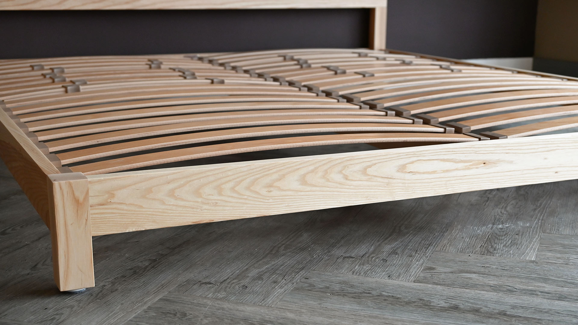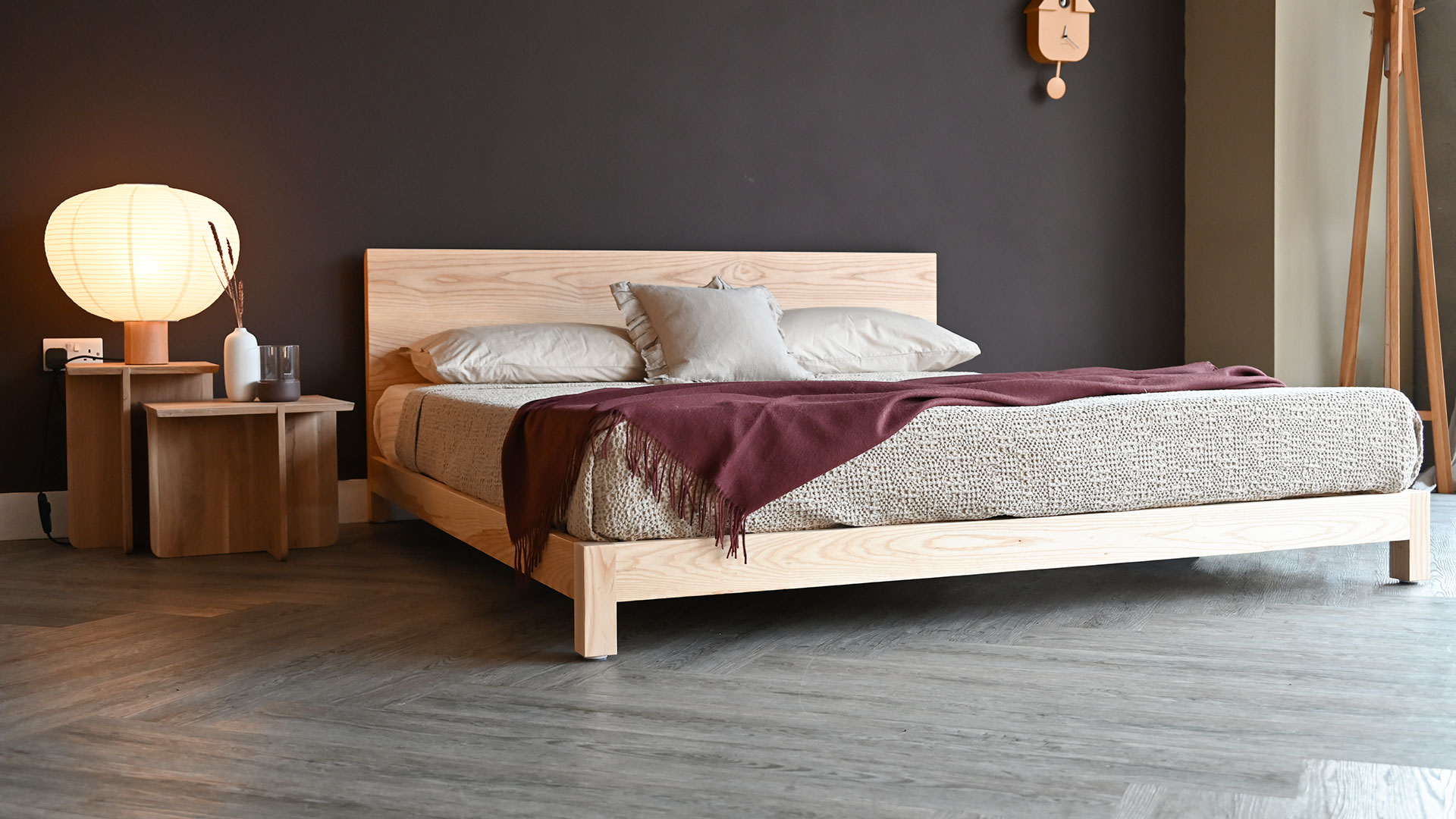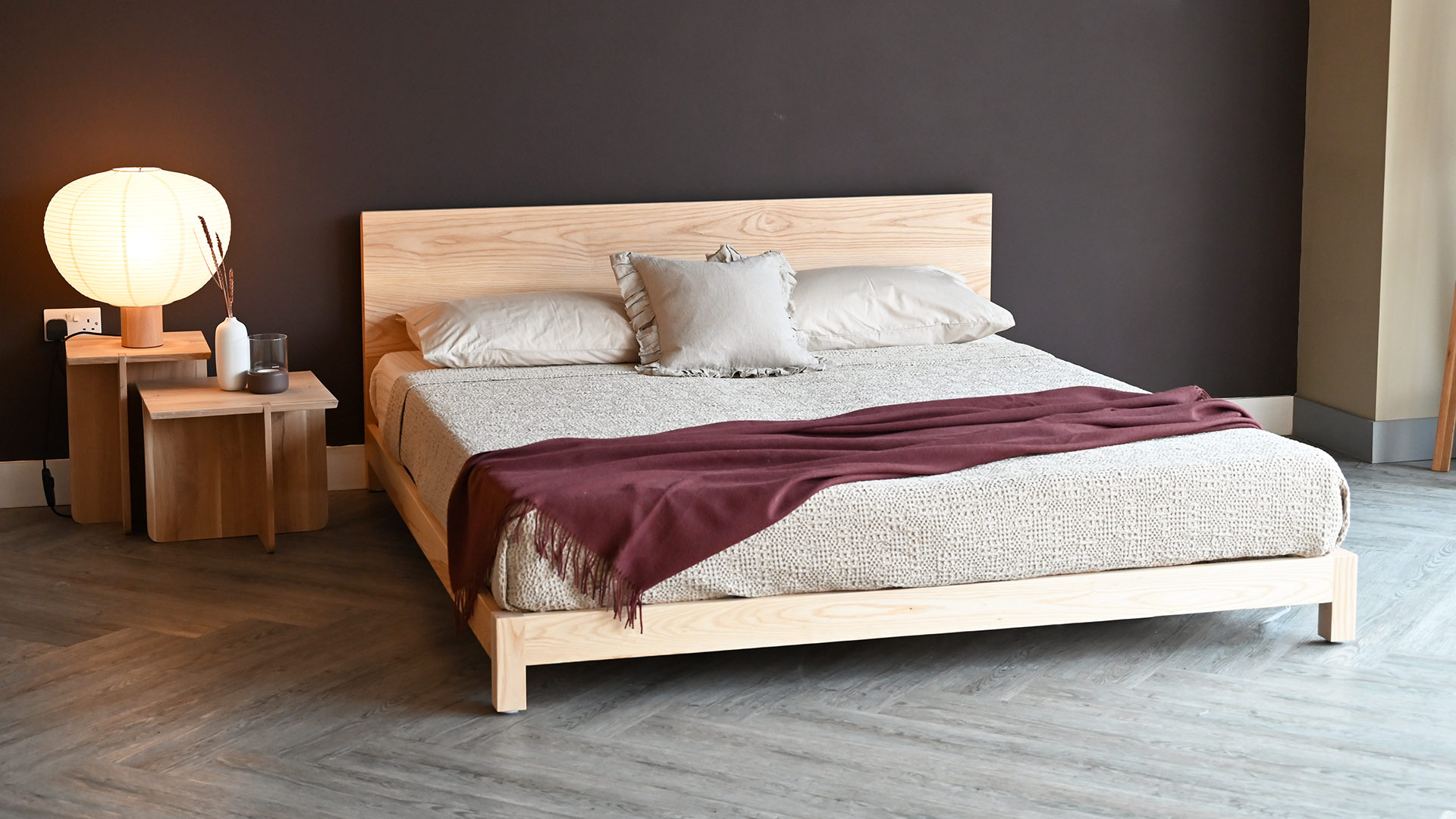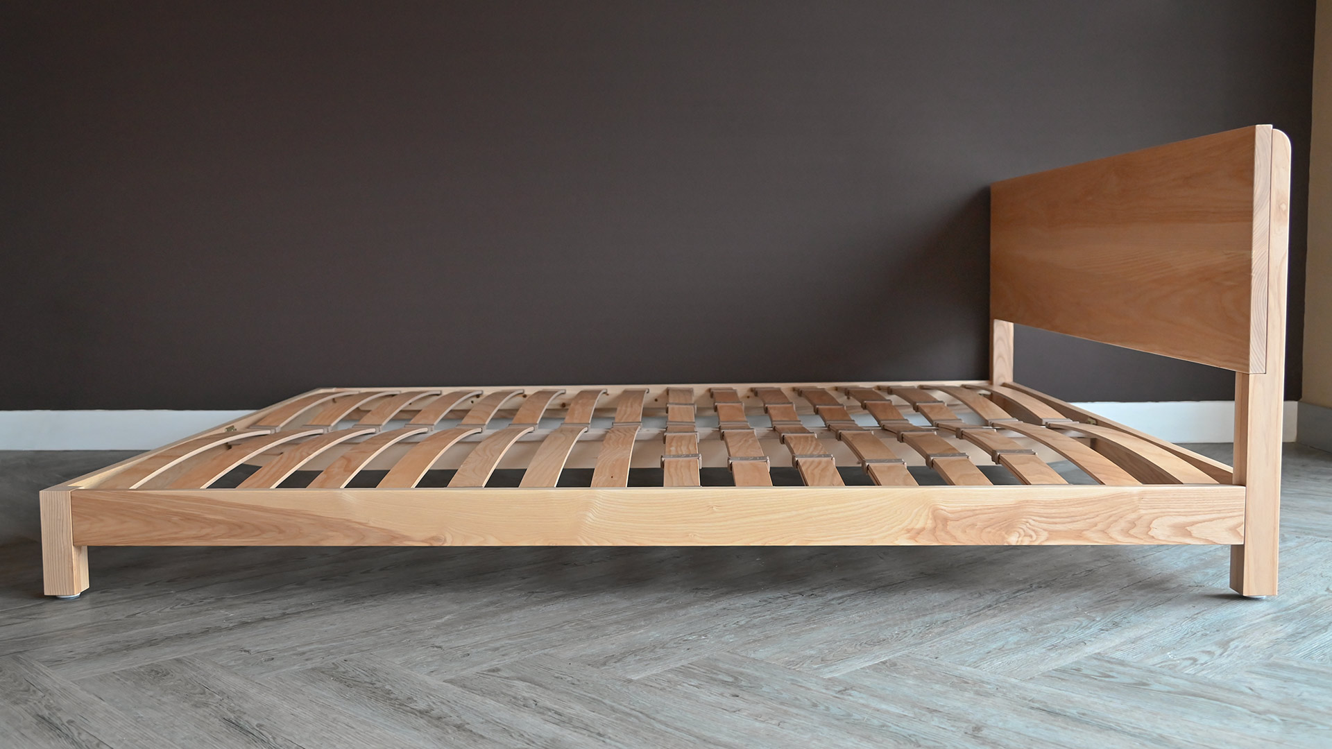 If you would like to purchase this quick ship ash bed brand new, in one of our other timbers or in a different size, check out the original Sonora product page. However, please note that all new orders are subject to our standard lead time of approx. 8 weeks. Feel free to contact us for up to date information on lead times.