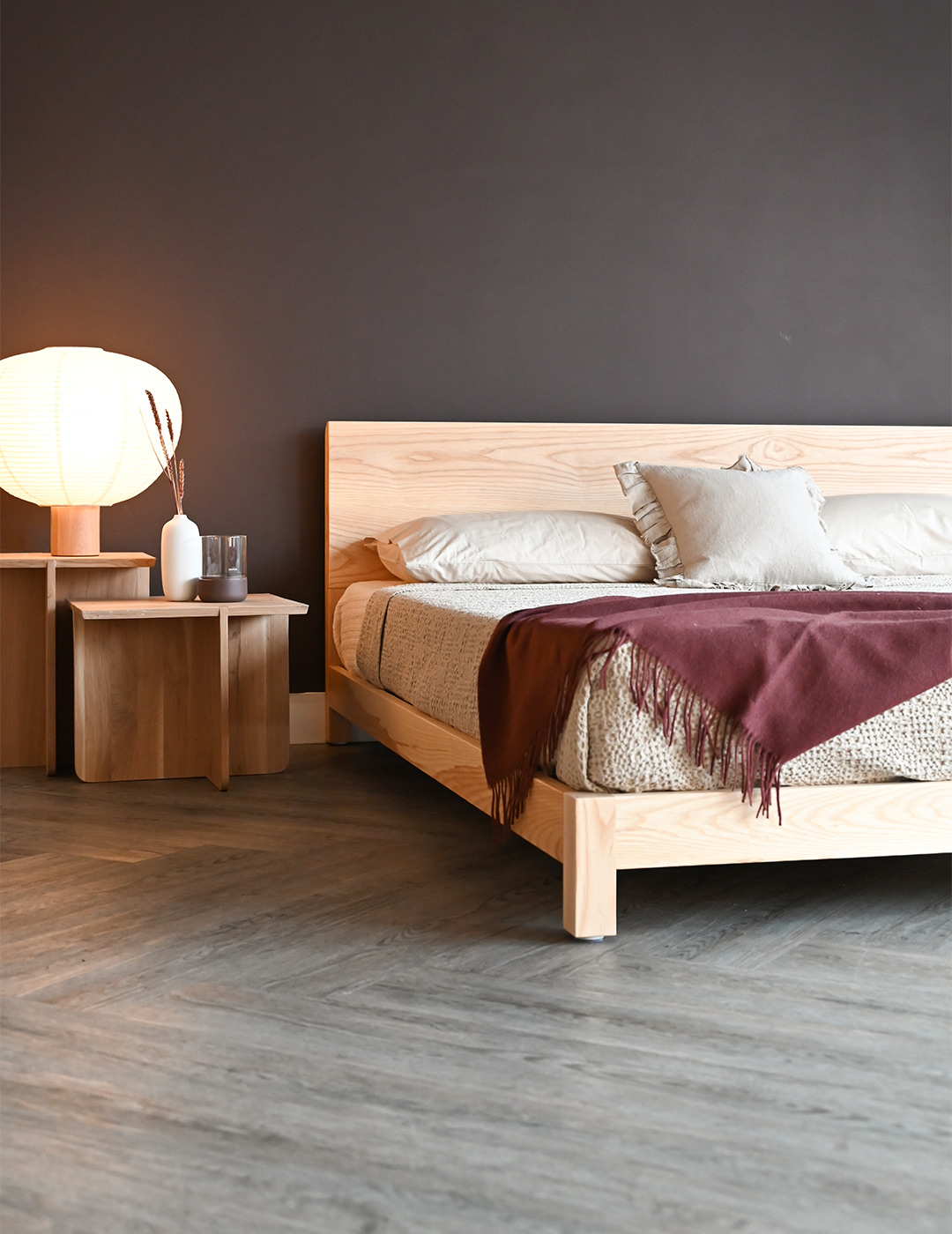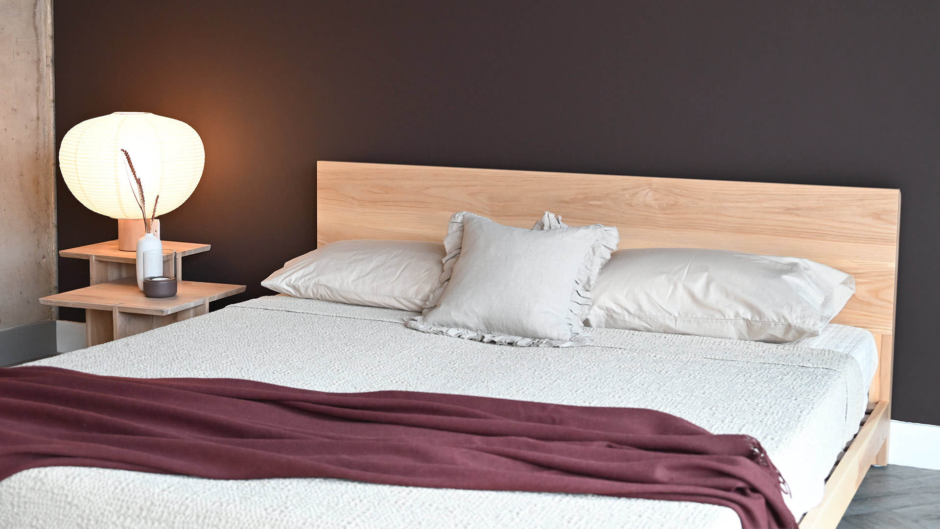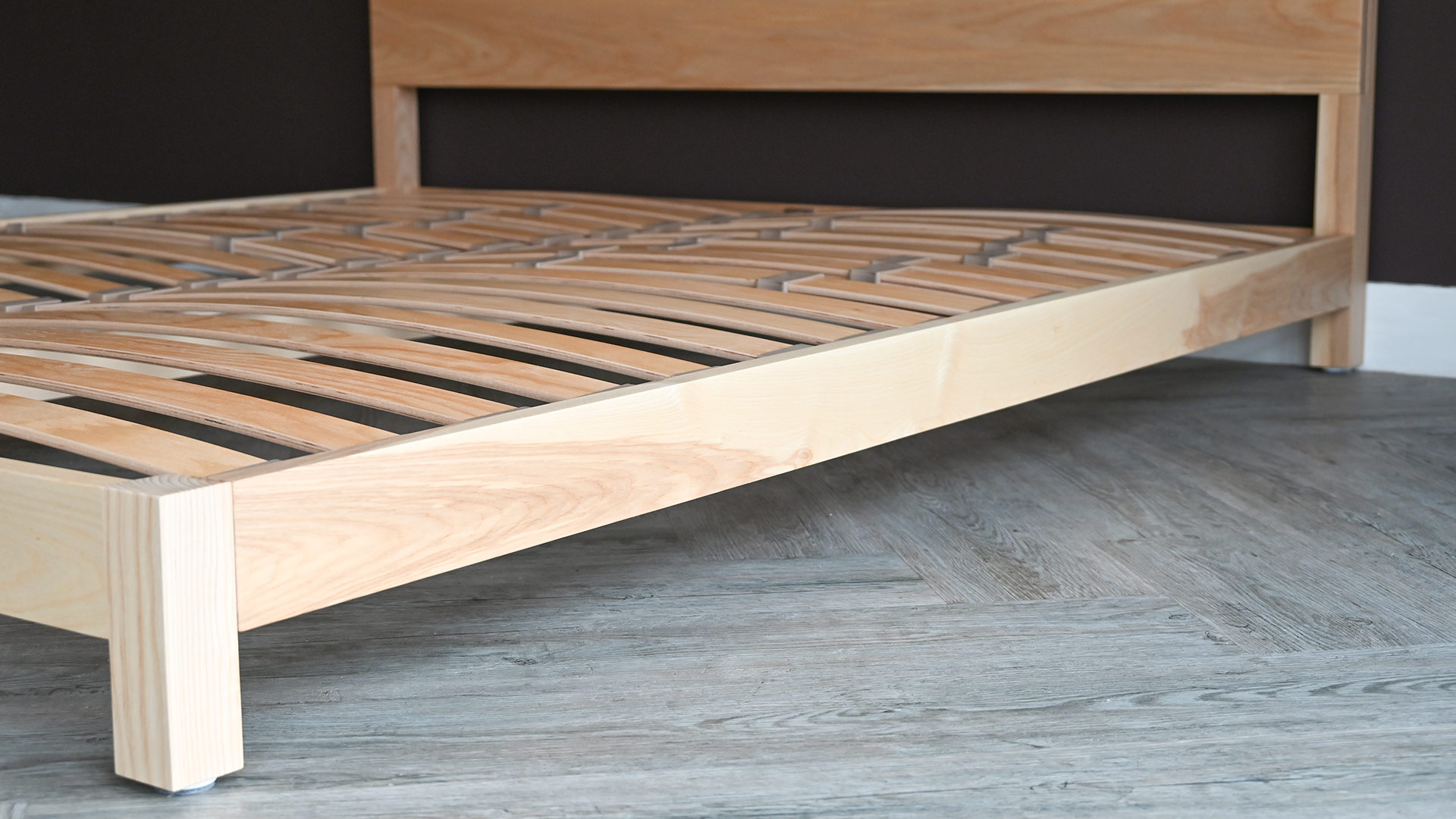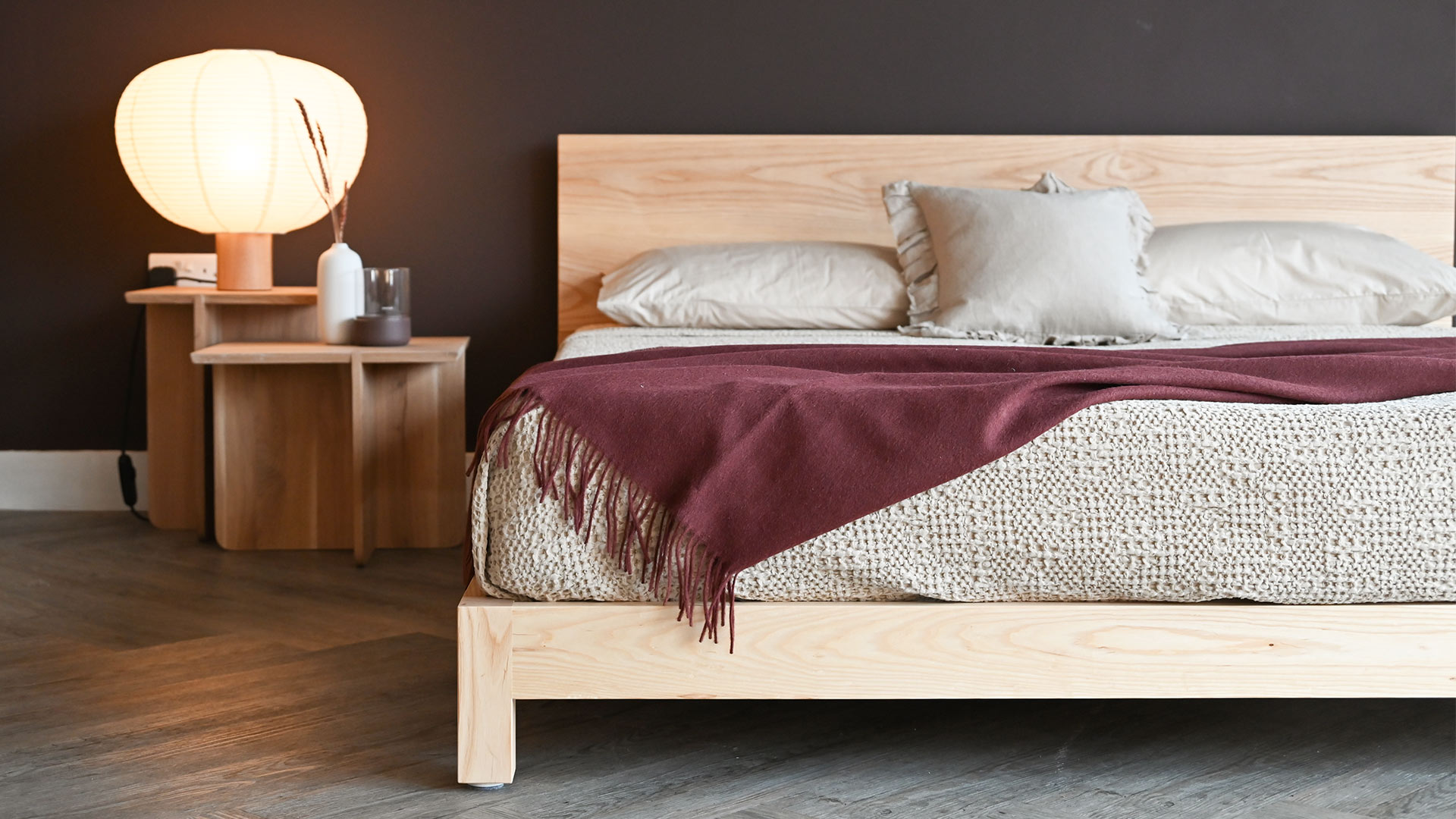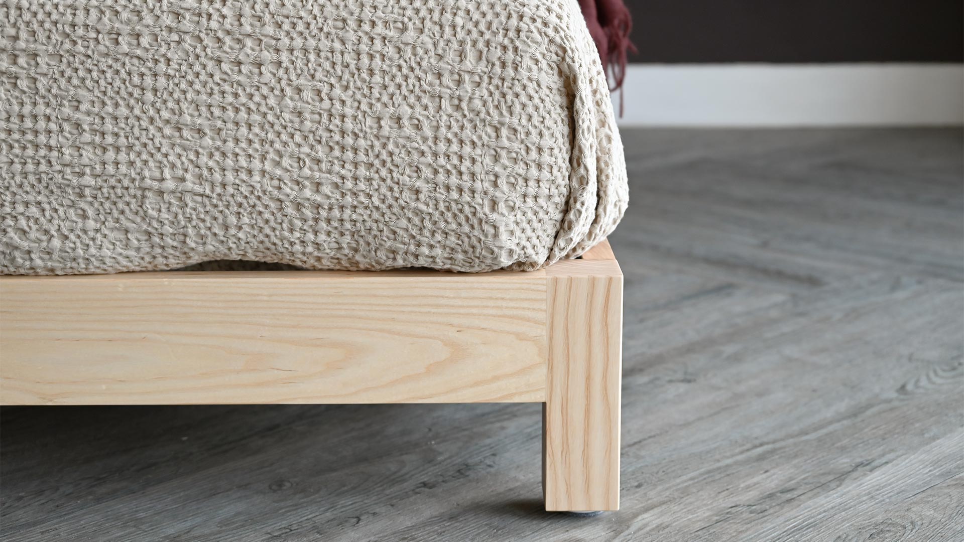 If you would like to purchase this quick ship ash bed brand new, in one of our other timbers or in a different size, check out the original Sonora product page. However, please note that all new orders are subject to our standard lead time of approx. 8 weeks. Feel free to contact us for up to date information on lead times.