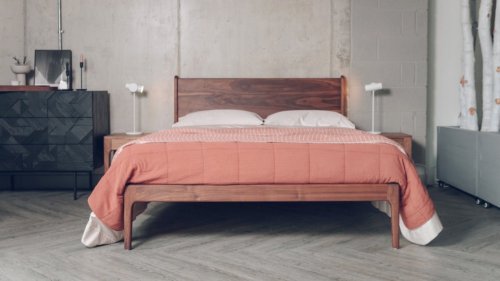 This is a quick ship bed ready for despatch in 1-2 weeks. The Camden is available here in solid walnut. But, if you are interested in purchasing this handmade bed in one of our other timbers, please check out the Camden Handmade Bed product page. Please note, all new orders are subject to our standard lead time. Feel free to contact us for up to date information on lead times.