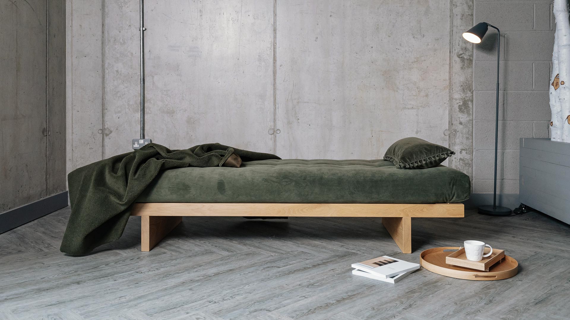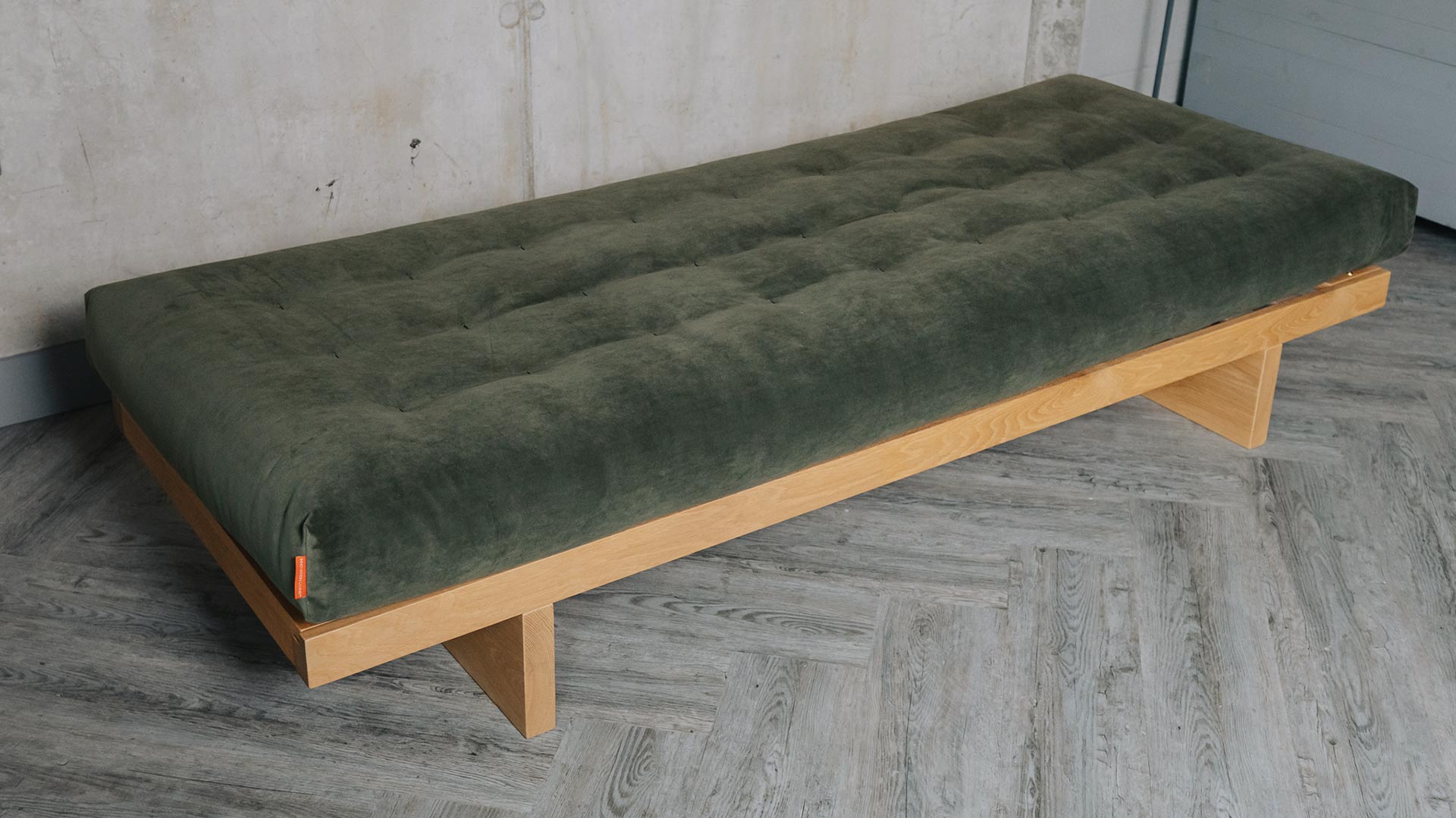 The Kyoto day-bed with sprung mattress combines a minimalist, Japanese-style base with a soft and supportive sprung, upholstered mattress. This incredibly comfy day-bed is a luxurious addition to your lounge or bedroom – working as additional seating, and also a useful extra single bed.