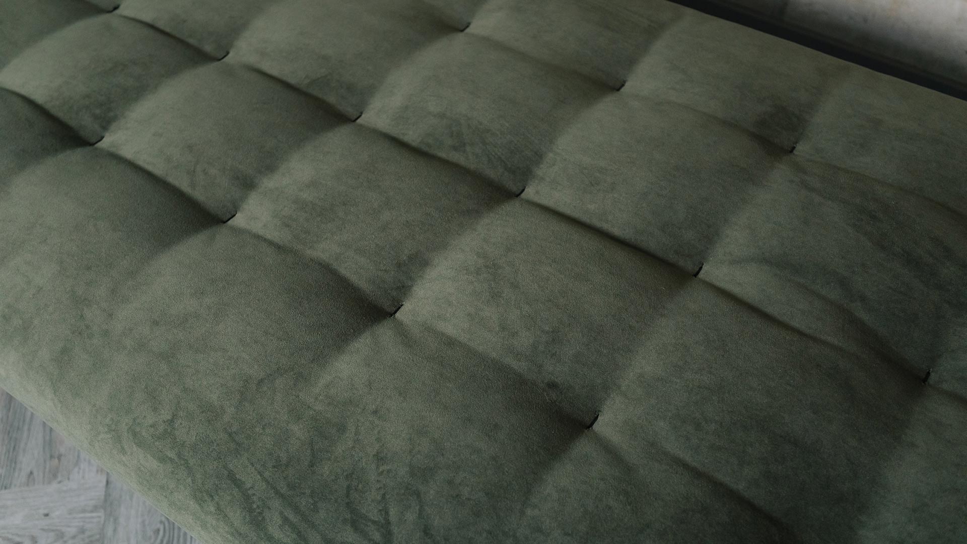 Available in the Oak timber with Army Green Velvet sprung mattress for speedy despatch.
