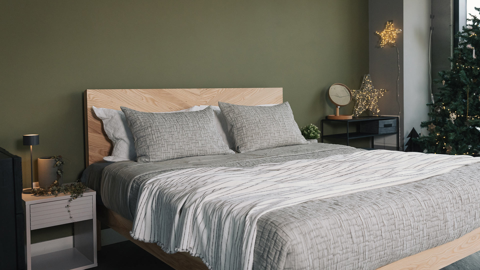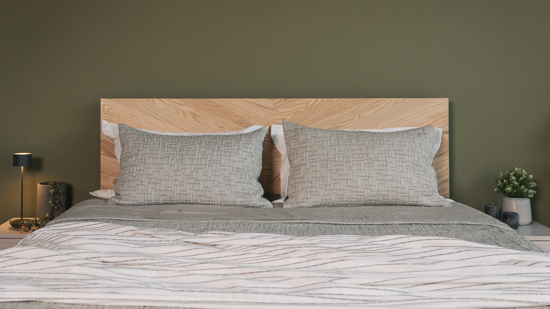 Based on our popular Tibet design, the Hathersage is available here in a superking size, and in striking solid ash. It is a contemporary, solid wood bed with a chunky frame and tall headboard. The generous headboard shows off the beauty of the natural hardwood timber with a stunning chevron design.