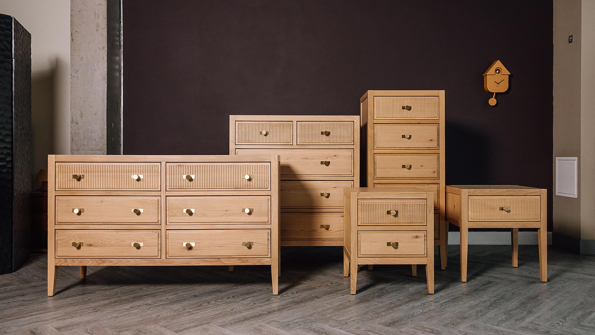 Gently inspired by the art deco design movement of the early 20th century, this collection is characterised by a unique, reeded drawer front. Finished with brass hardware, these pieces boast a classic, retro-inspired design that is grounded in modernity thanks to its solid materials.